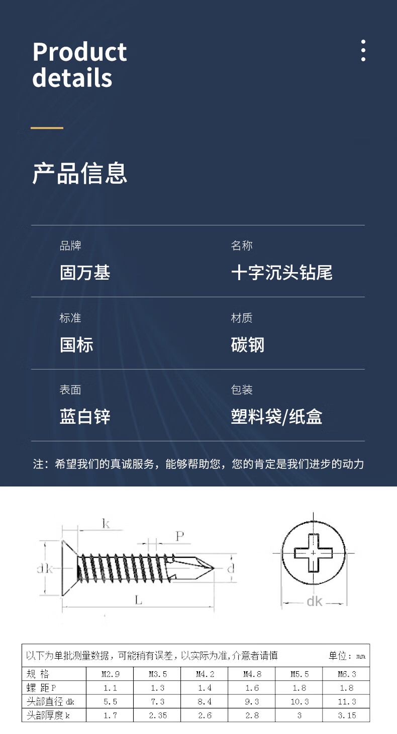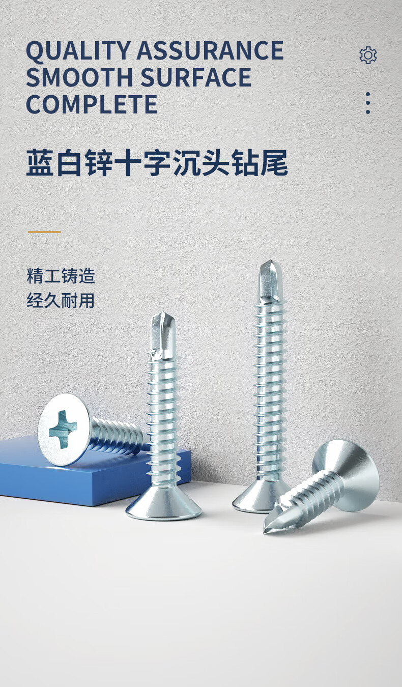 Guwanji cross flat head self-tapping self-drilling screws blue and white zinc countersunk head drill tail self-tapping screws dovetail self-tapping screws M4.2x25 1 catties package (about 270 pieces) blue and white zinc