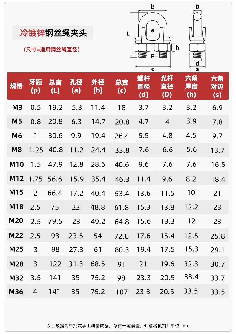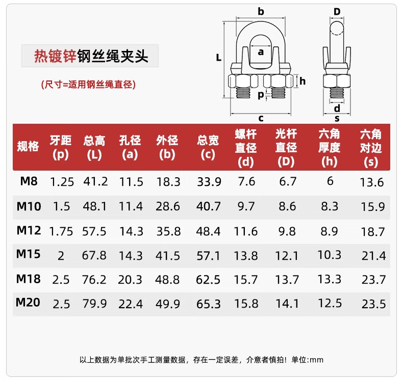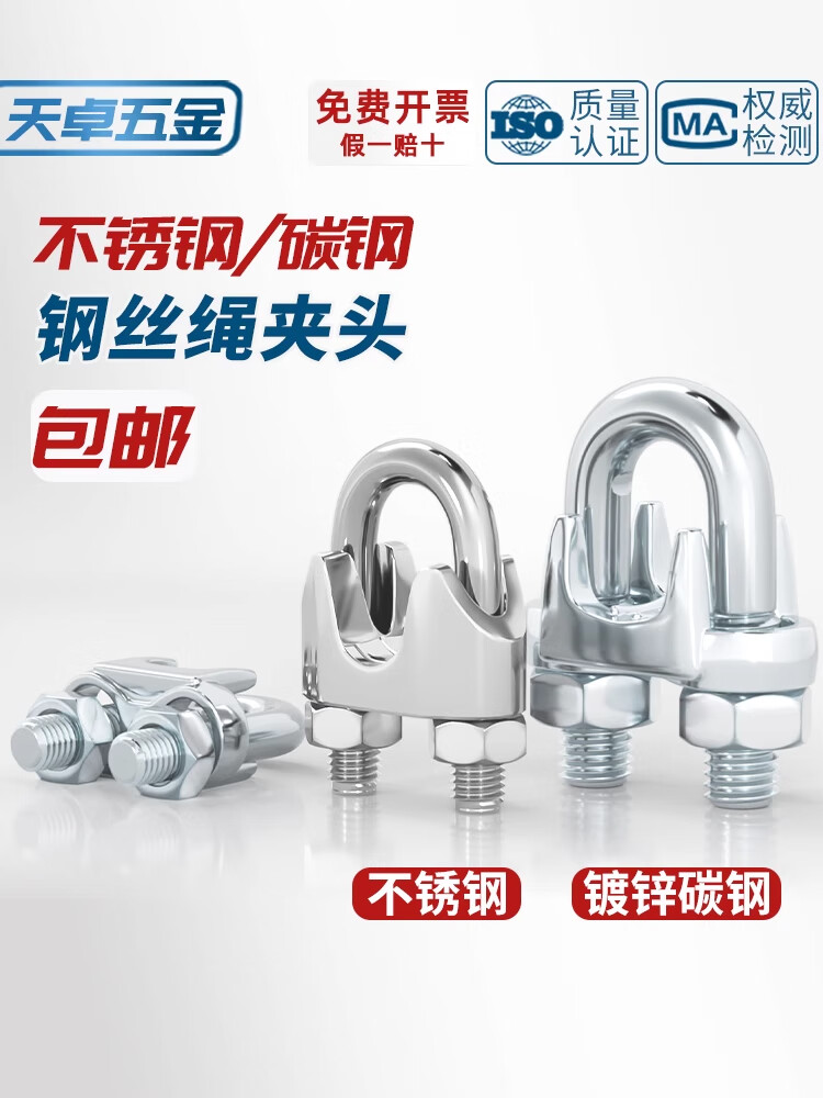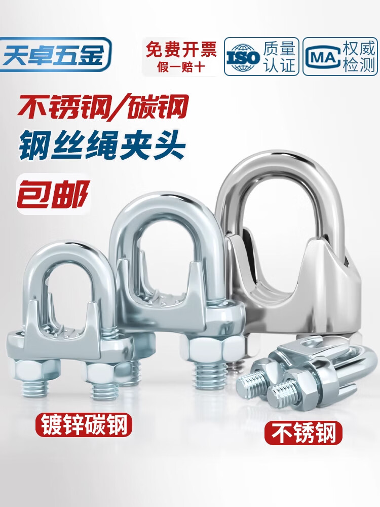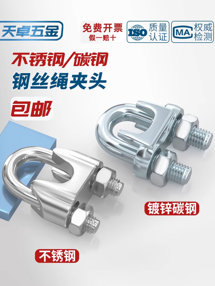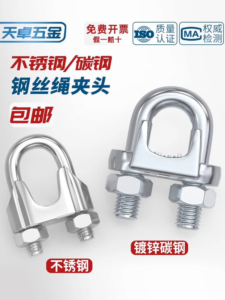 Tianzhuo Hardware national standard galvanized steel wire rope chuck buckle chuck U-shaped lock buckle U-shaped fixed joint M3/4/5/6/8/10mm cold-dip galvanized M10 suitable for 10mm steel wire rope - 2 pieces
