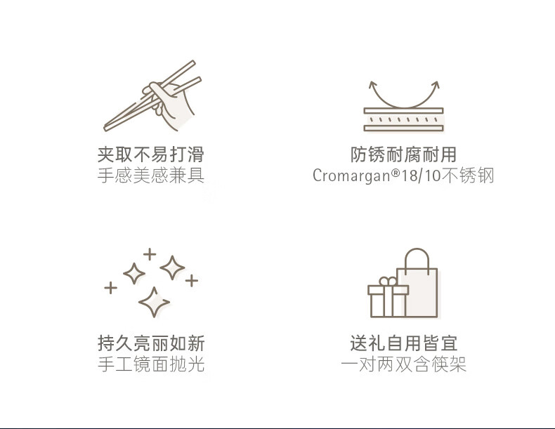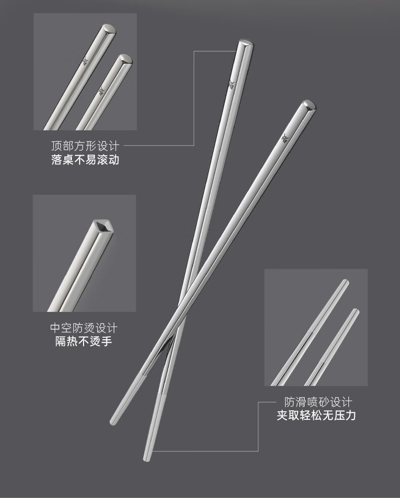 WMF Futengbao stainless steel chopsticks household edible grade antibacterial and mildew-proof chopsticks set of 2 pairs