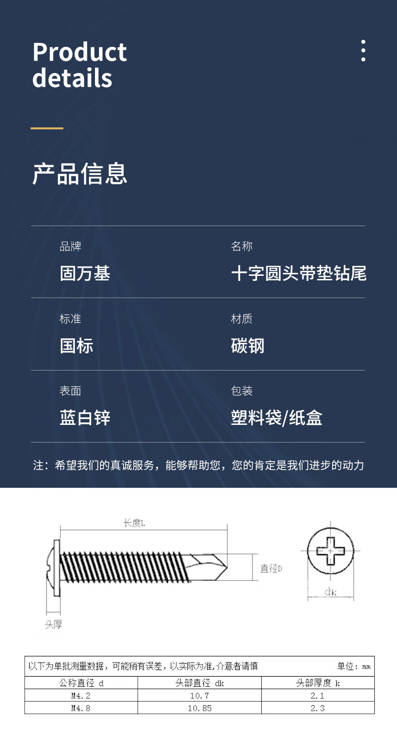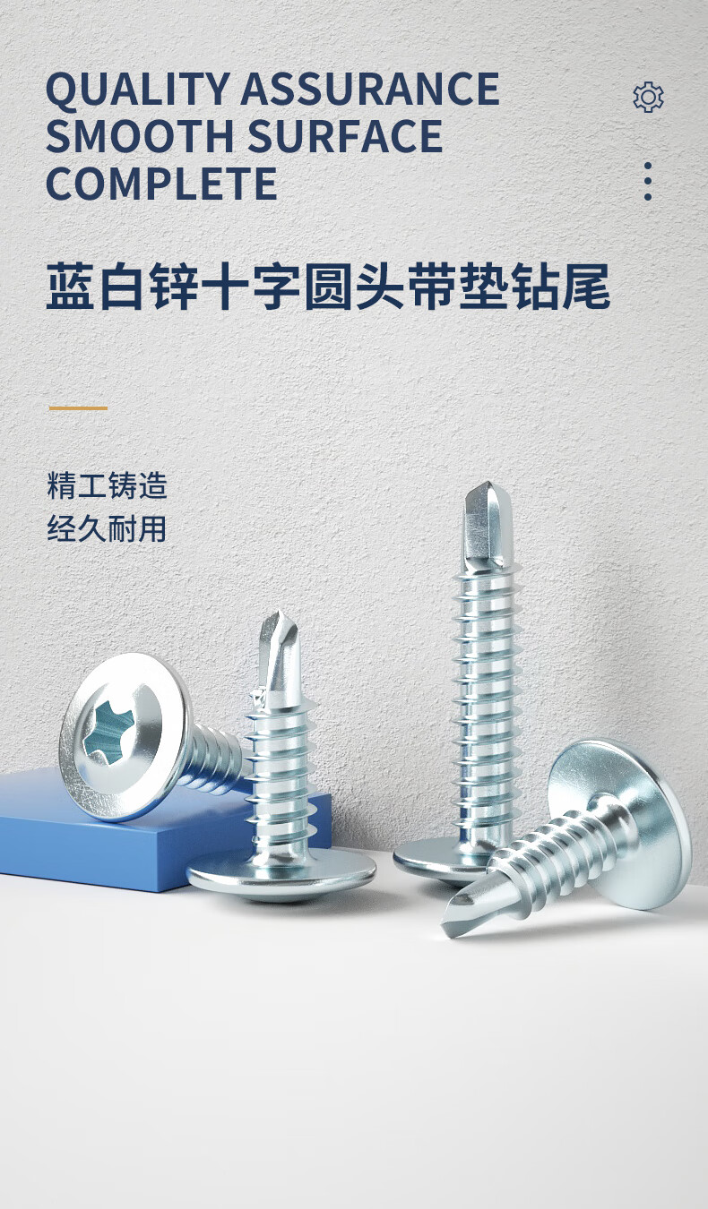 Guwanji Cross round head self-drilling self-tapping screws with pads blue and white zinc pan head with pads Washer drill tail dovetail screws M4.2x13 1 catties (about 325 pieces) blue and white zinc