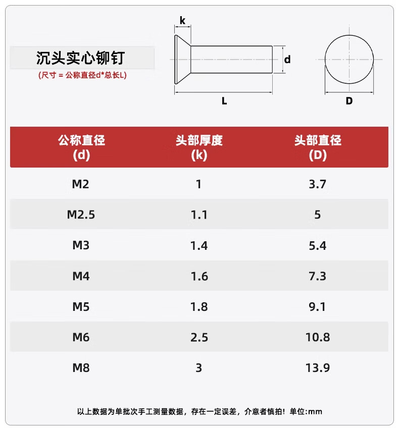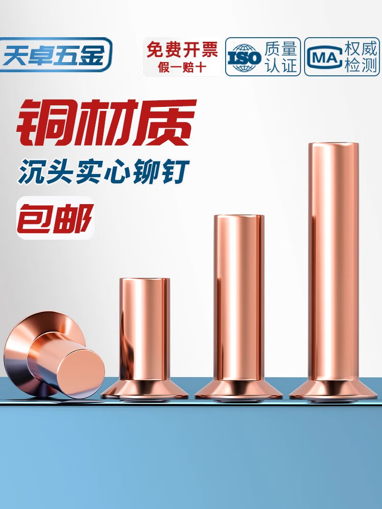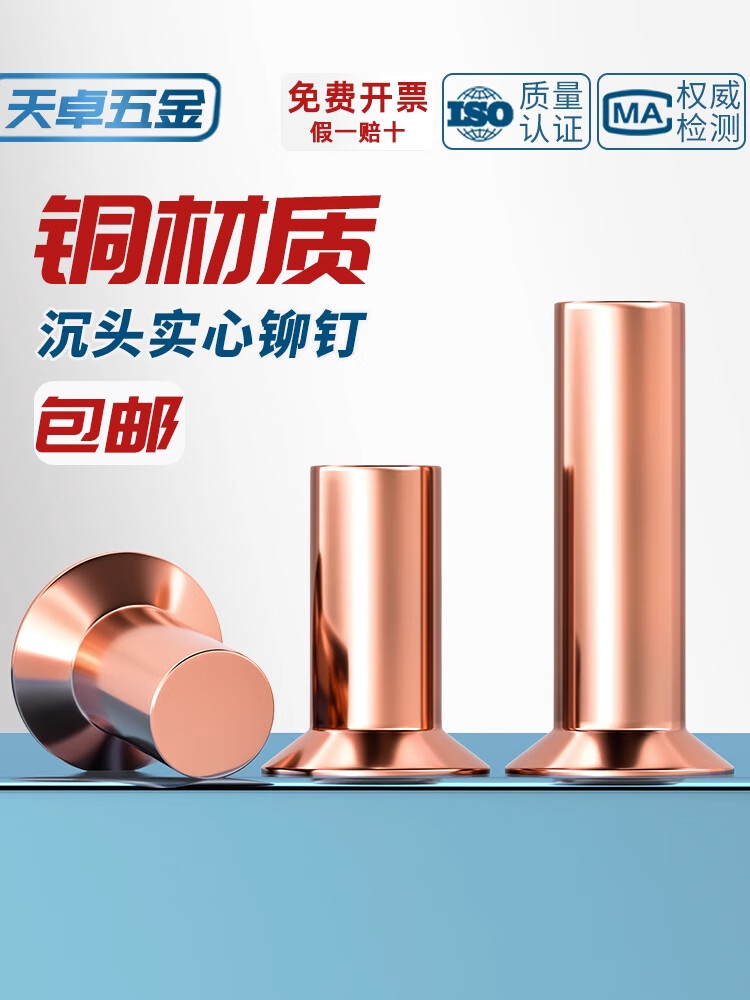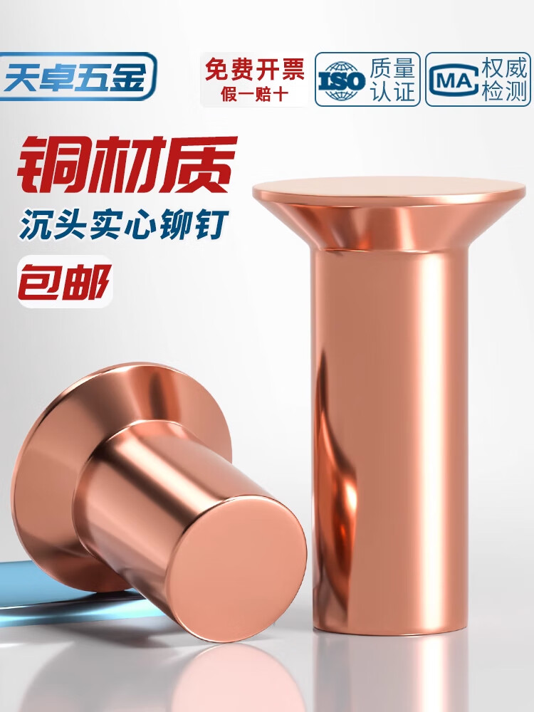 Tianzhuo Hardware GB869 copper percussion countersunk head rivets solid flat head flat cone head copper rivets M2M2.5M3M4M5M6M8 M8*40-3 pieces