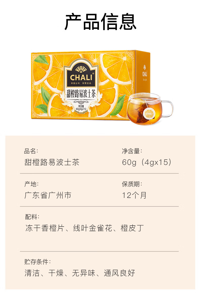 ChaLi Sweet Orange Rooibos Tea South African Treasure Fruit Tea ChaLi’s Fairy Tea Bag Tea Sweet Orange Rooibos Tea Single Bag*7
