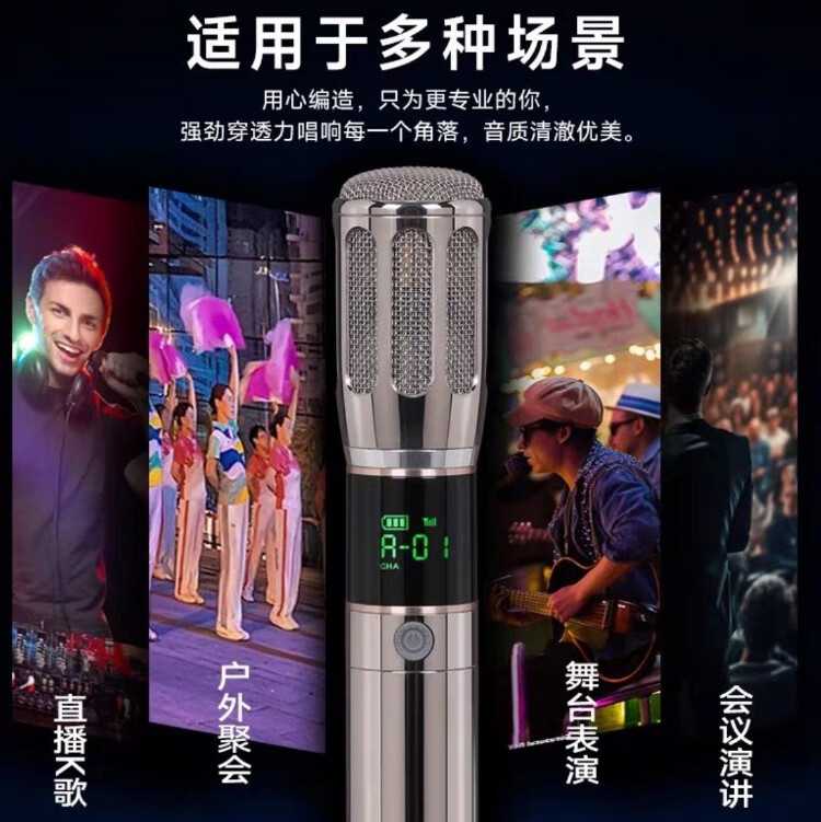 COV Metal Torch Microphone Wireless One to Two Microphones Rechargeable Universal Microphone for Home Singing and Outdoor Single Microphone Can be Recharged