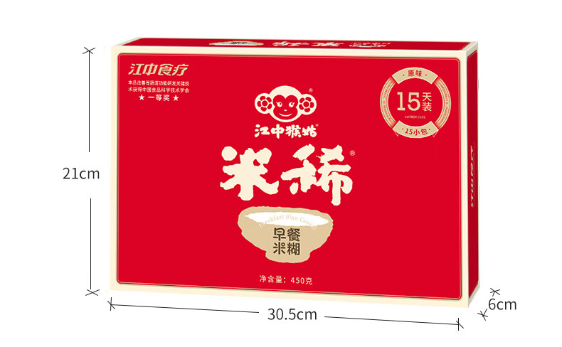 Jiangzhong Hougu Rice Glutinous Rice Powder 15 Days Pack*2 Box Monkey Mushroom Rice Powder Original Rice Powder 15 Days Rice Powder x2 Box+30 Sticks of Honey+Cup Bag 900g