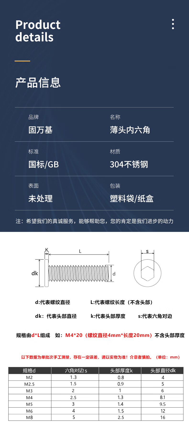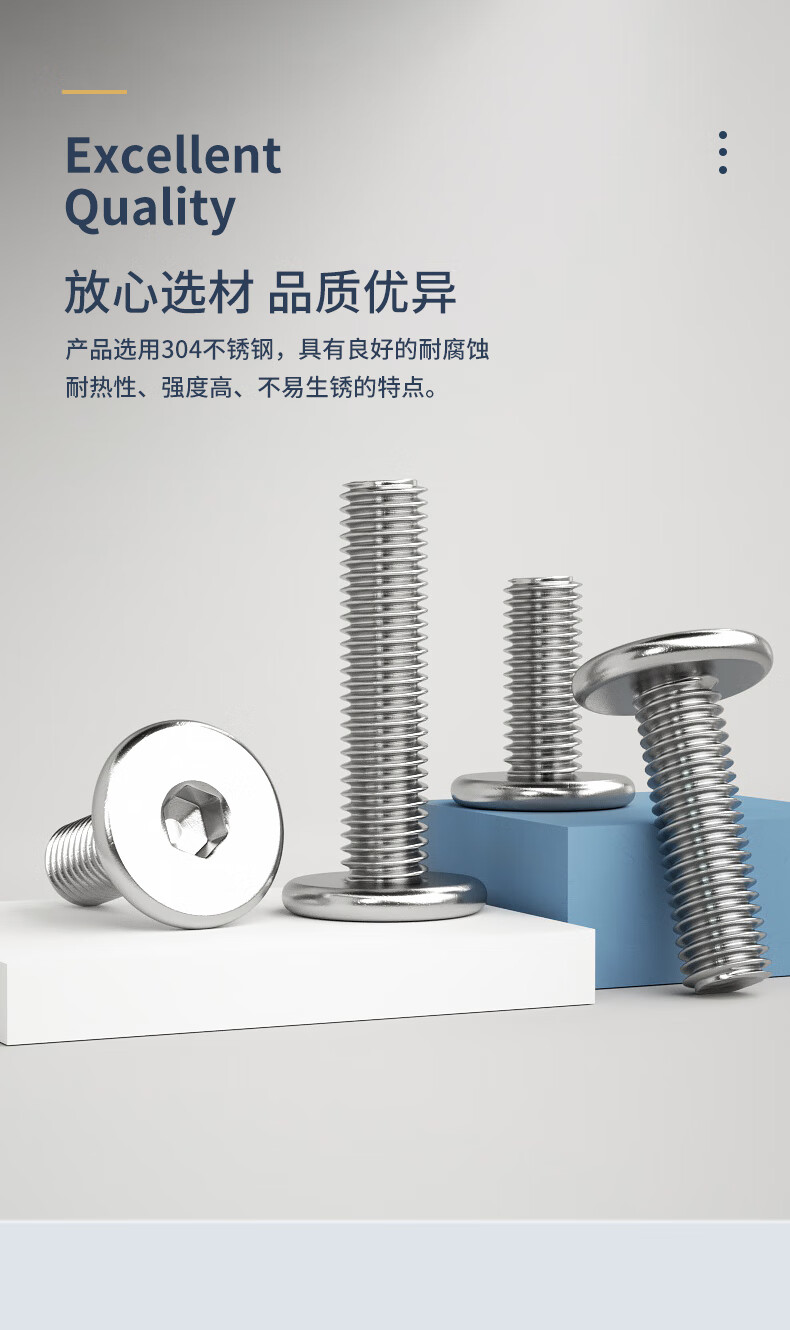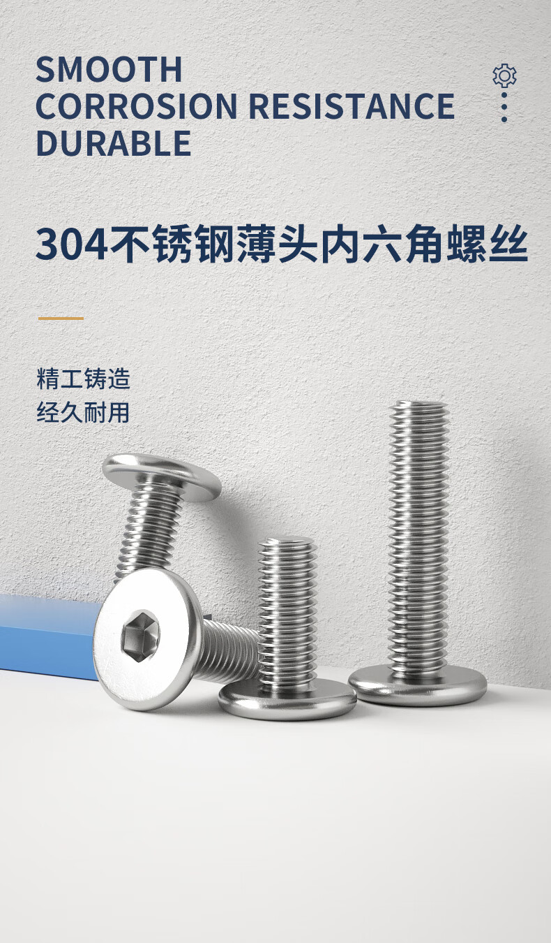 Guwanji 304 stainless steel thin flat head hexagon socket screws thin head CM countersunk head bolts flat head machine screws and screws M6x30 10 pieces