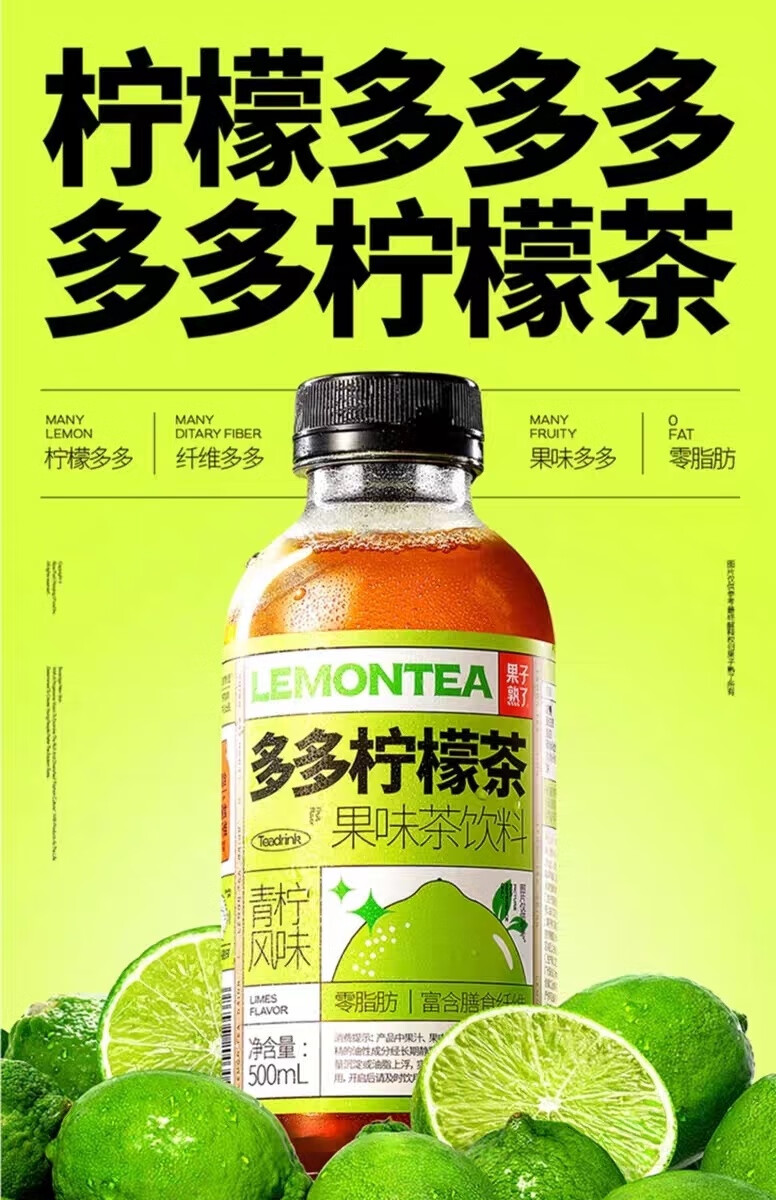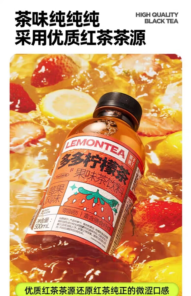 Hongyun Fruit Ripe Duoduo Lemon Tea Drink Duck Shit Flavor Grape Lime Dietary Fiber Internet Popular Fruity Drink Pineapple Flavor 500ml*12 Bottles