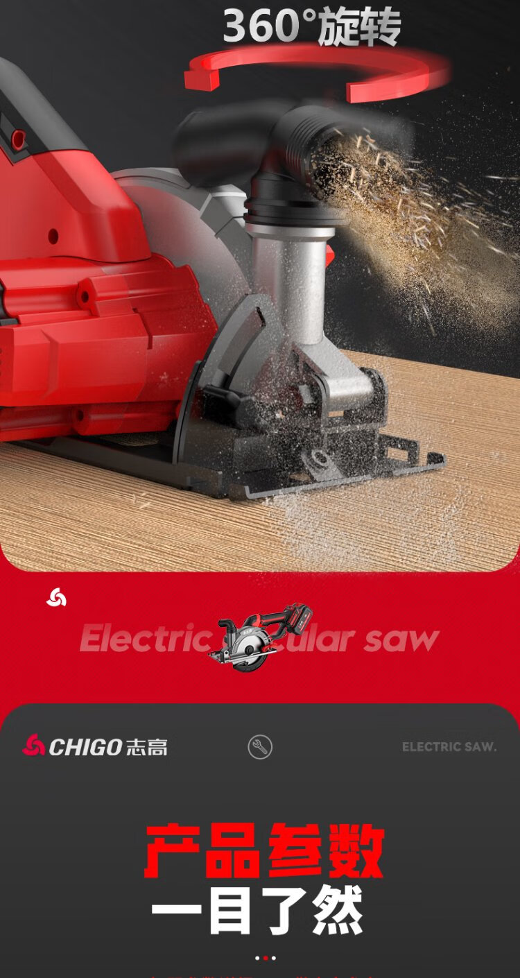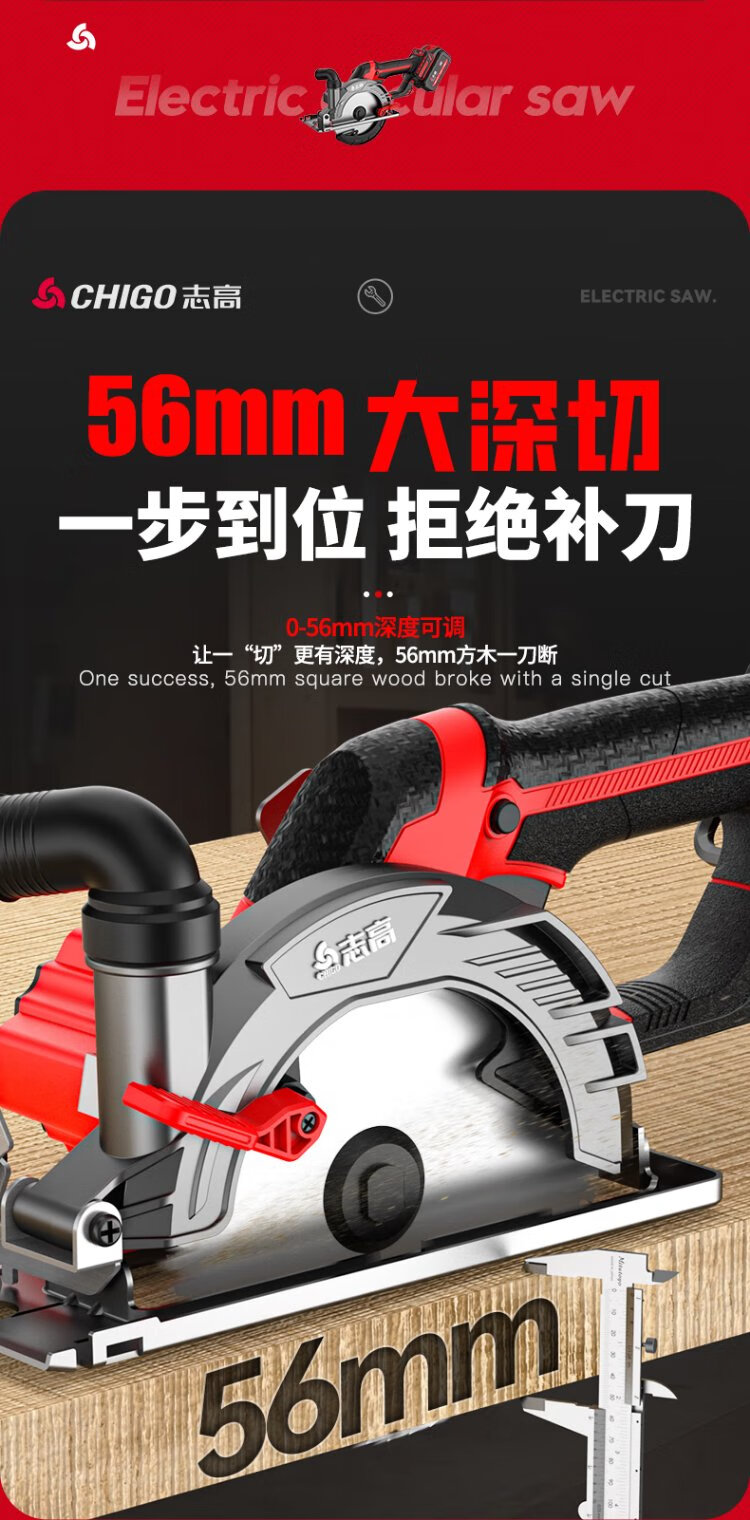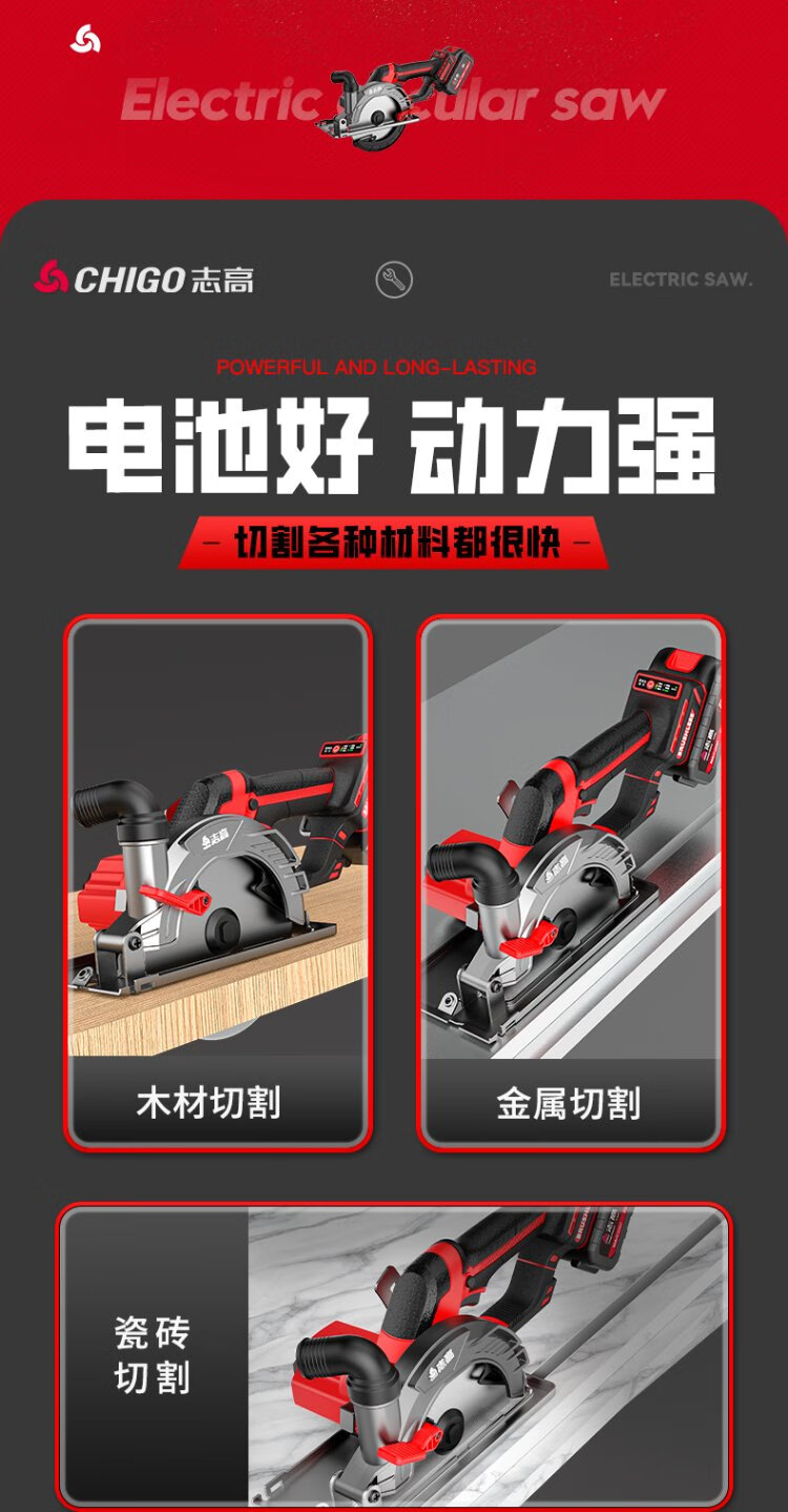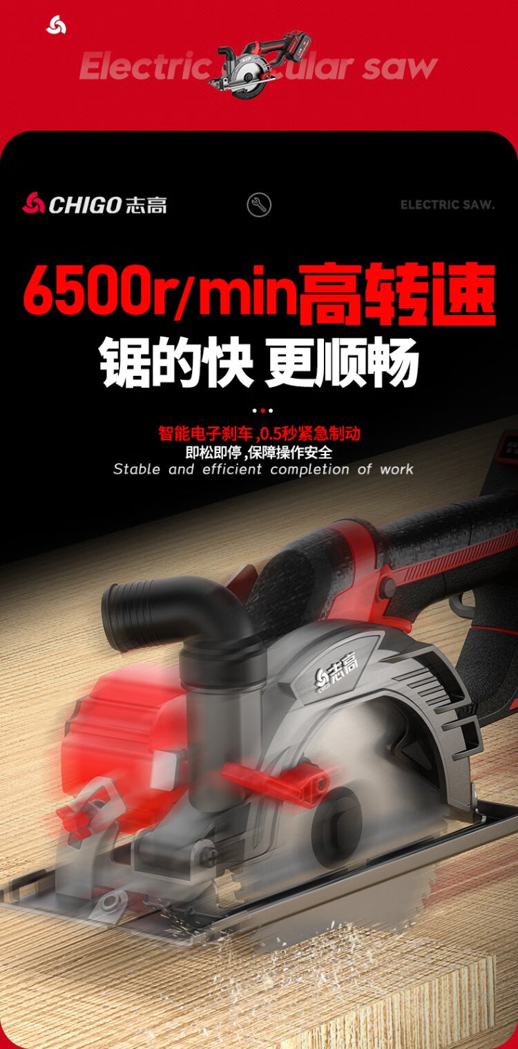 Chigo brushless electric circular saw hand-pushed lithium battery rechargeable woodworking portable electric saw marble machine cutting machine kitchen knife saw 6-inch brushless kitchen knife saw 6.0 one electric + saw blade