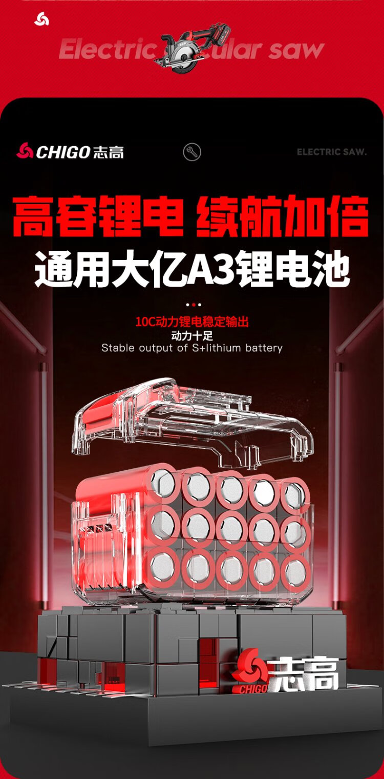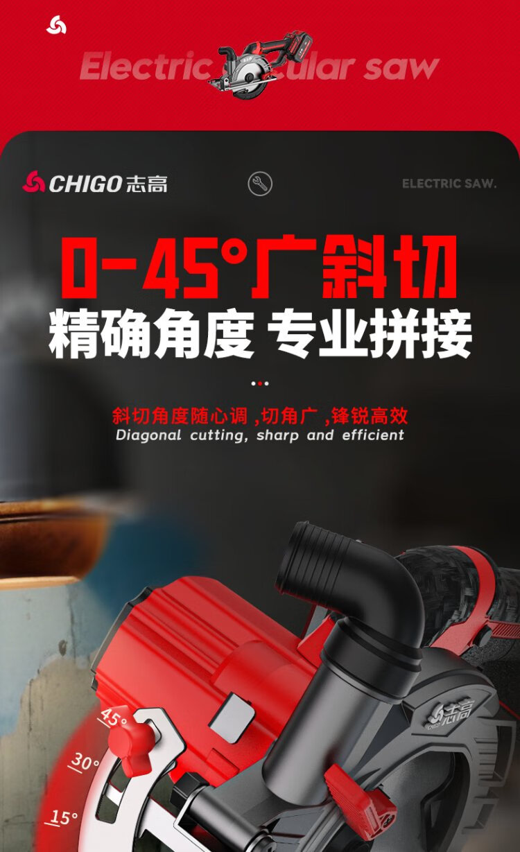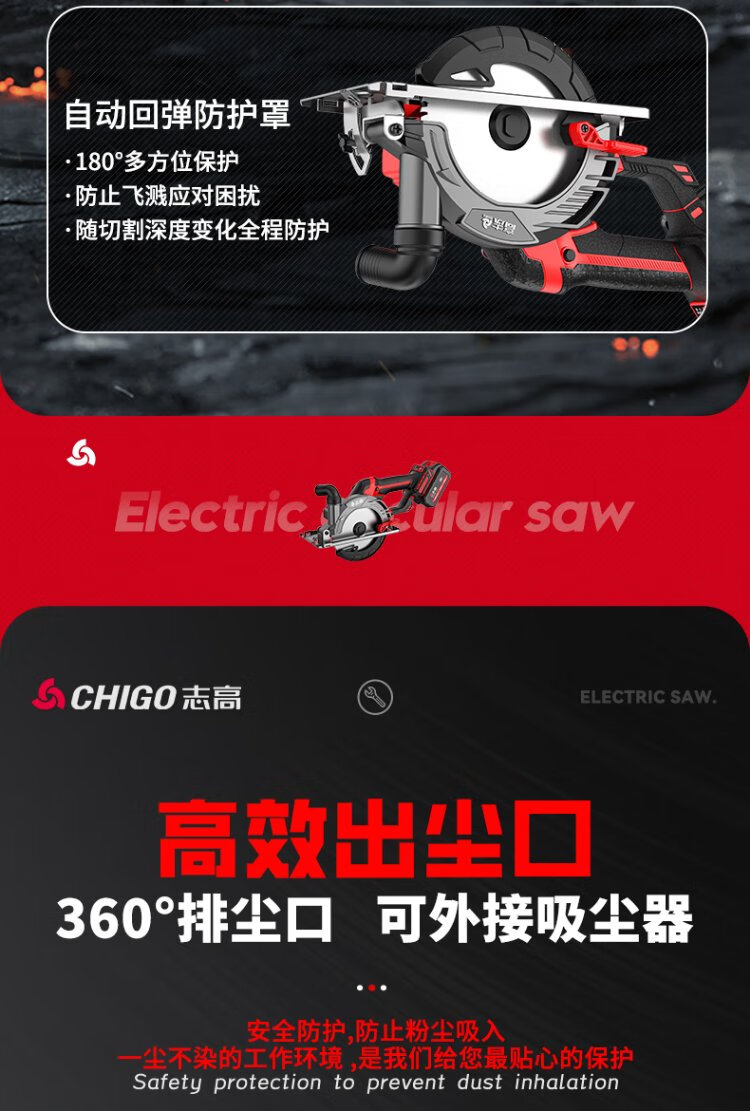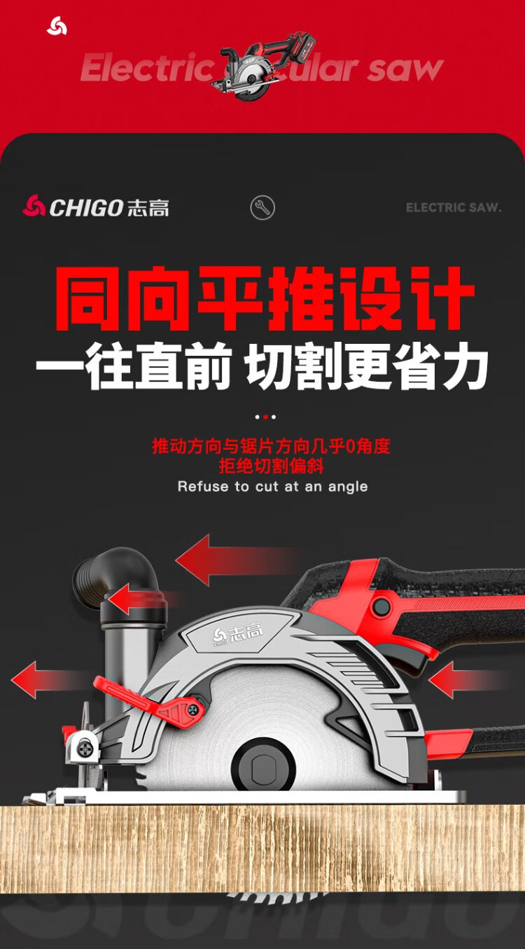 Chigo brushless electric circular saw hand-pushed lithium battery rechargeable woodworking portable electric saw marble machine cutting machine kitchen knife saw 6-inch brushless kitchen knife saw 6.0 one electric + saw blade