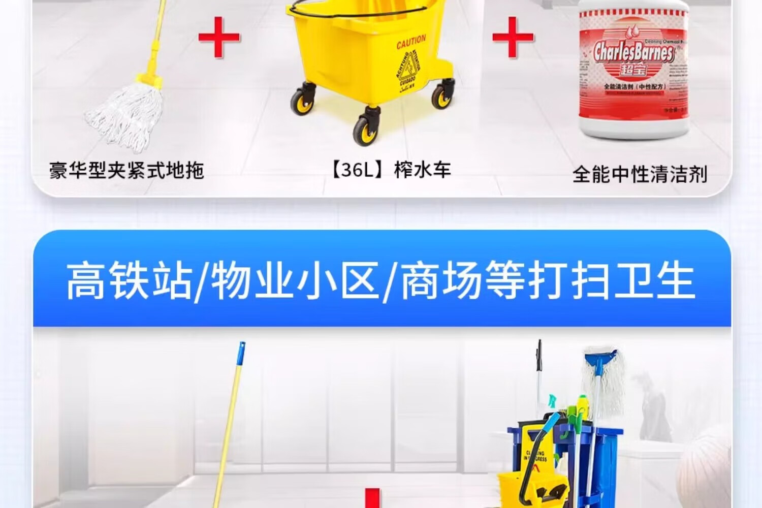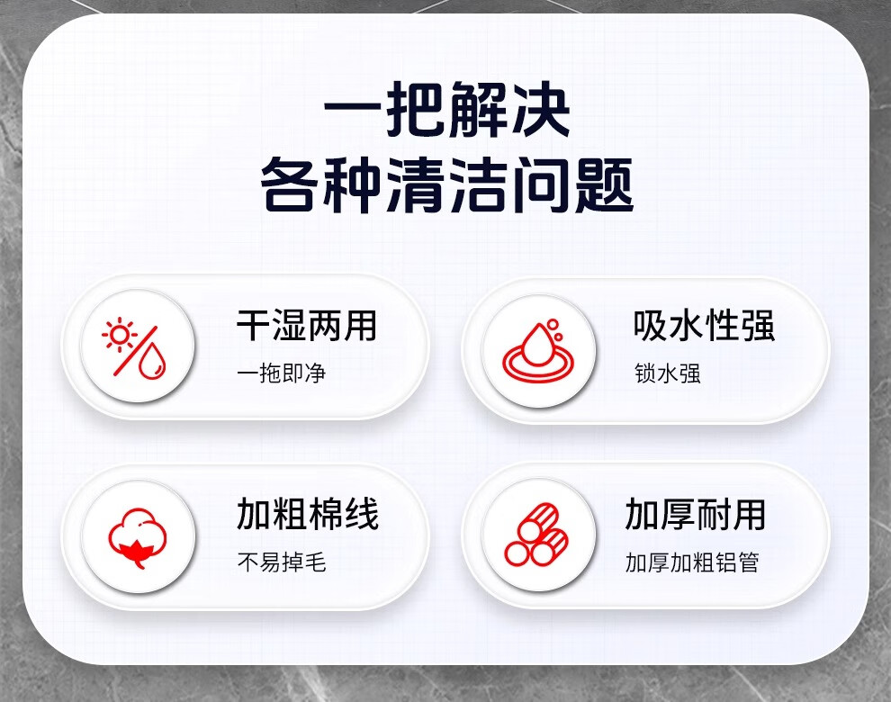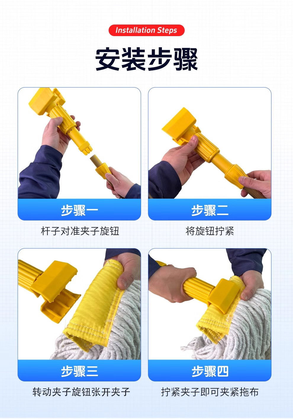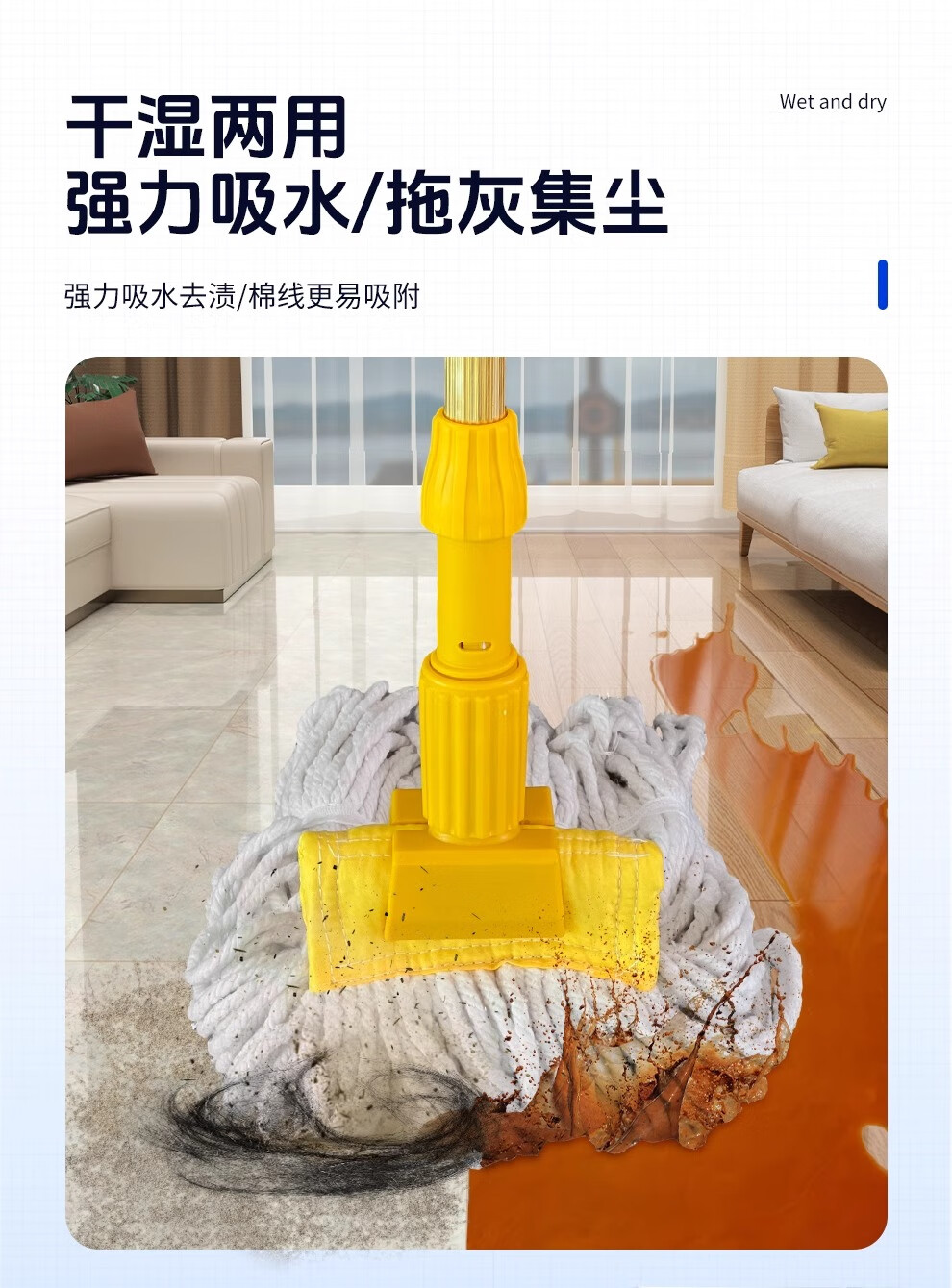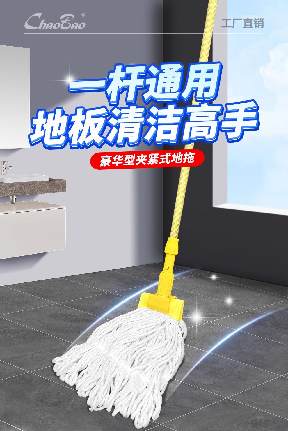 Baiyun Chaobao cleaning luxury clip-on floor mop waxed cotton thread mop mop hotel absorbent floor mop long wax mop aluminum alloy pole property commercial cleaning mop floor mop detachable luxury clamp-on floor mop set