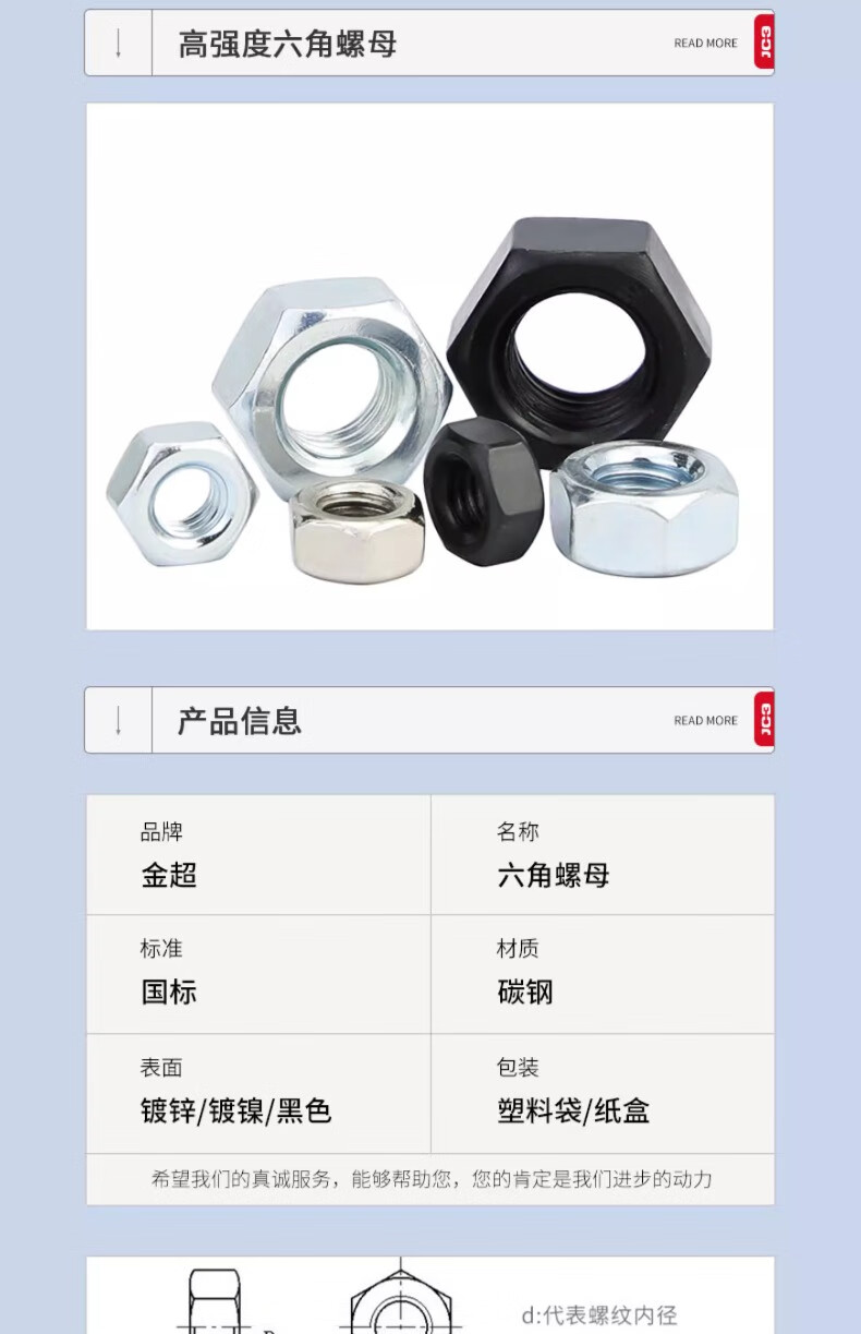 Jinchao grade 8.8 grade 12.9 high strength hexagonal nut screw cap grade 4.8 M3M4M5M6M8M10M12M16 M20 (5 pieces) grade 12 black