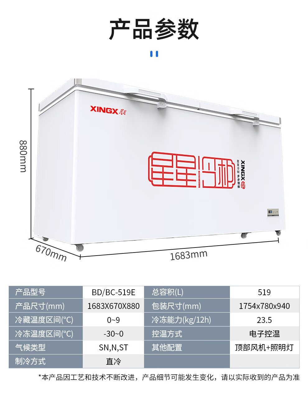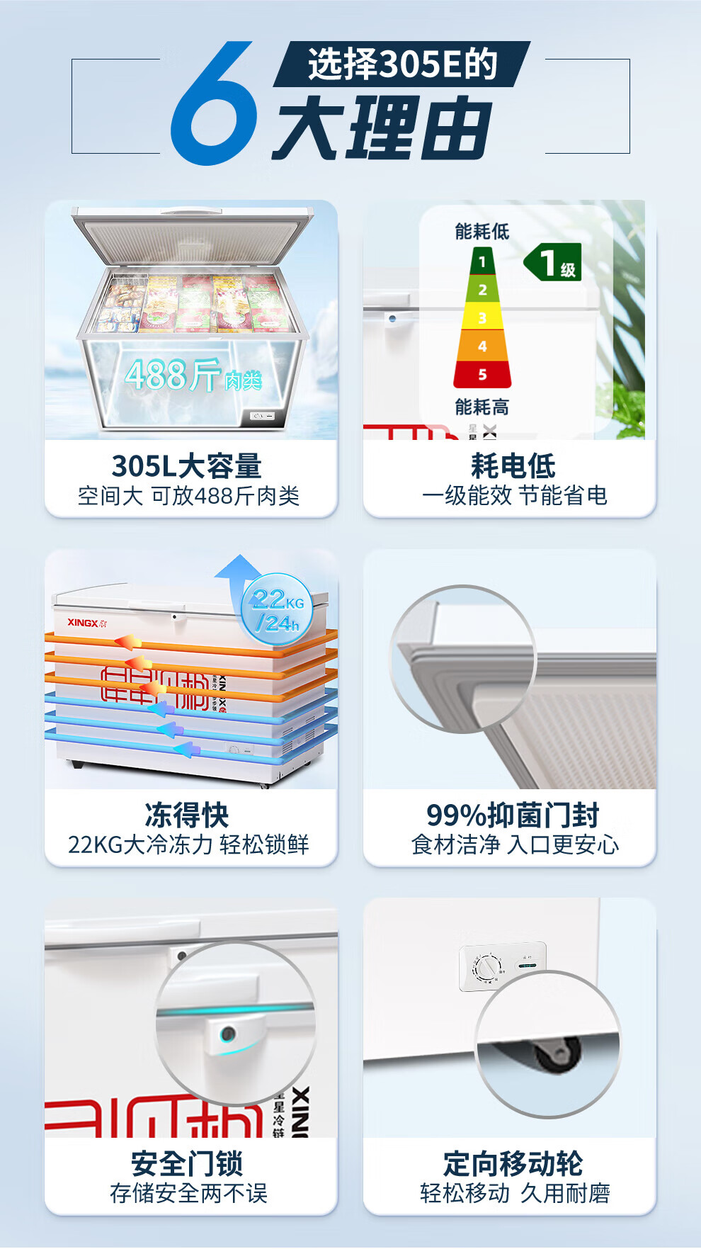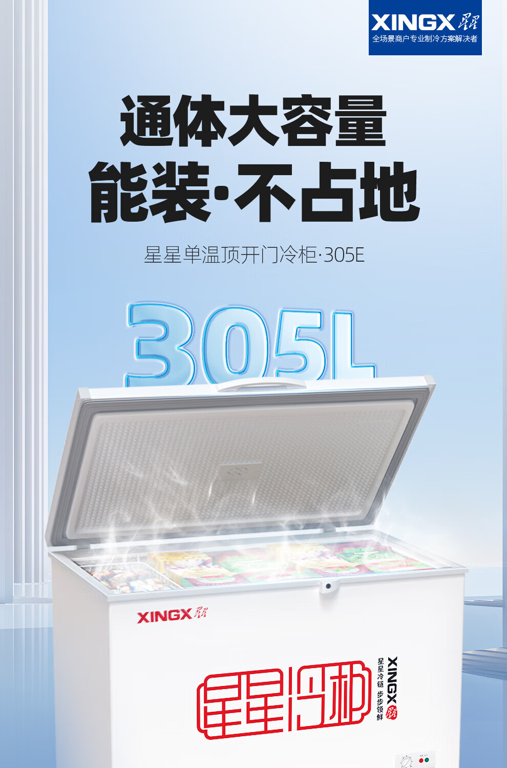 XINGX Horizontal Large Capacity Freezer Commercial Commercial Kitchen Refrigerator Freezer Conversion Freezer Deep Cooling Quick Freeze High Efficiency Refrigeration Ice Cream Freezer Commercial Top Door Single Temperature Refrigerator Micro Frost Direct Cooling Single Temperature Model 305 Liter White BD/BC-305E