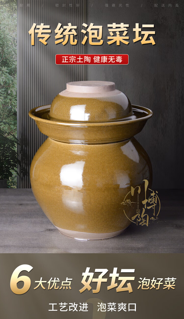 Yuanxie pickle jar household earthenware Sichuan ceramic thickened small commercial pickle pickle large capacity sealed pickle jar 10 catties water capacity with inner lid