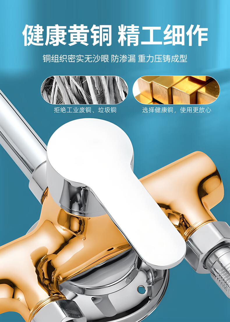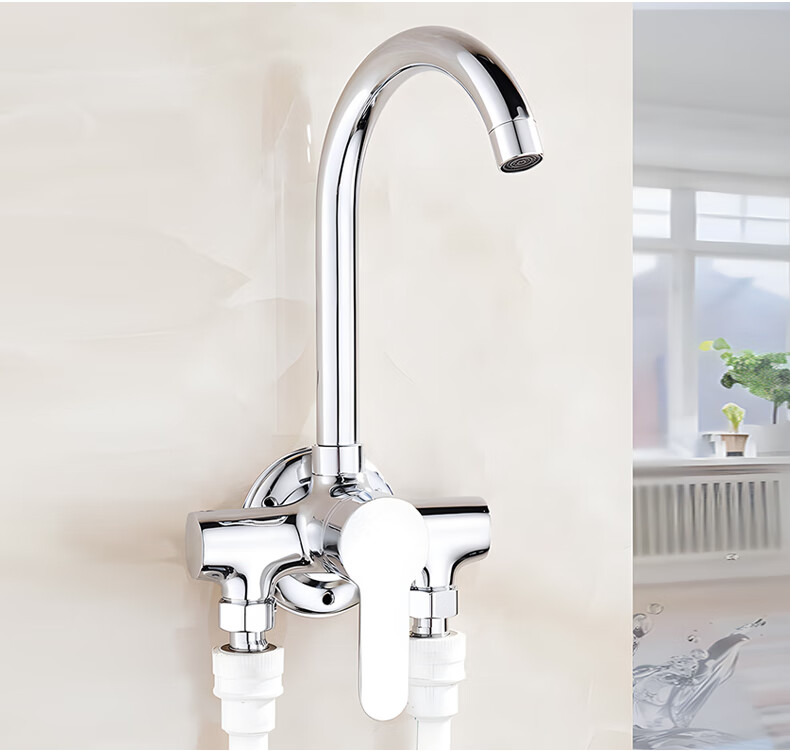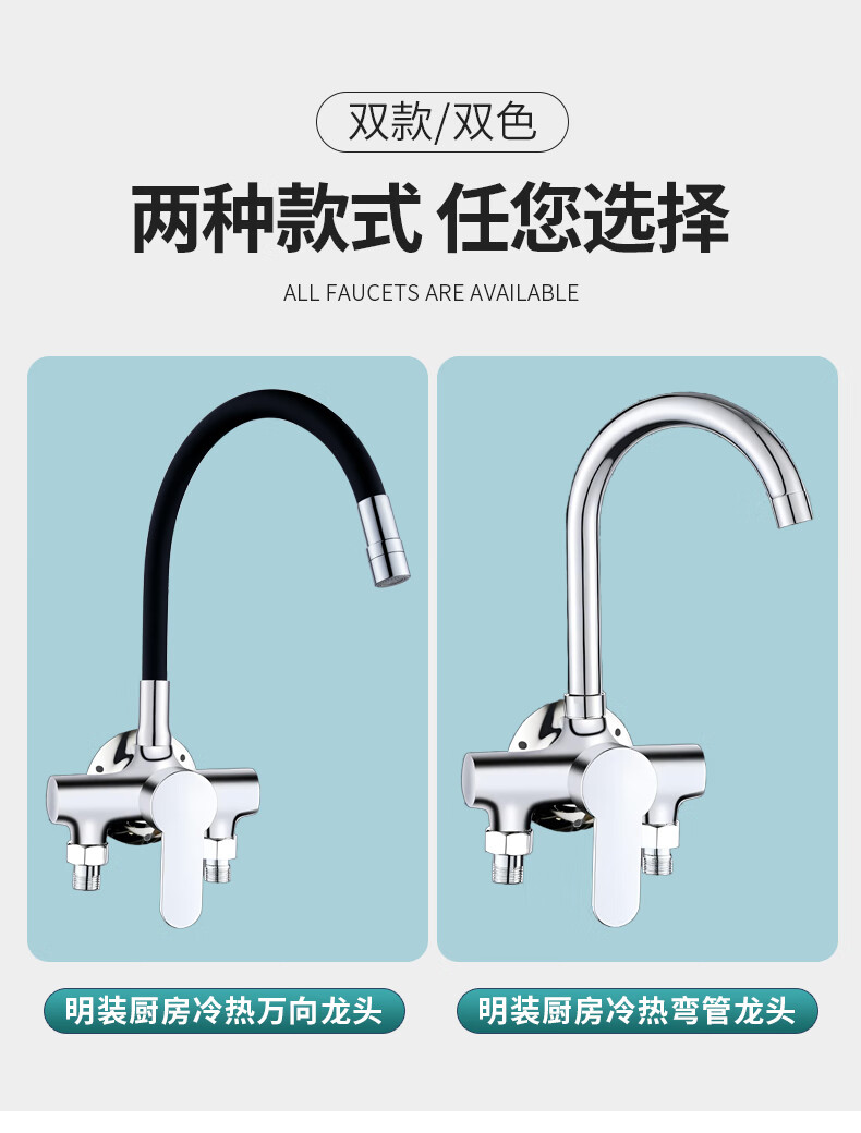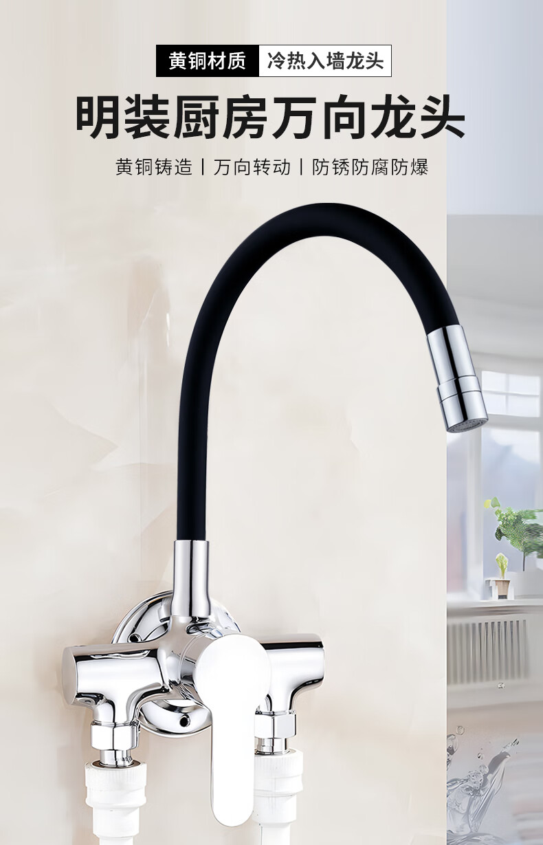 Youlai bathroom brass exposed kitchen faucet hot and cold open pipe universal horizontal wall-mounted wall-mounted double-hole hot and cold water mixing valve brass exposed faucet universal 60cm hose