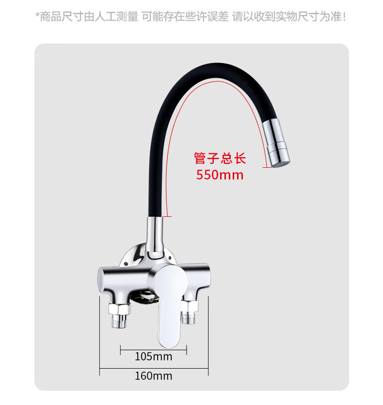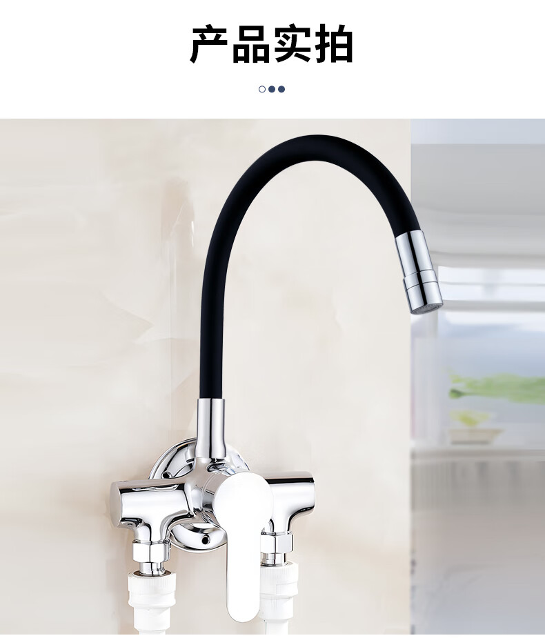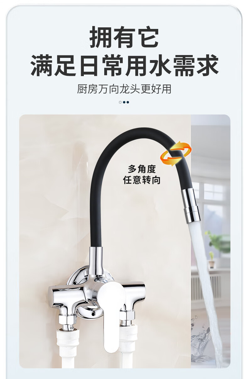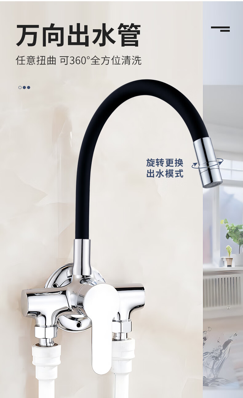 Youlai bathroom brass exposed kitchen faucet hot and cold open pipe universal horizontal wall-mounted wall-mounted double-hole hot and cold water mixing valve brass exposed faucet universal 60cm hose