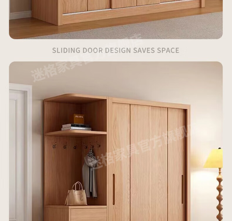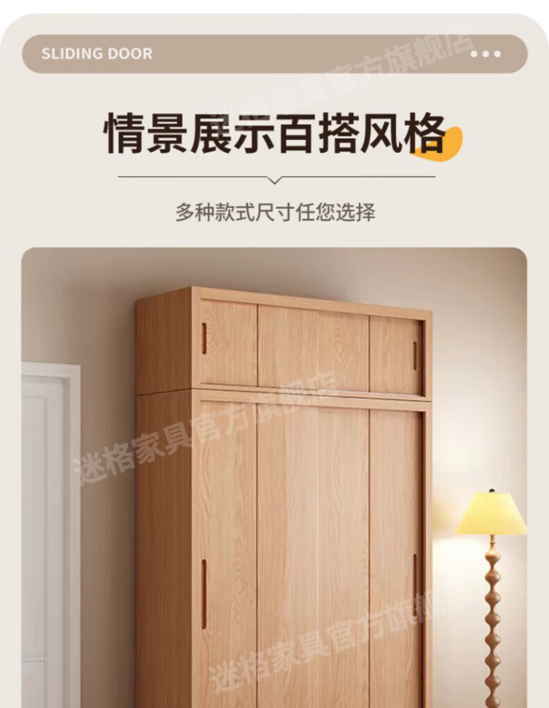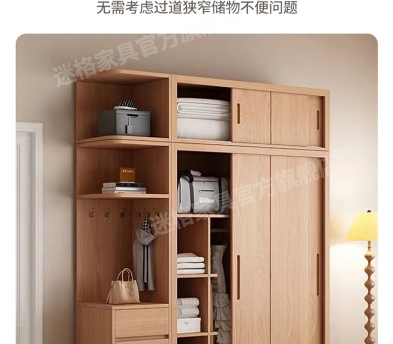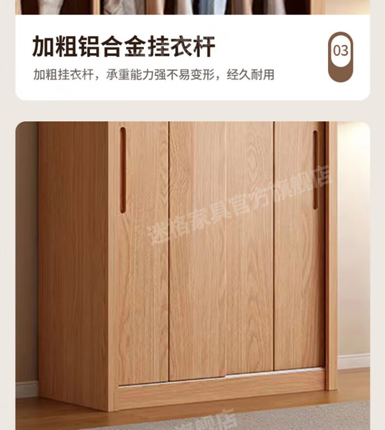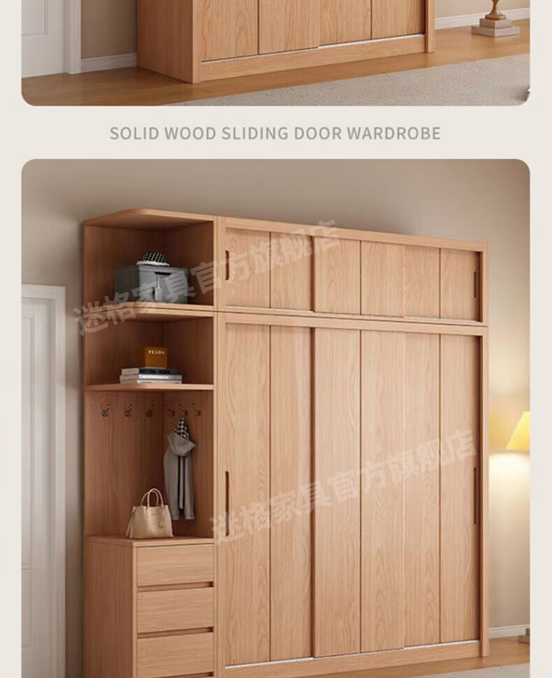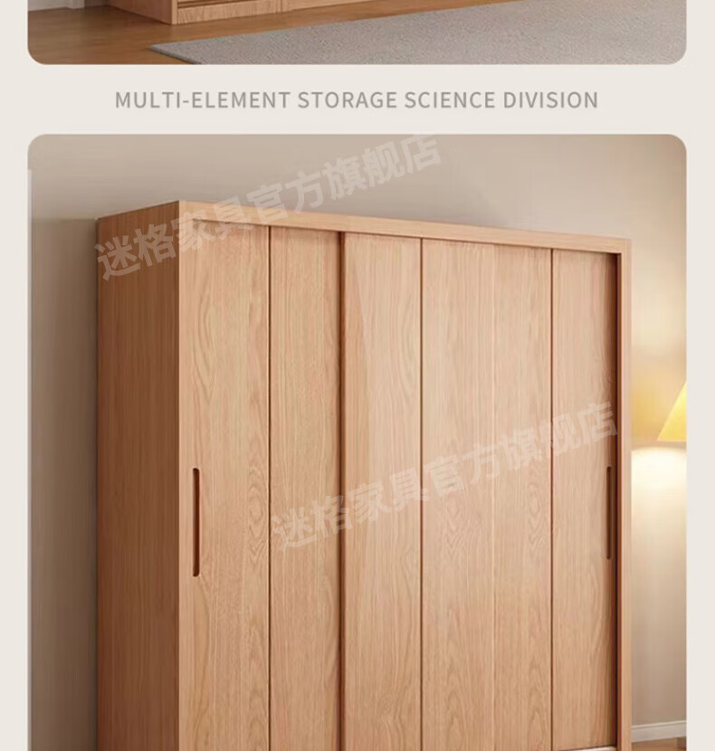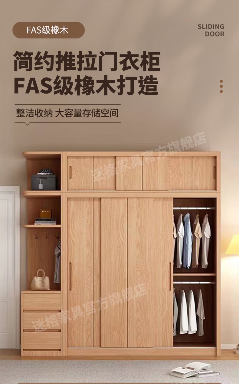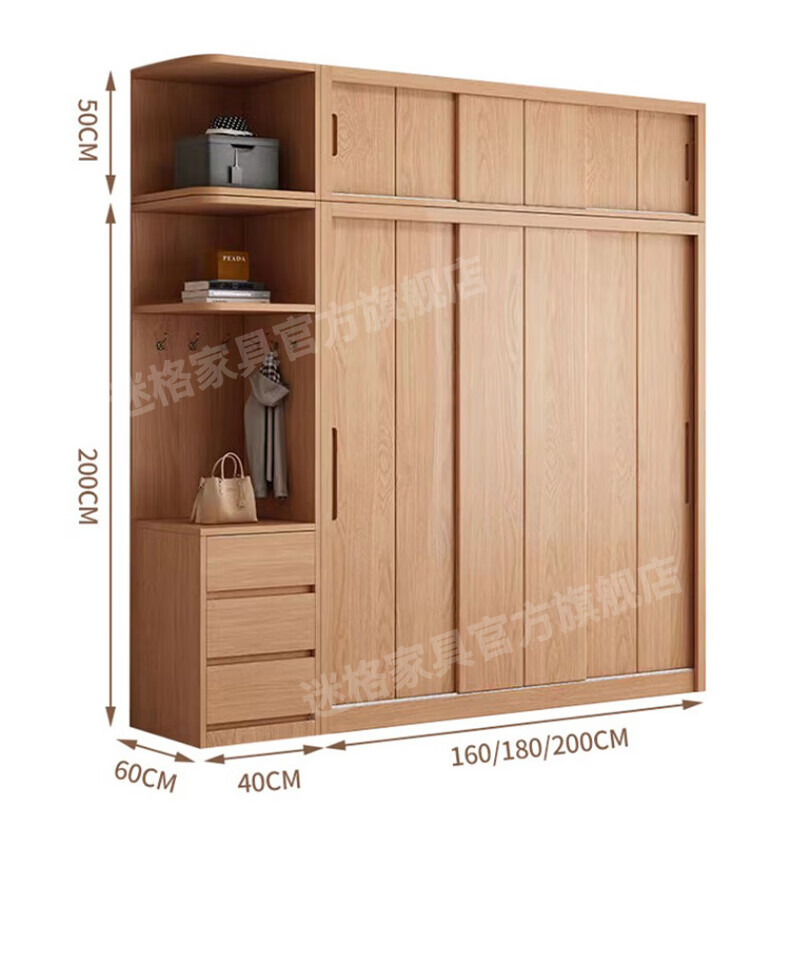 Mige Oak Wardrobe Bedroom Sliding Door Solid Wood Storage Cabinet Oak Three Doors 1.8 Meter Sliding Door