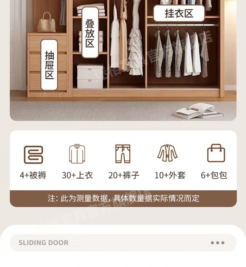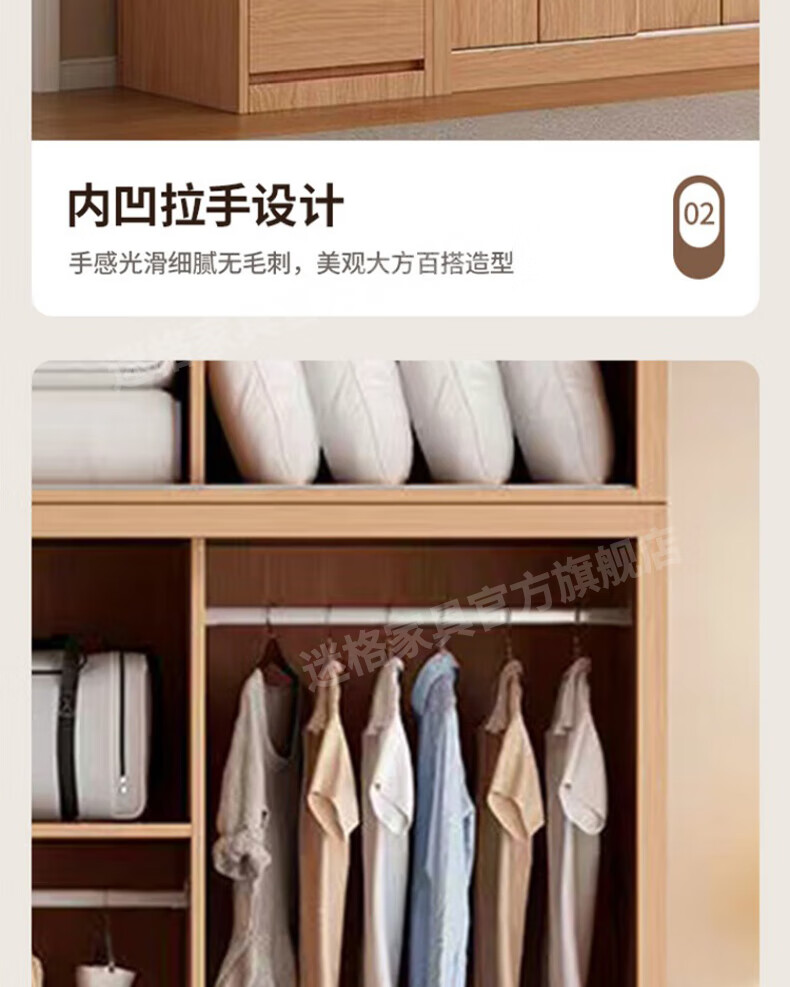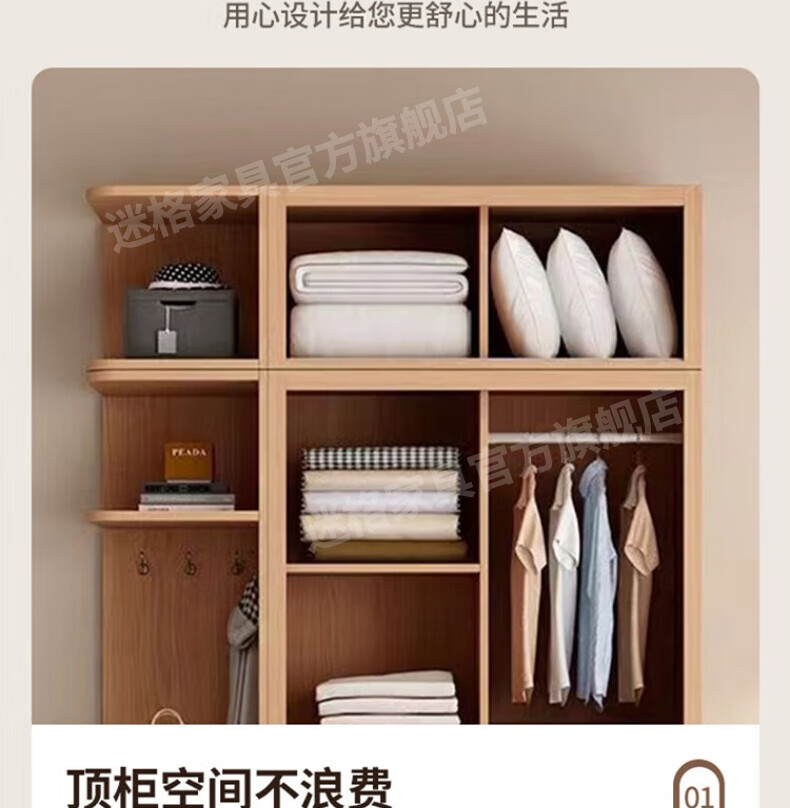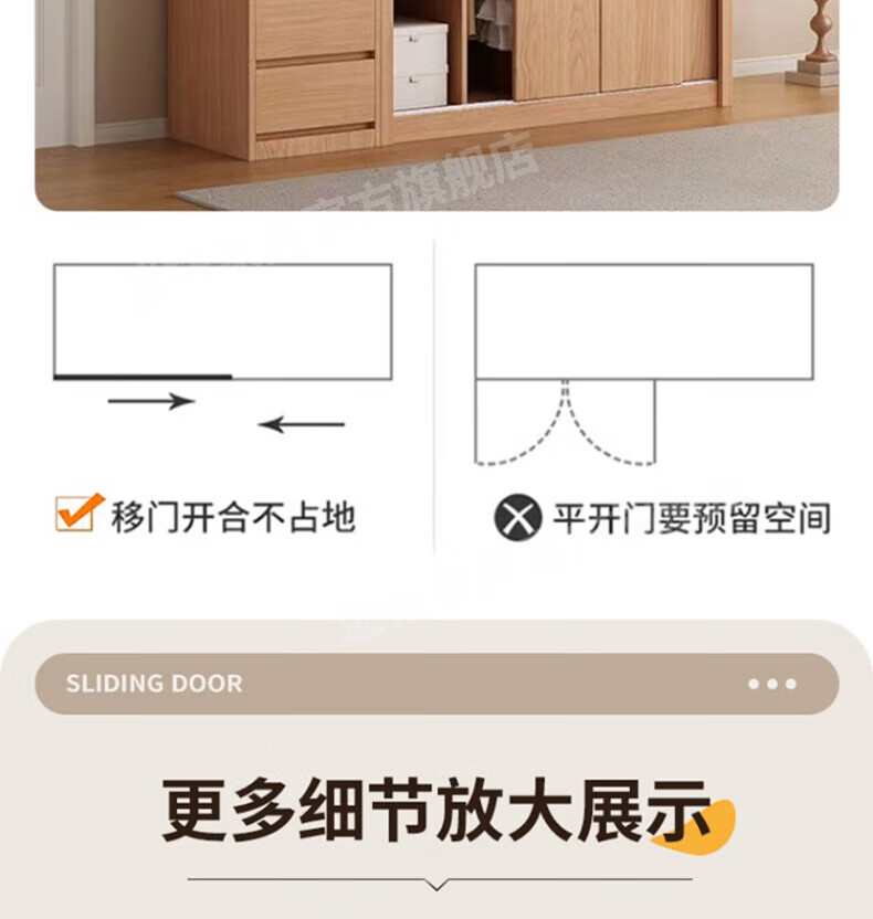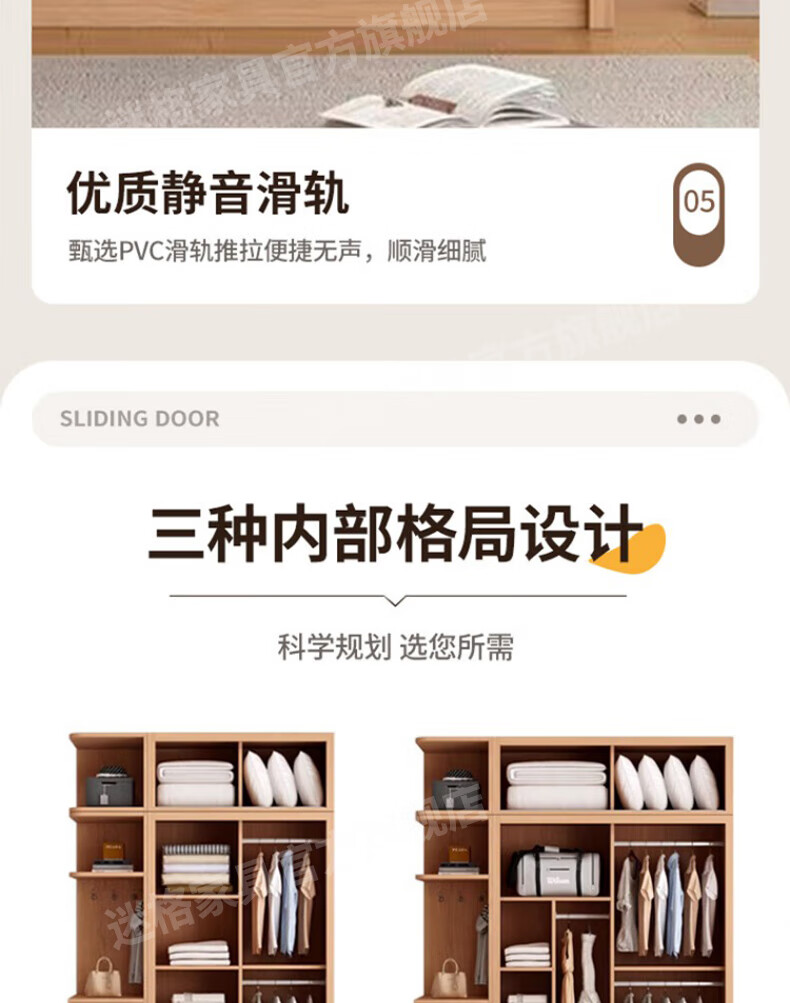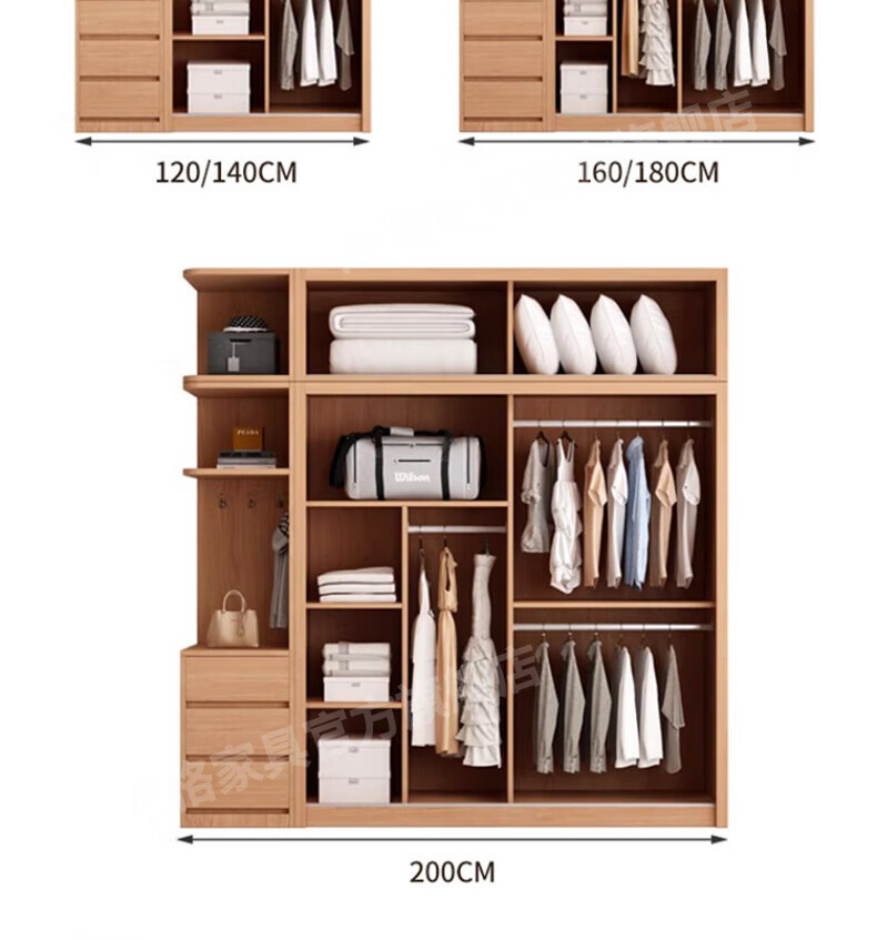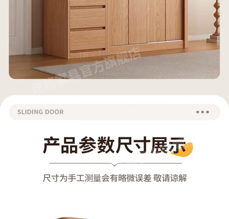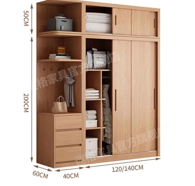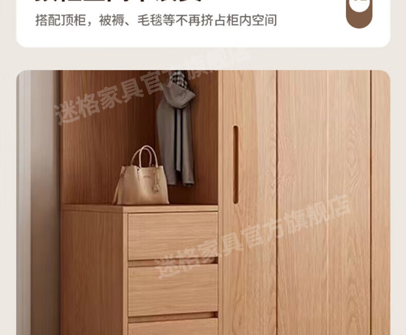 Mige Oak Wardrobe Bedroom Sliding Door Solid Wood Storage Cabinet Oak Three Doors 1.8 Meter Sliding Door