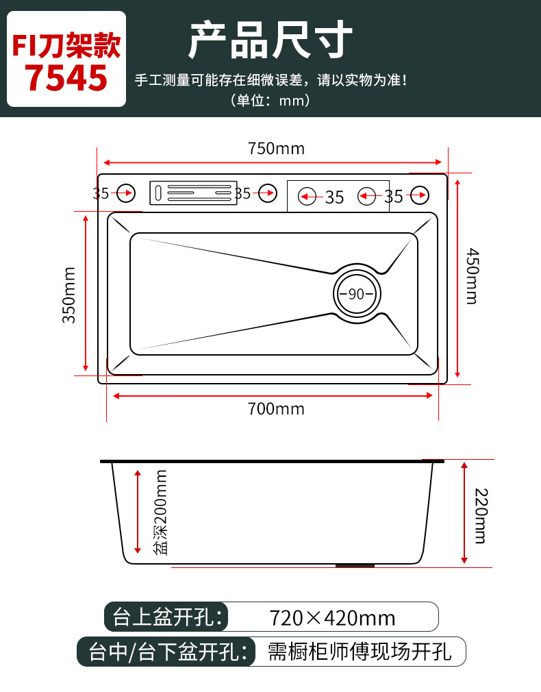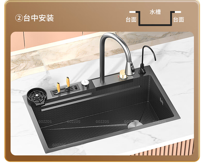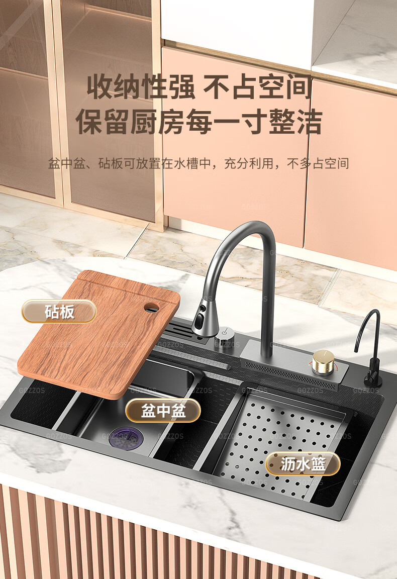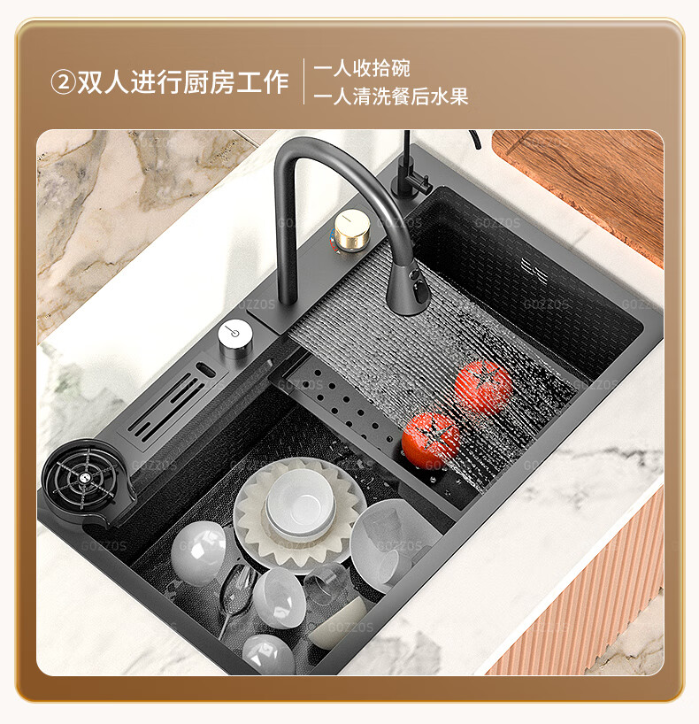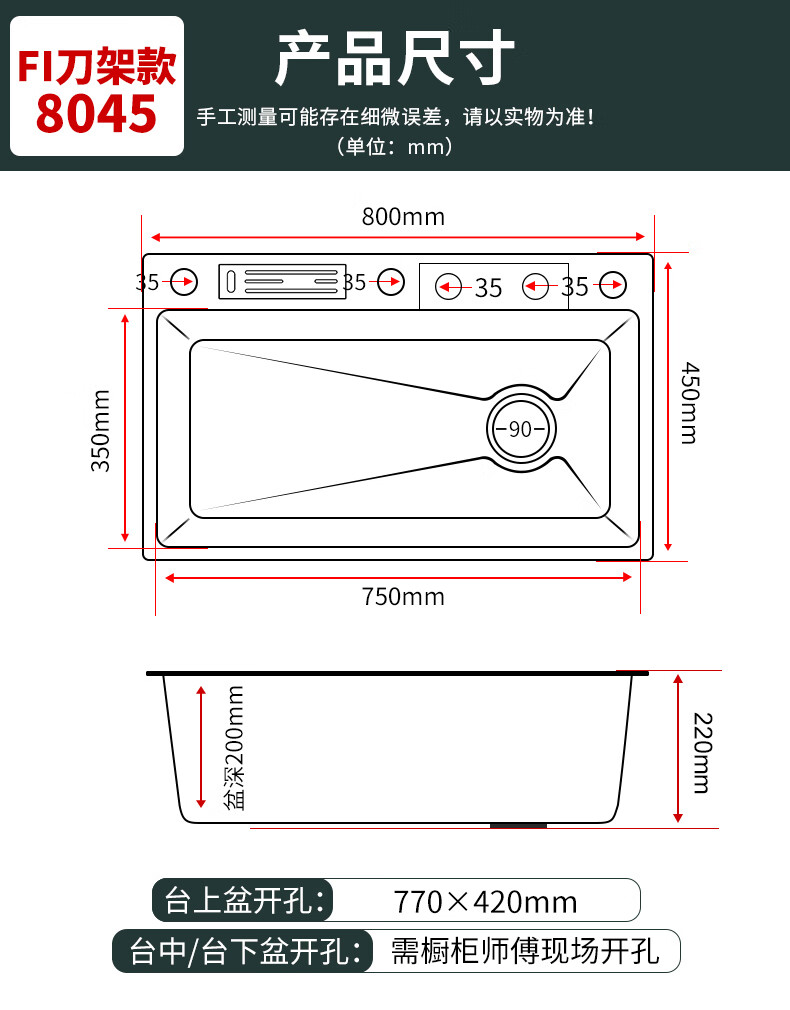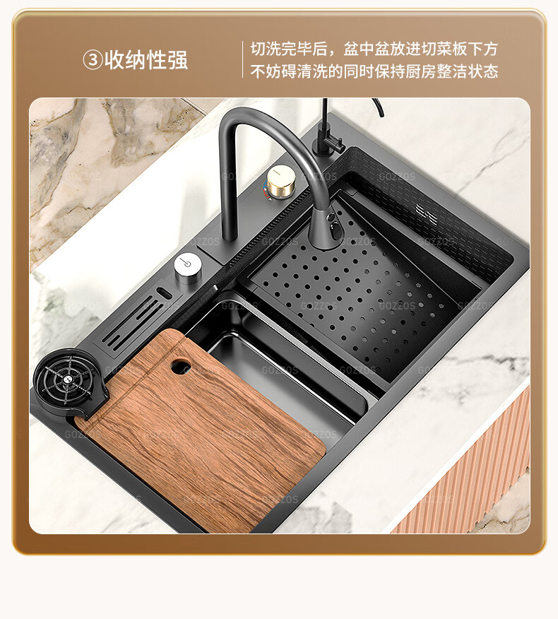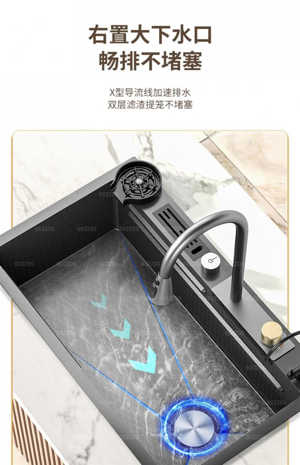 Rifeng Feiyu Waterfall Sink Embossed Honeycomb Kitchen 304 Stainless Steel Large Single Sink Household Wash Waterfall 80x45B Luxury Knife Rest Package