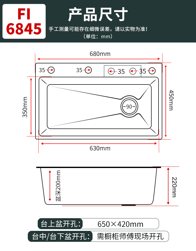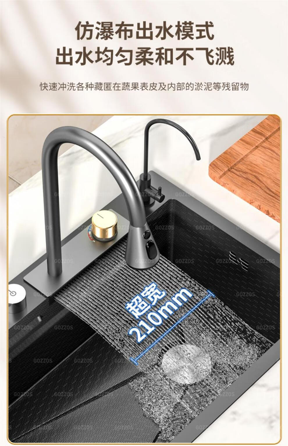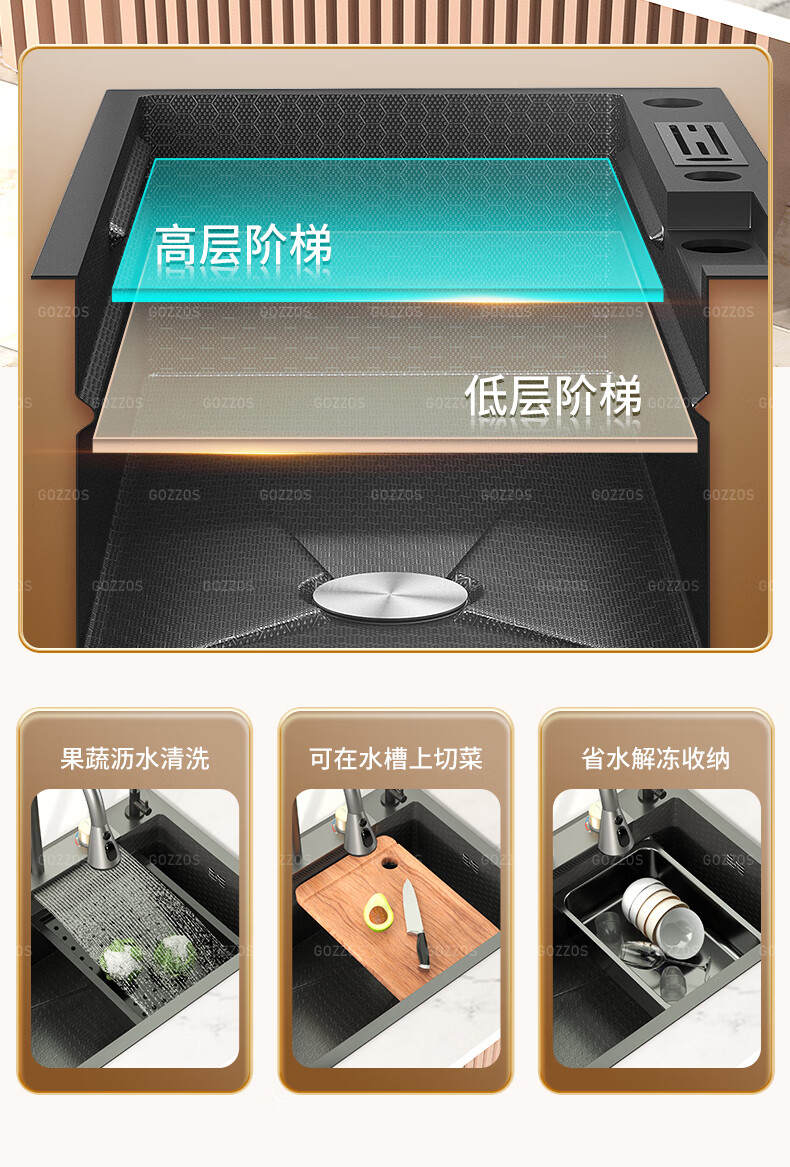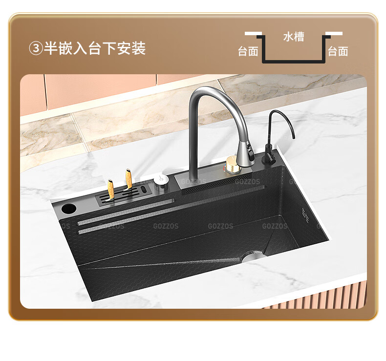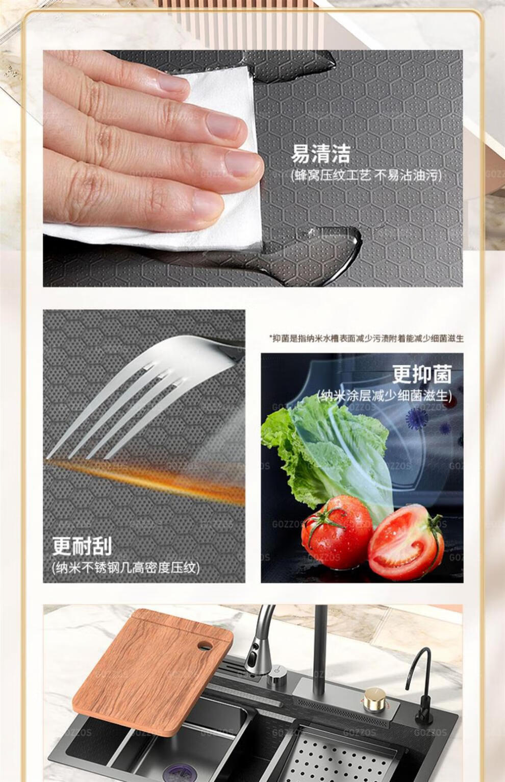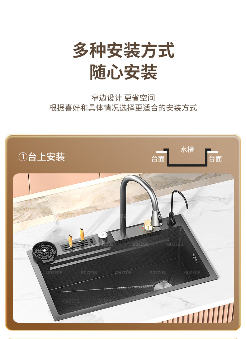 Rifeng Feiyu Waterfall Sink Embossed Honeycomb Kitchen 304 Stainless Steel Large Single Sink Household Wash Waterfall 80x45B Luxury Knife Rest Package