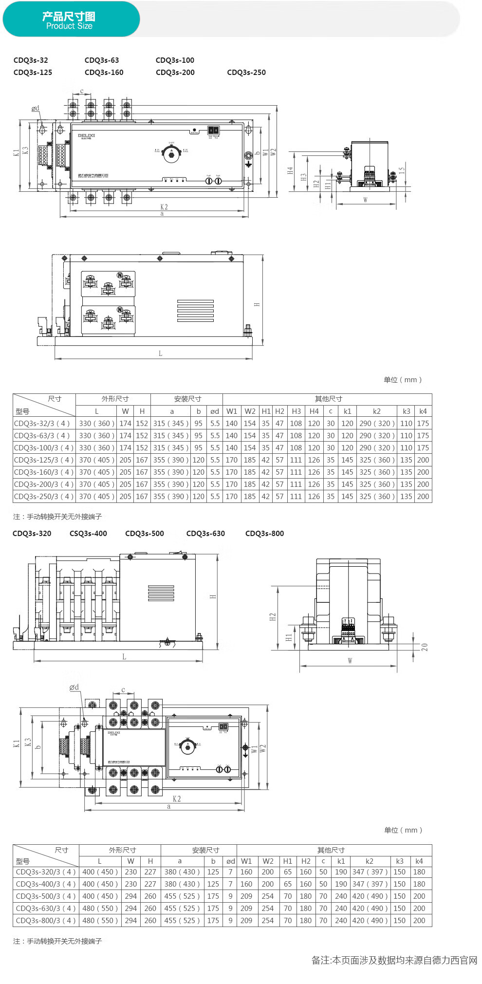Electrical A-type dual power automatic transfer switch CDQ3S-400/3P-320A