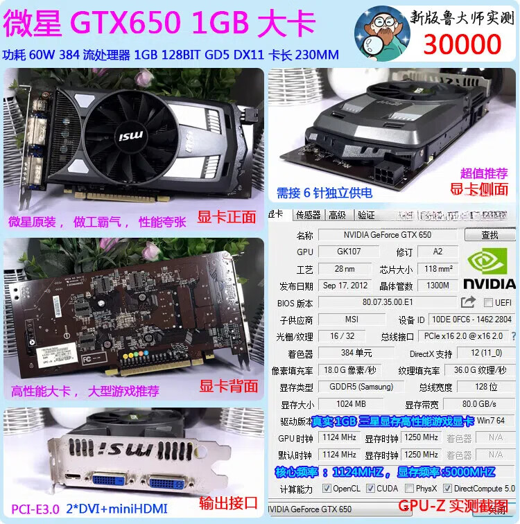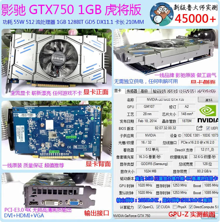 Second-hand game graphics card GTX650 GTX660 GTX750 GTX750TI GTX950GTX960 adapted to GALAXY GTX750 1G Tiger General VGA DHMI