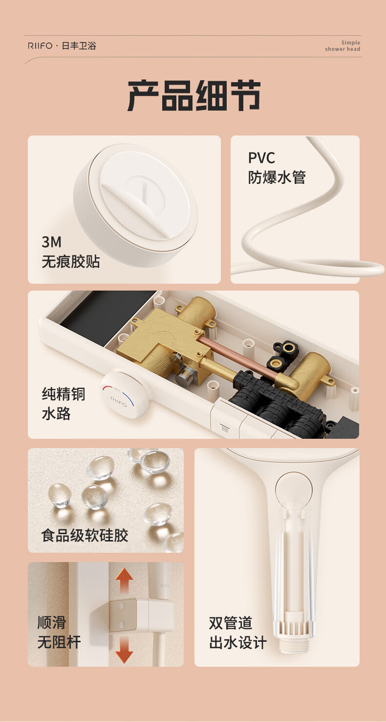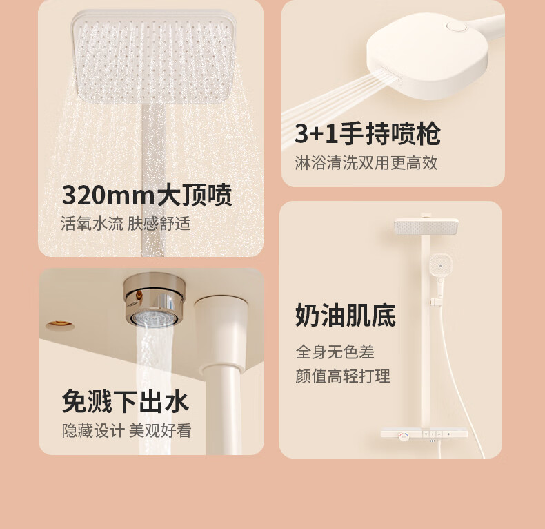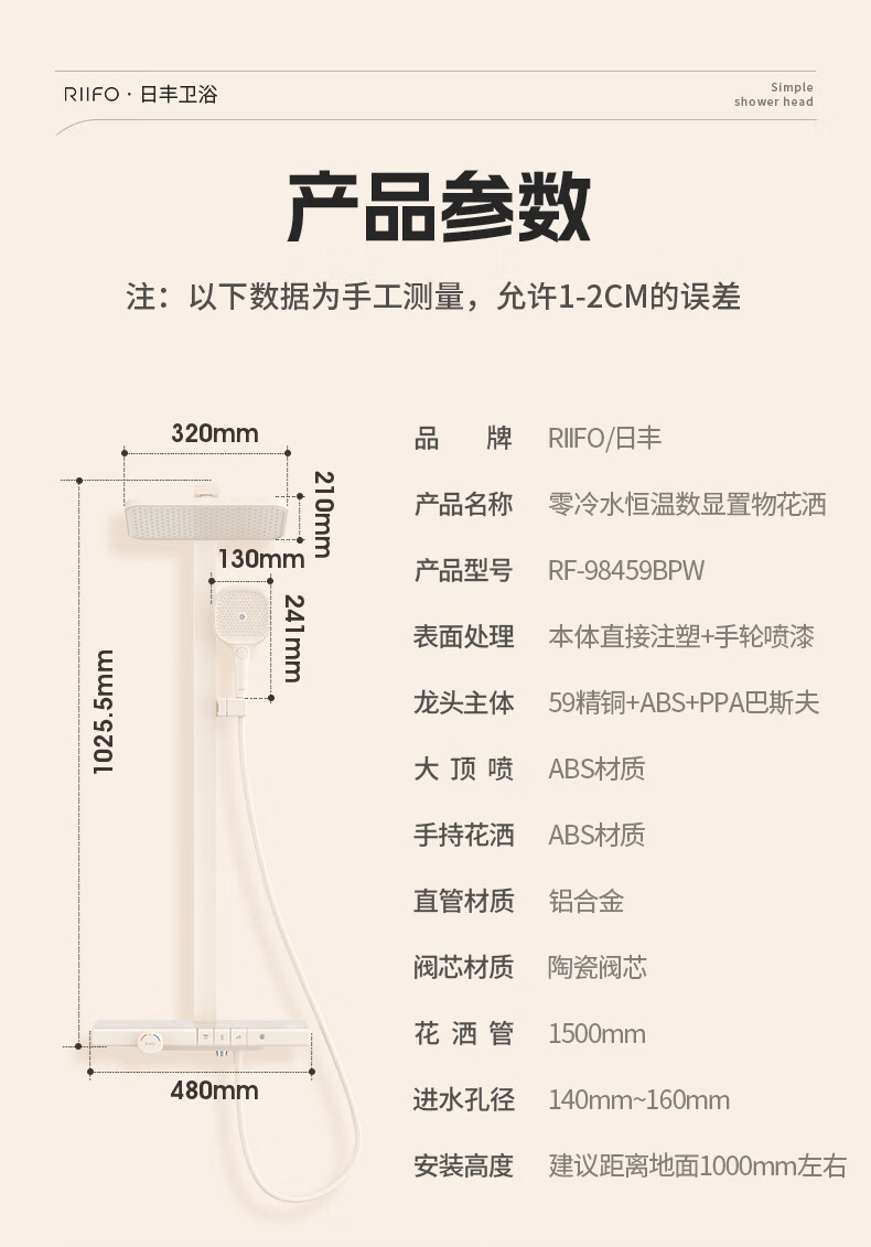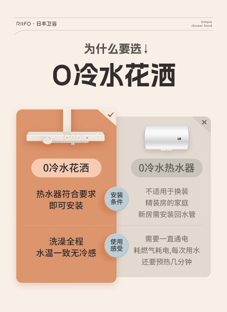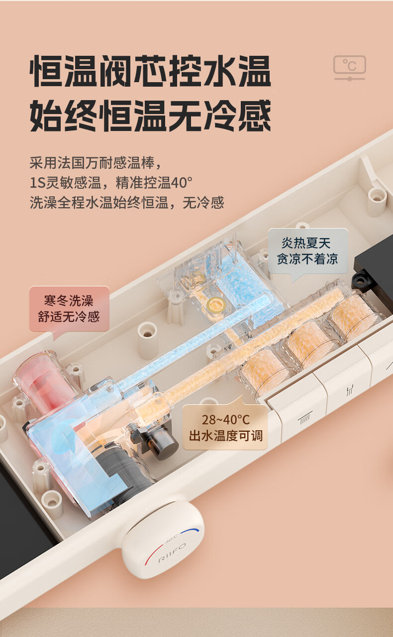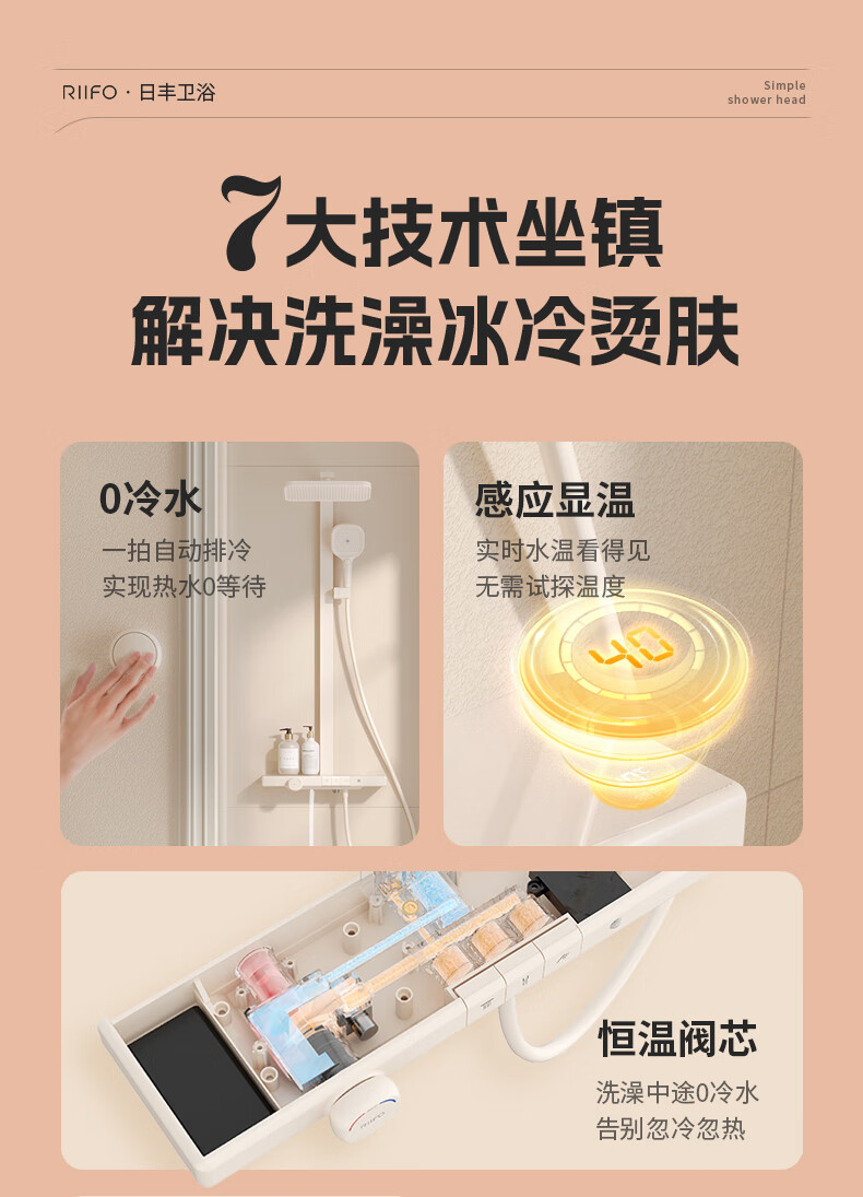 Rifeng Cream Style White Zero Cold Water Intelligent Digital Display Constant Temperature Shower Bath Constant Temperature Shower Set Booster Milk White Round Tube Three-Function Shower-