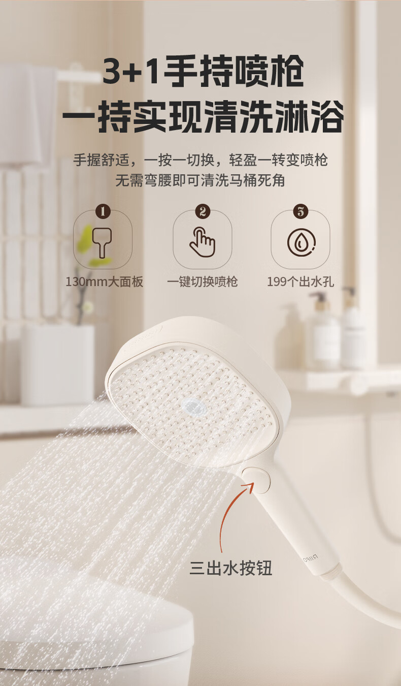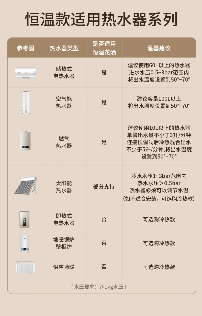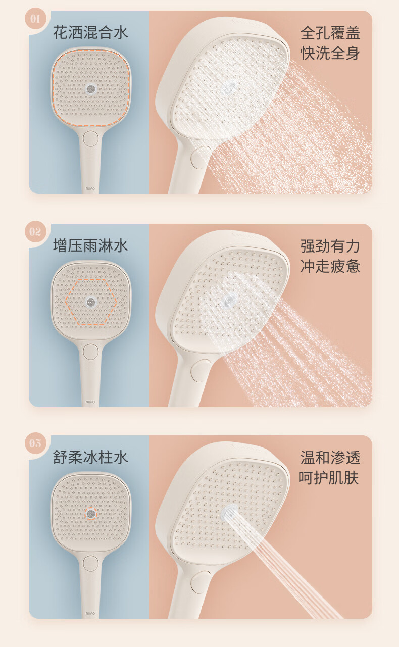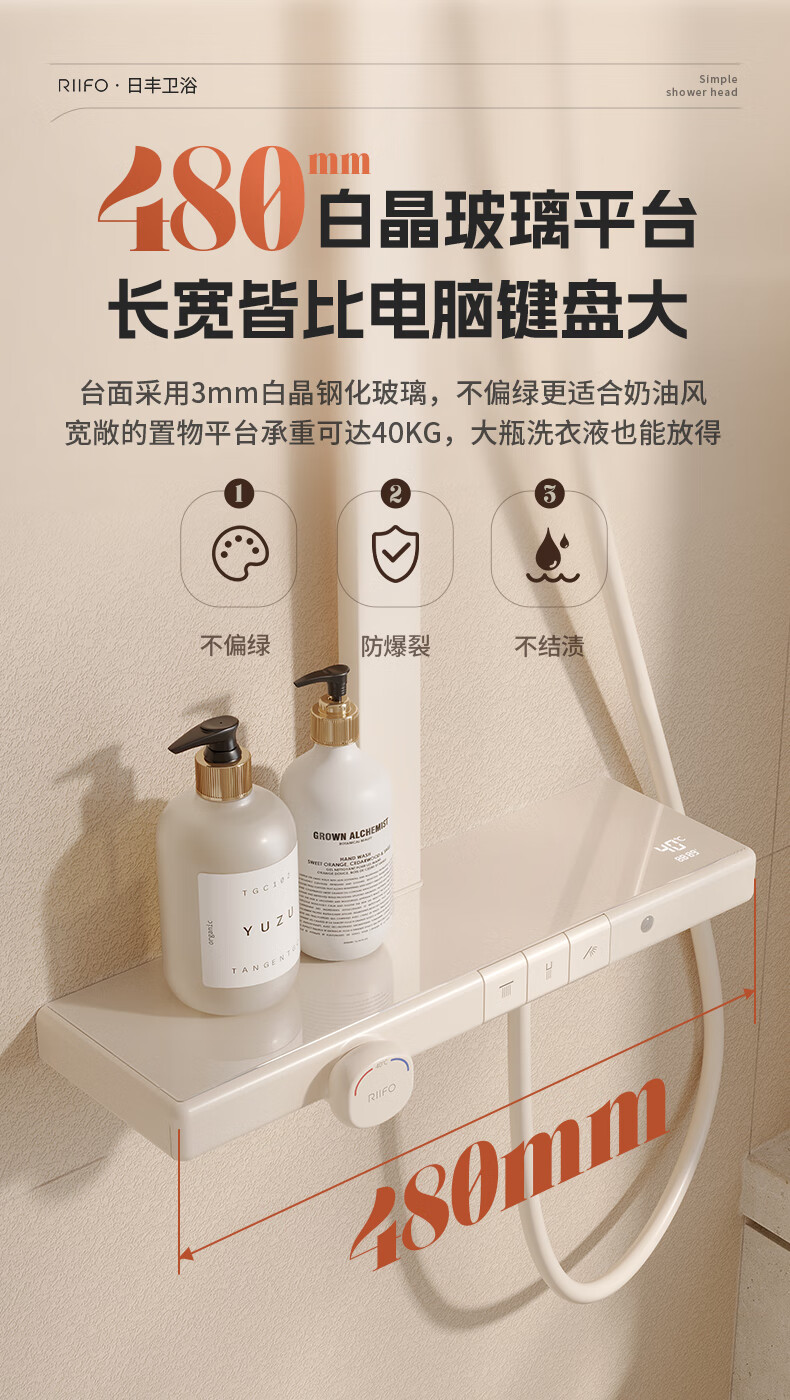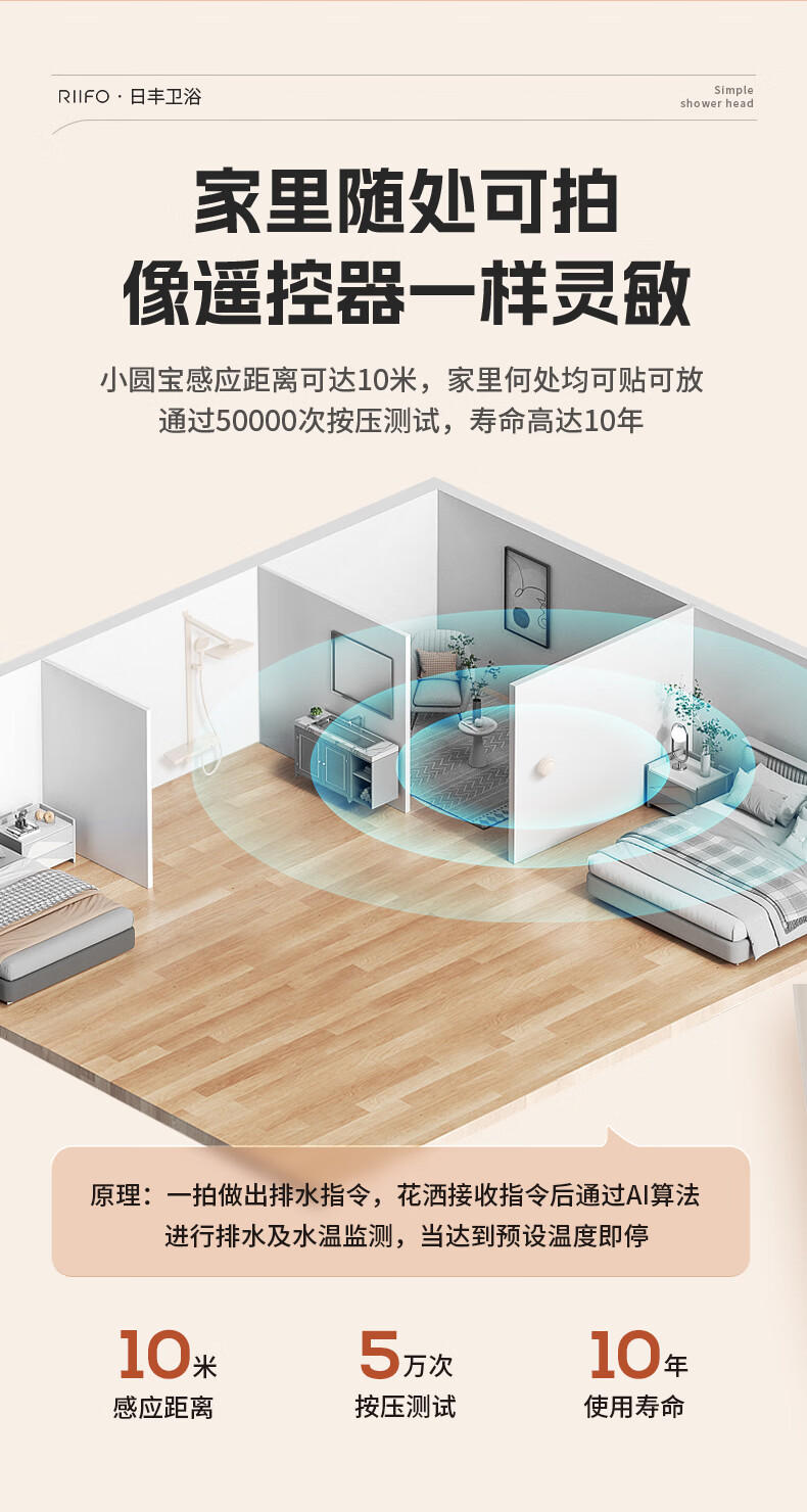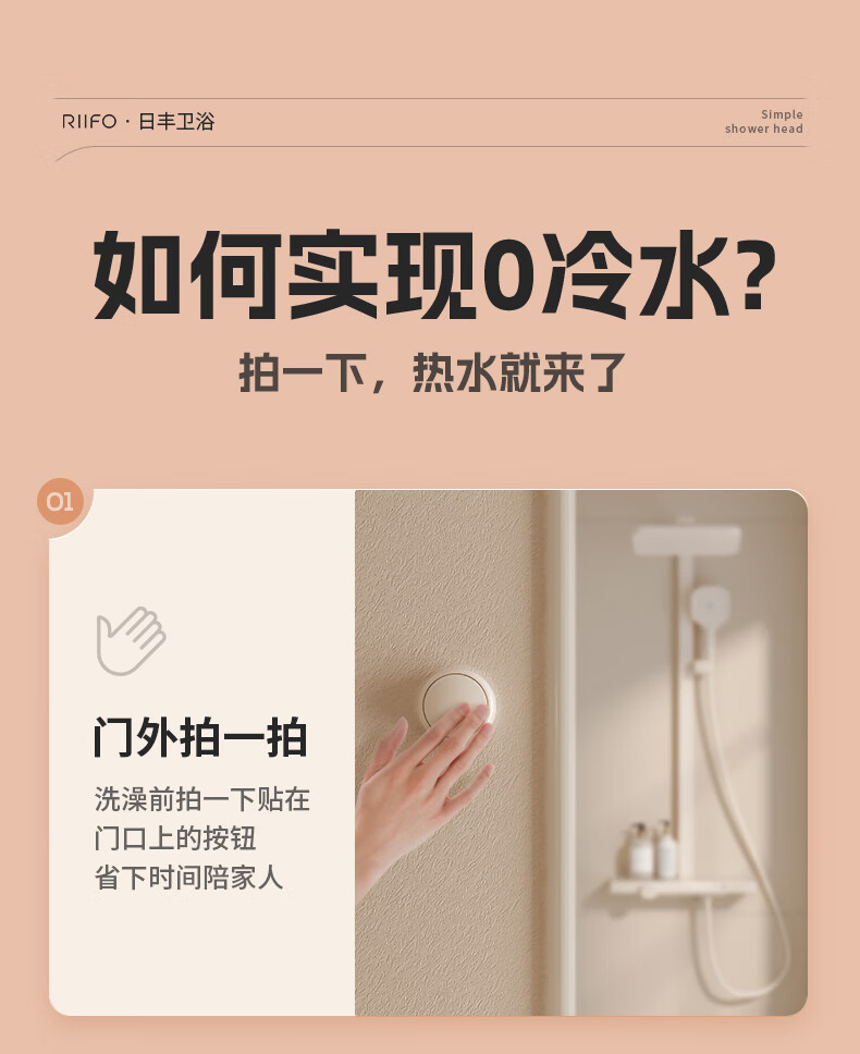Rifeng Cream Style White Zero Cold Water Intelligent Digital Display Constant Temperature Shower Bath Constant Temperature Shower Set Booster Milk White Round Tube Three-Function Shower-