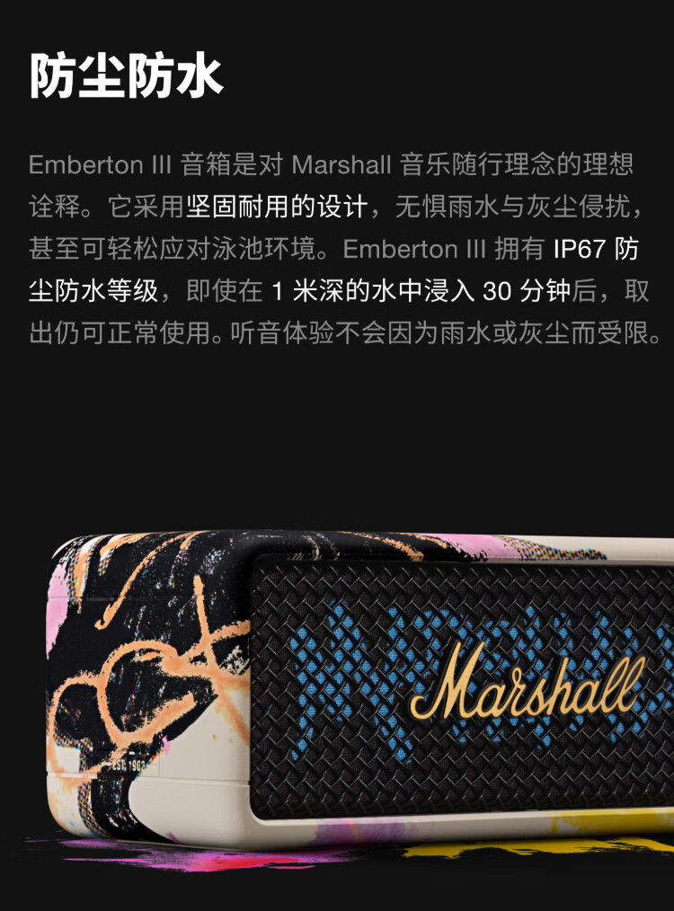 Marshall EMBERTON III Wireless Bluetooth Portable 3rd Generation Speaker Outdoor Dustproof and Waterproof Mini Speaker Black Gold