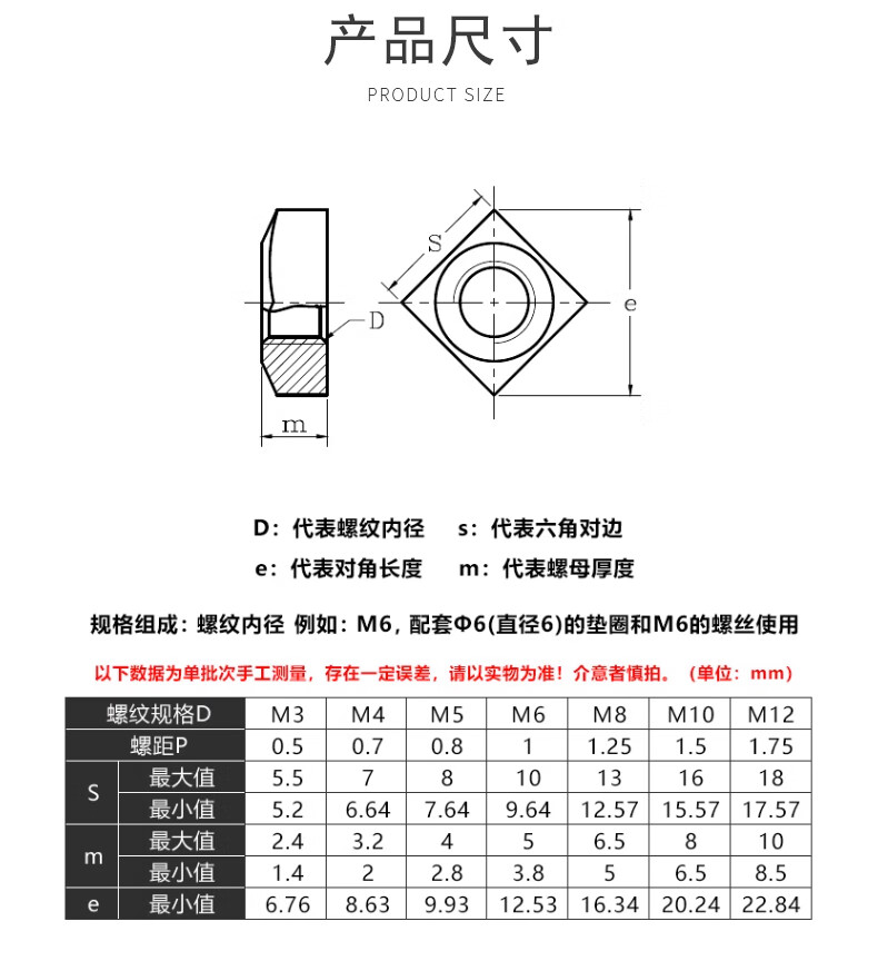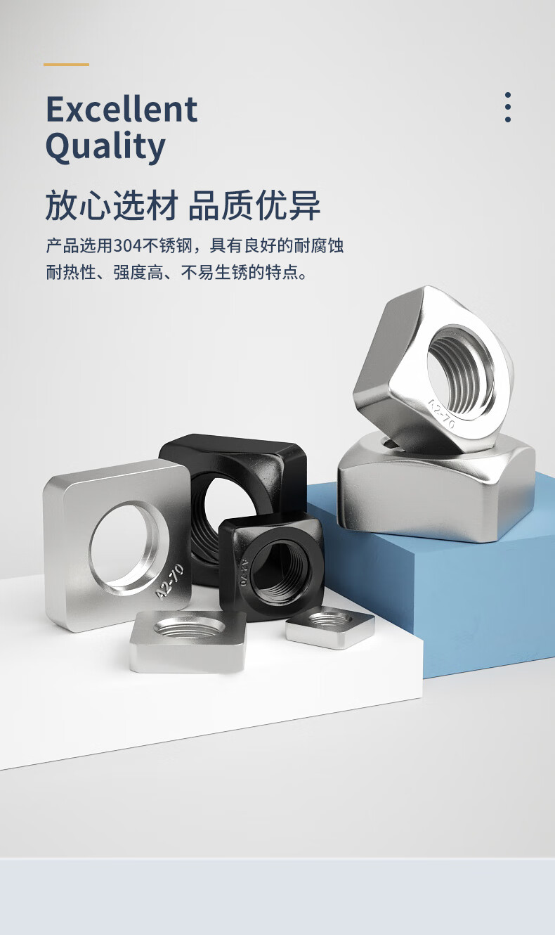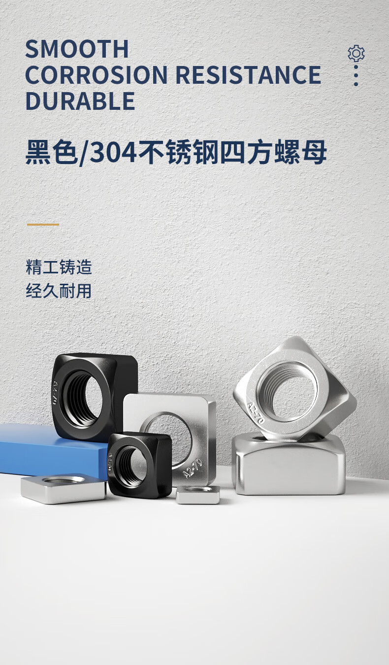 Guwanji 304/201 stainless steel square nut square nut square nut locking thin screw nut national standard M4x7x2 (white zinc right angle) 200 pieces