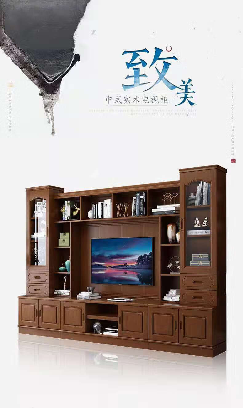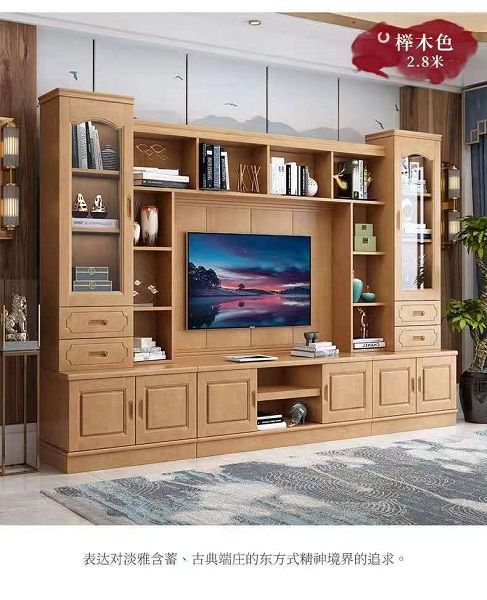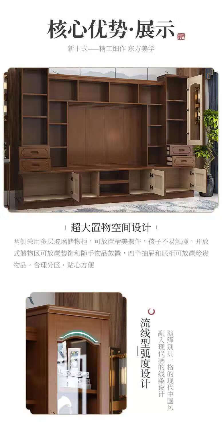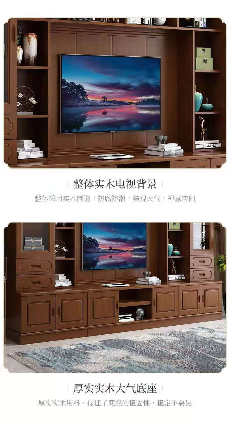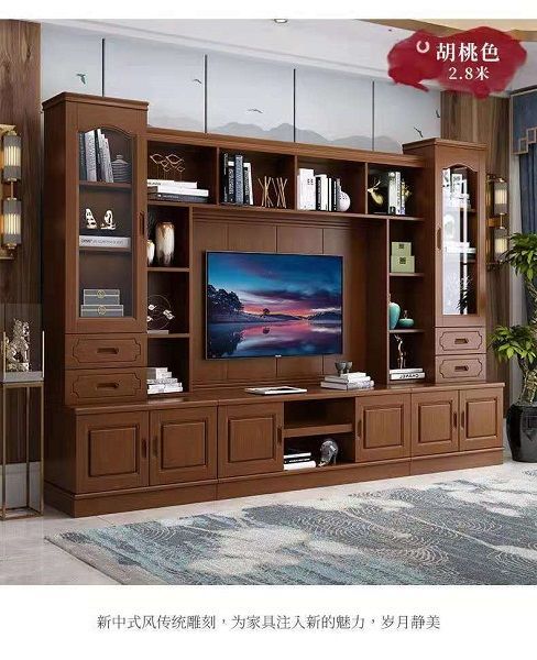 Ximofang Chinese solid wood TV cabinet combination background wall cabinet living room multi-functional video cabinet high cabinet floor storage cabinet wine cabinet 2.8 meters walnut color including door-to-door installation