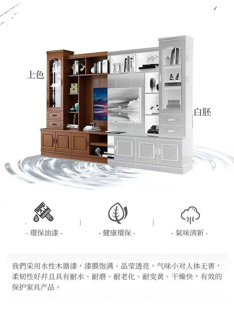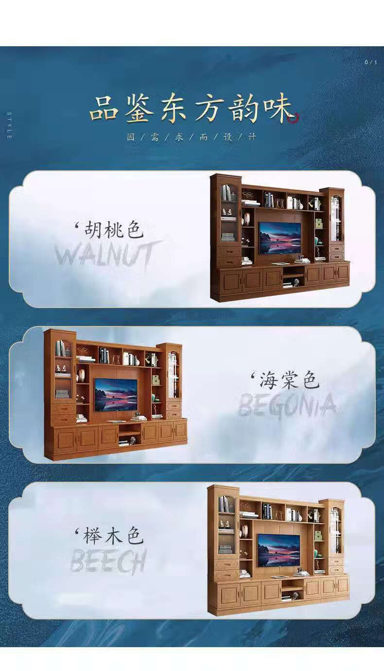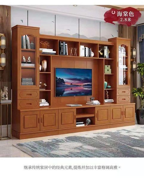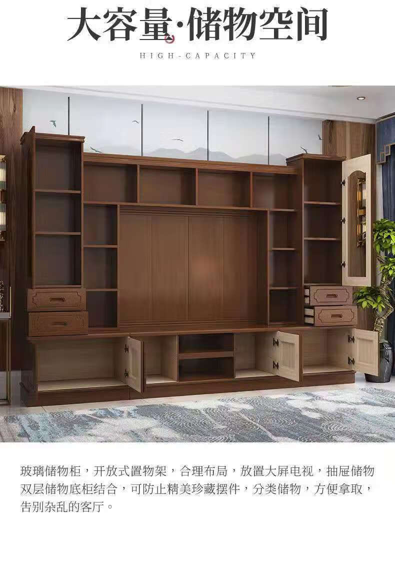 Ximofang Chinese solid wood TV cabinet combination background wall cabinet living room multi-functional video cabinet high cabinet floor storage cabinet wine cabinet 2.8 meters walnut color including door-to-door installation