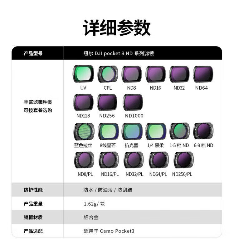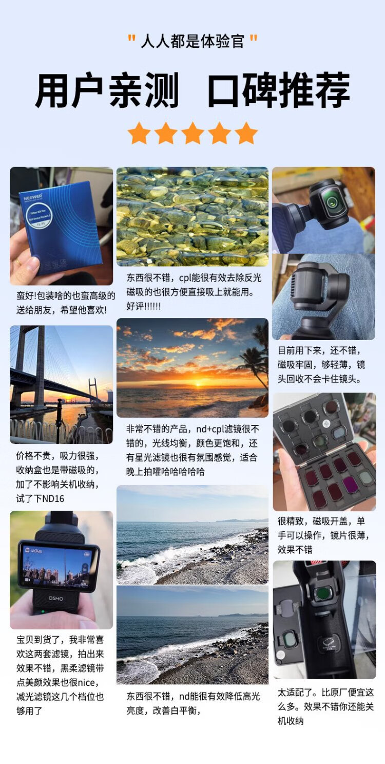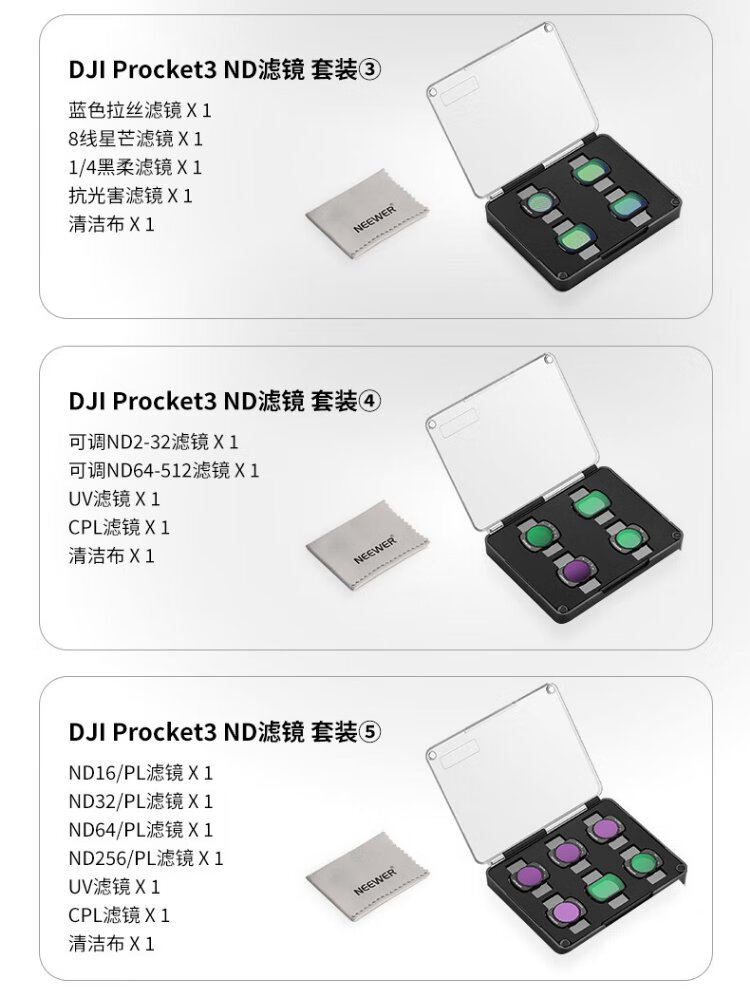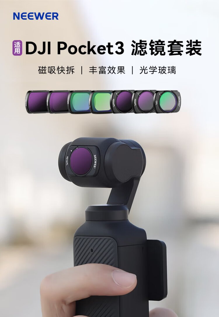 NEEWER is suitable for DJI DJI pocket3 filter set magnetic quick release ND/UV/CPL/Heiro Pocket 3 movie lens shooting light reduction polarization light reduction starlight amplification filter Heiro 1/4+CPL+adjustable ND2-32