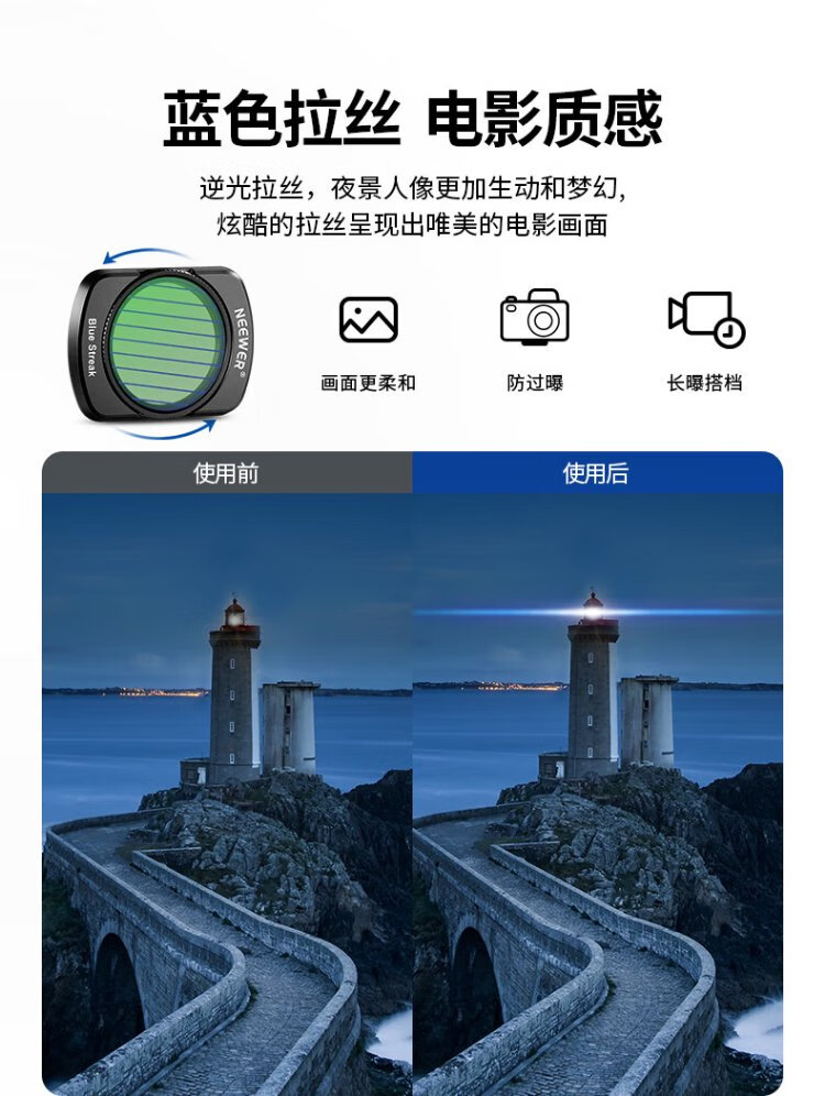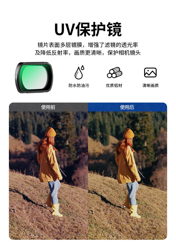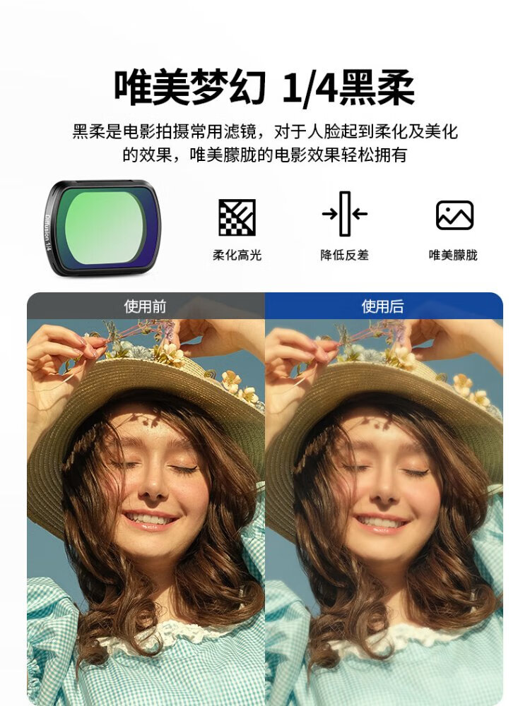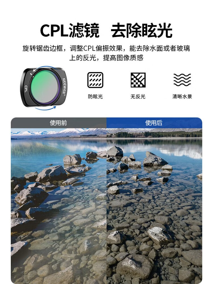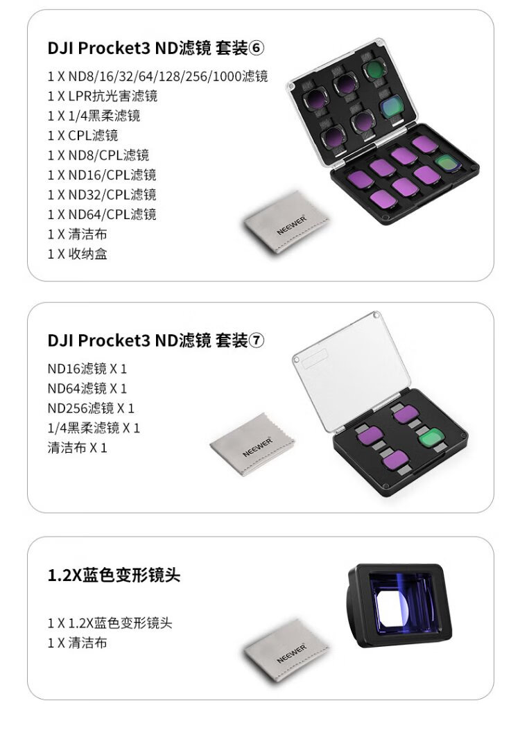 NEEWER is suitable for DJI DJI pocket3 filter set magnetic quick release ND/UV/CPL/Heiro Pocket 3 movie lens shooting light reduction polarization light reduction starlight amplification filter Heiro 1/4+CPL+adjustable ND2-32