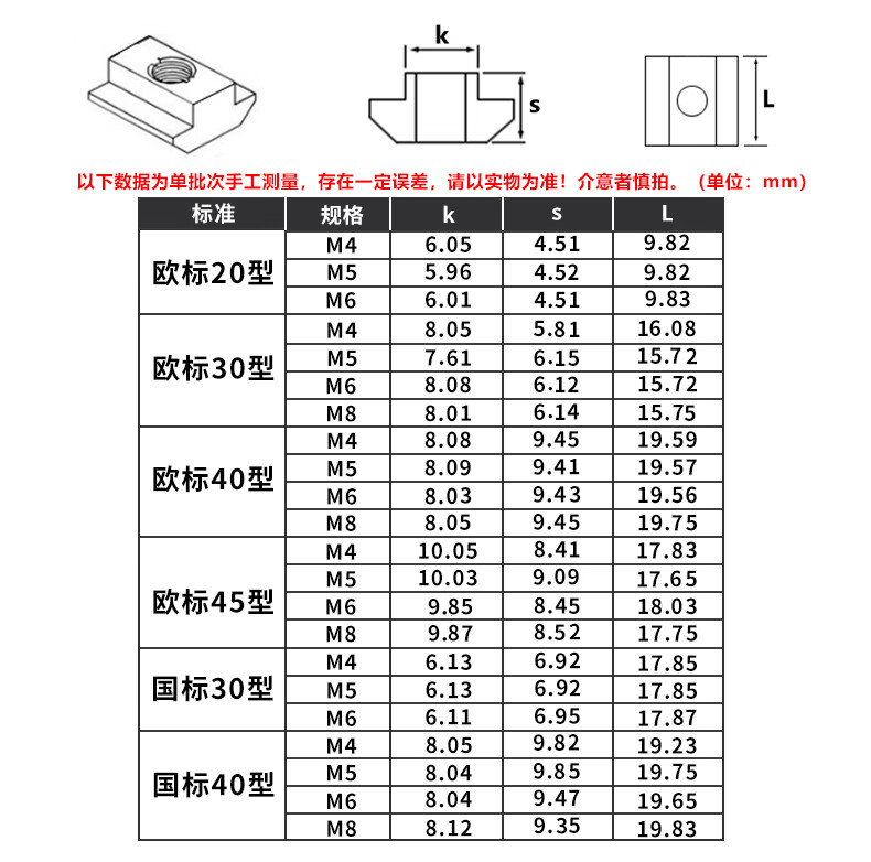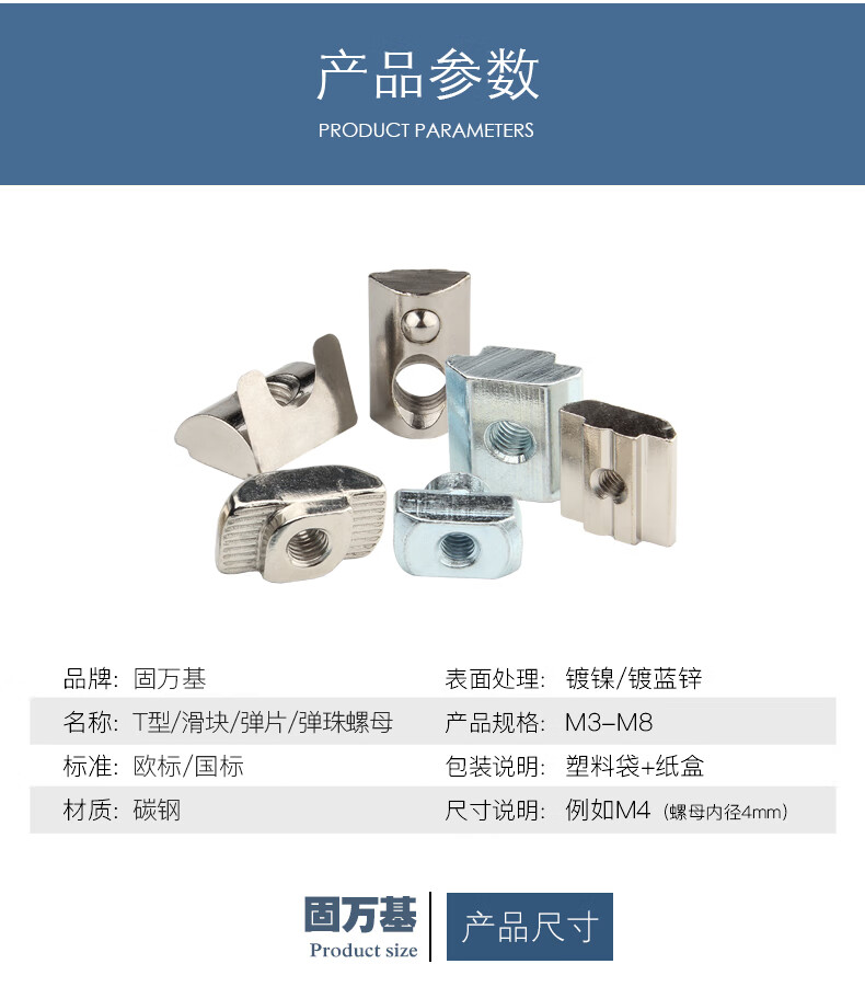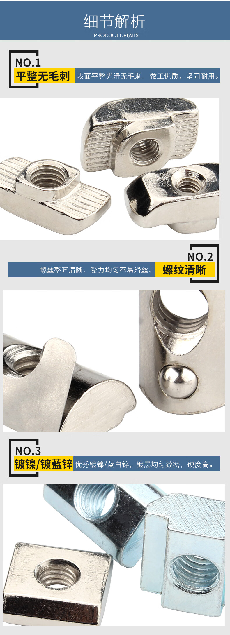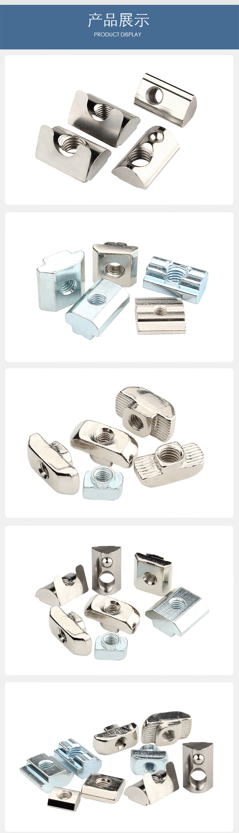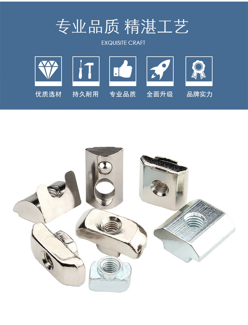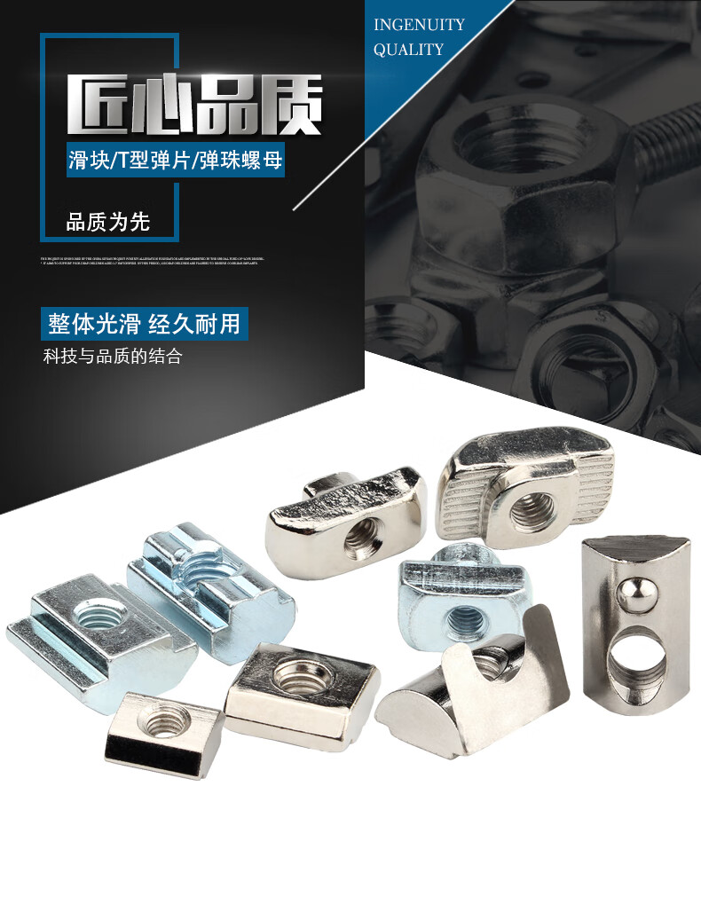 Guwanji European standard T-type nut 20/30/40/45 national standard aluminum profile T-shaped boat-shaped hammer head slider spring nut nickel-plated European standard type 20-M5 20 T-type