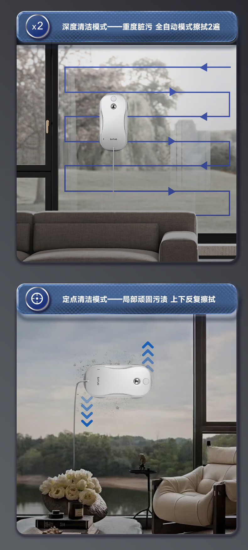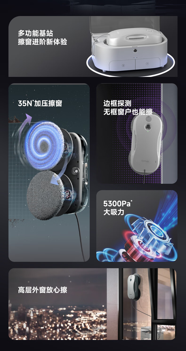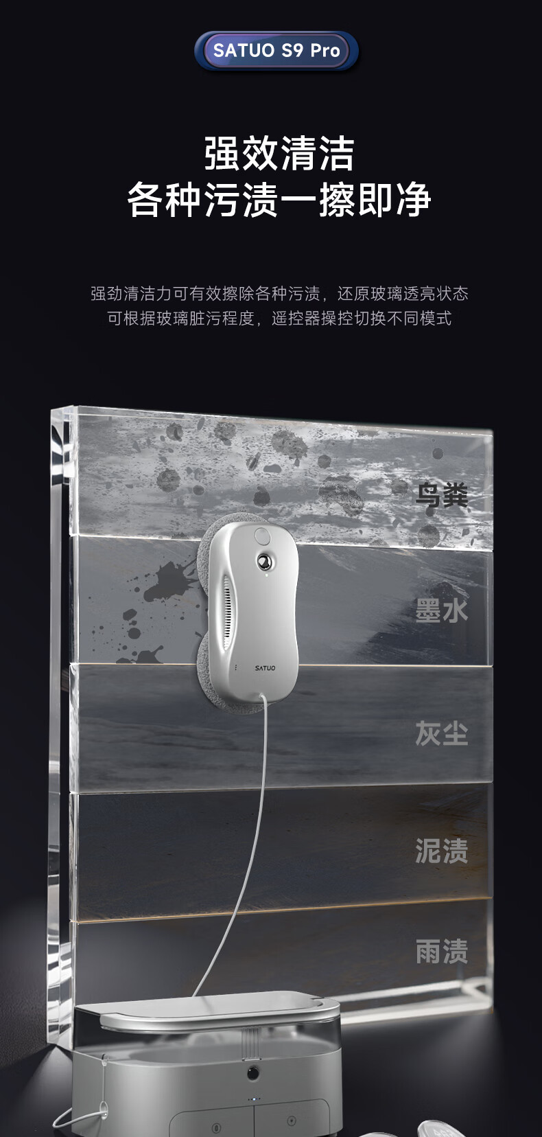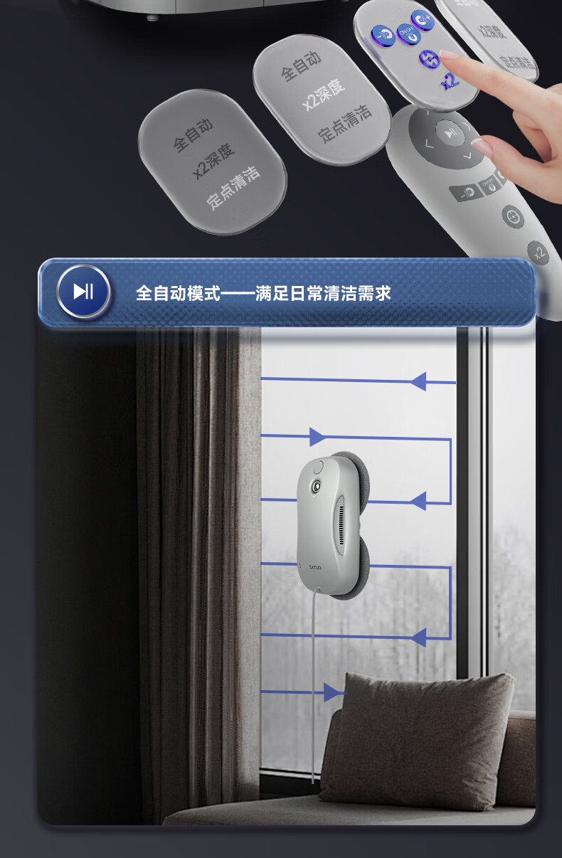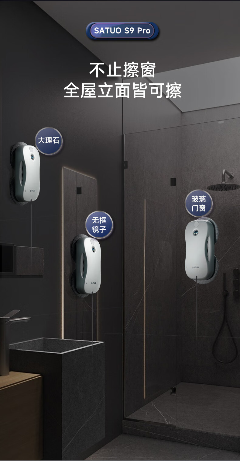Satuo Smart Home Window Cleaning Robot Two-way Water Spraying Glass Cleaning Robot High-Rise Electric Glass Cleaning Artifact S9pro