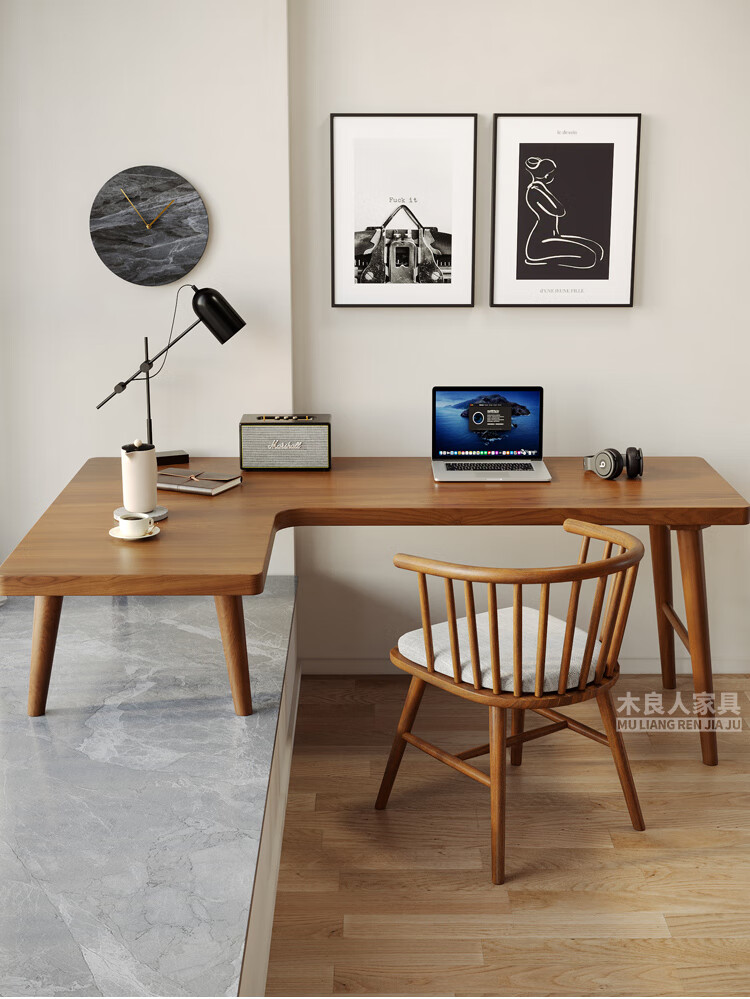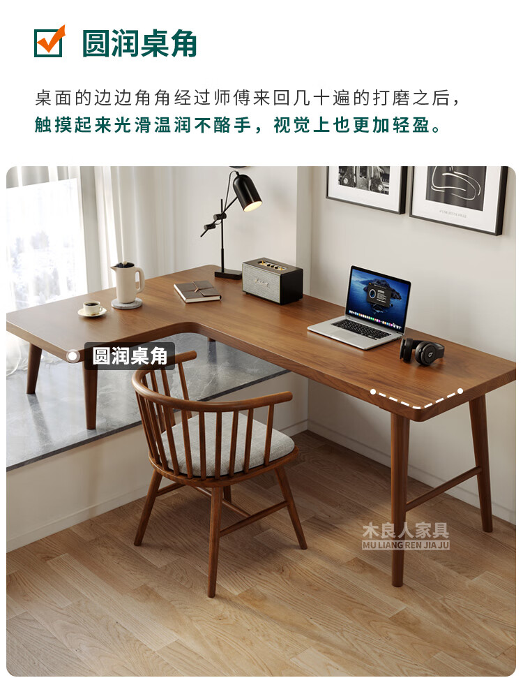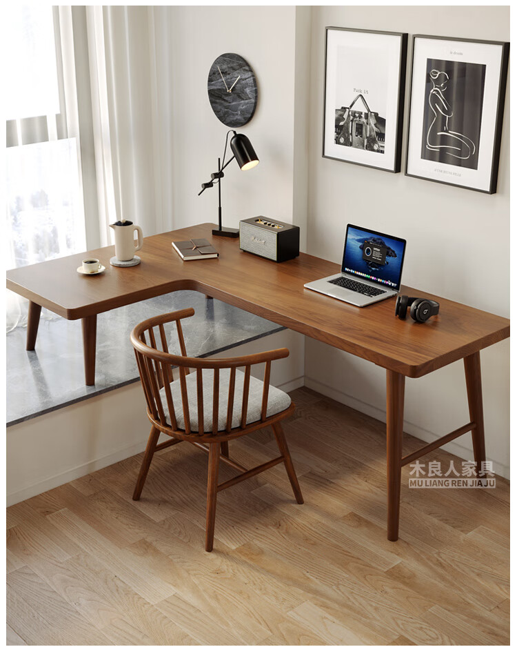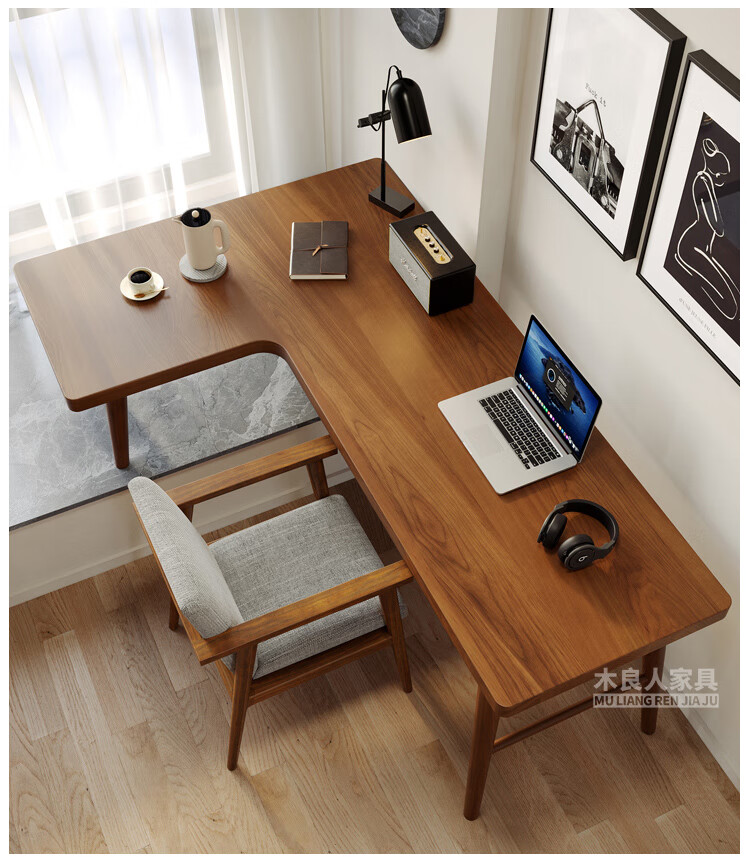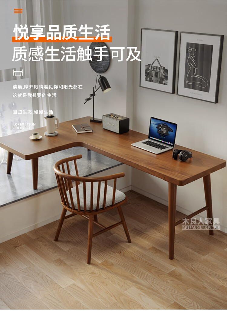 Pifeng solid wood double computer desk bay window L-shaped corner desk light luxury simple modern home office writing desk four-color desktop optional (package included)