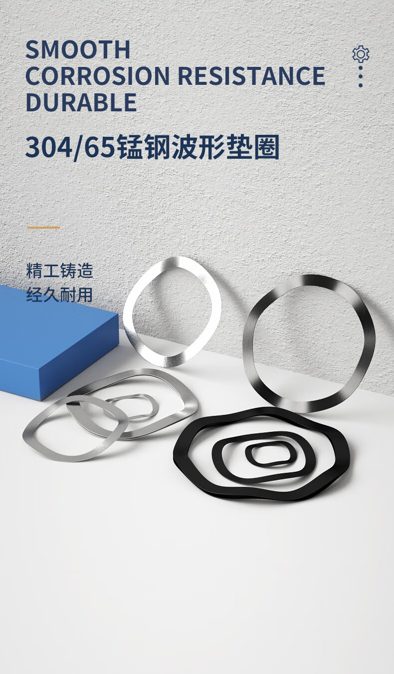 Guwanji 65 manganese steel corrugated elastic washer 304 stainless steel spring three-peak washer bearing wave washer M23*29*0.3 50 pieces 304