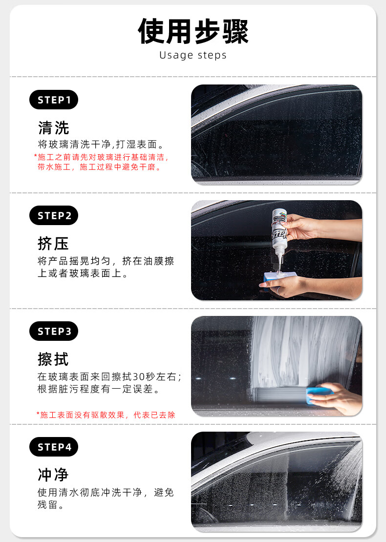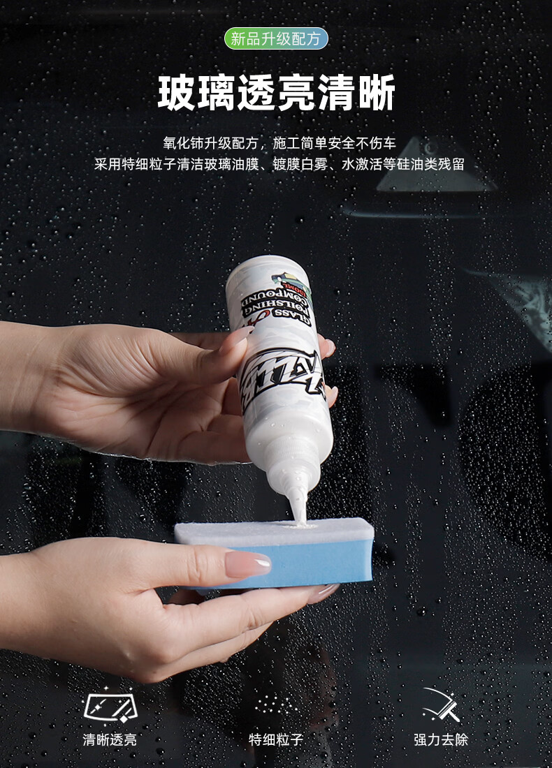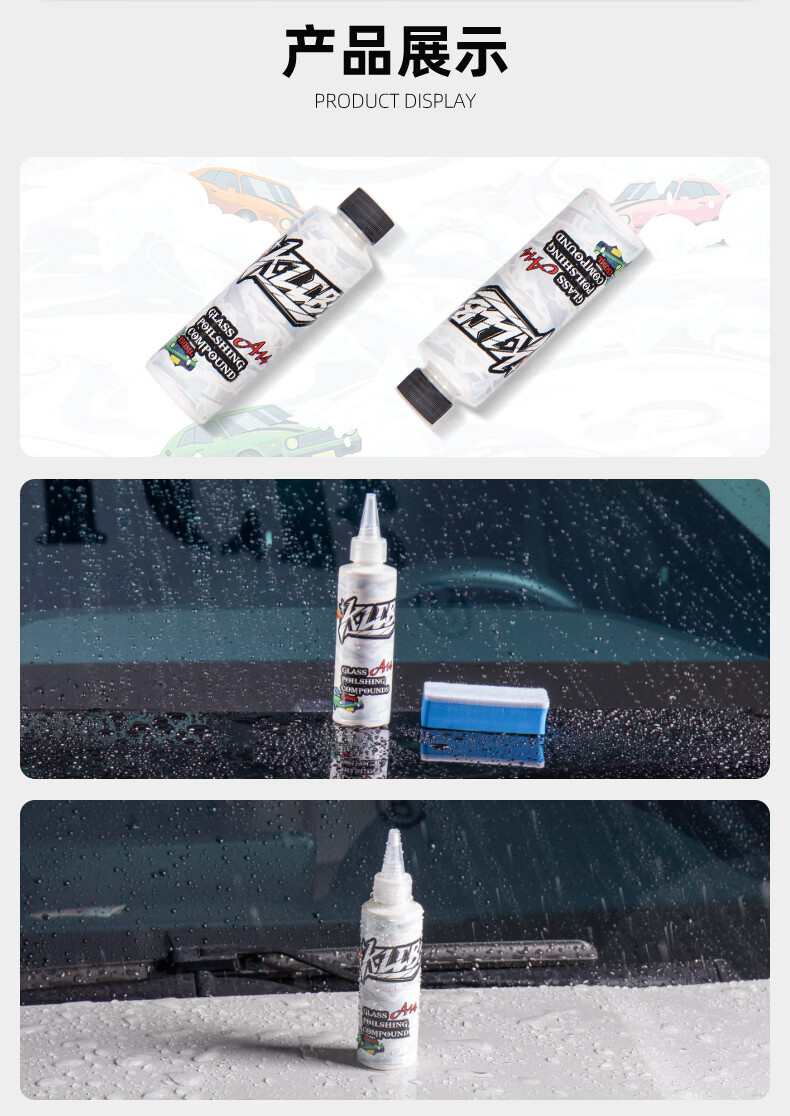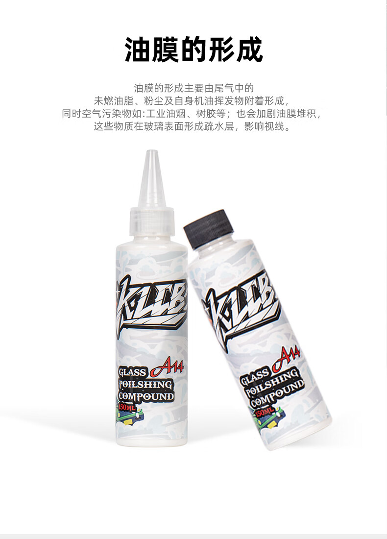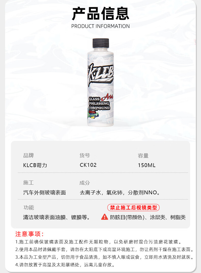 KLCB caustic A14 glass polish removes oil film, front windshield removes water, activates coating, white mist, water stains, cerium oxide A14 glass polish 150ml 1 bottle