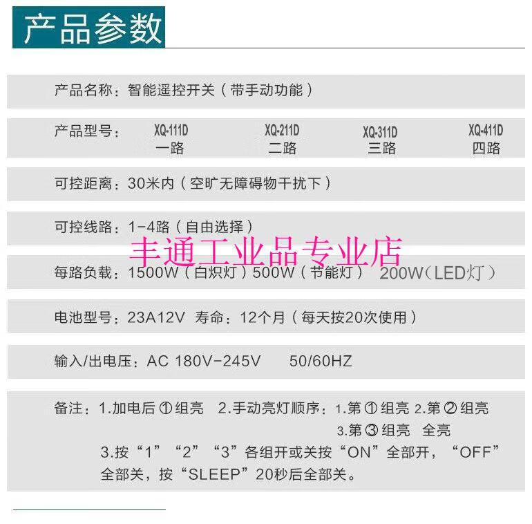 Xianqizhuibangqixin electronic digital remote control switch lamp LED segmented remote control one, two, three and four channels XQ-111D one channel remote control switch