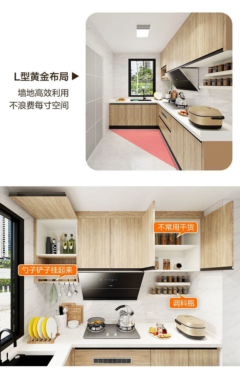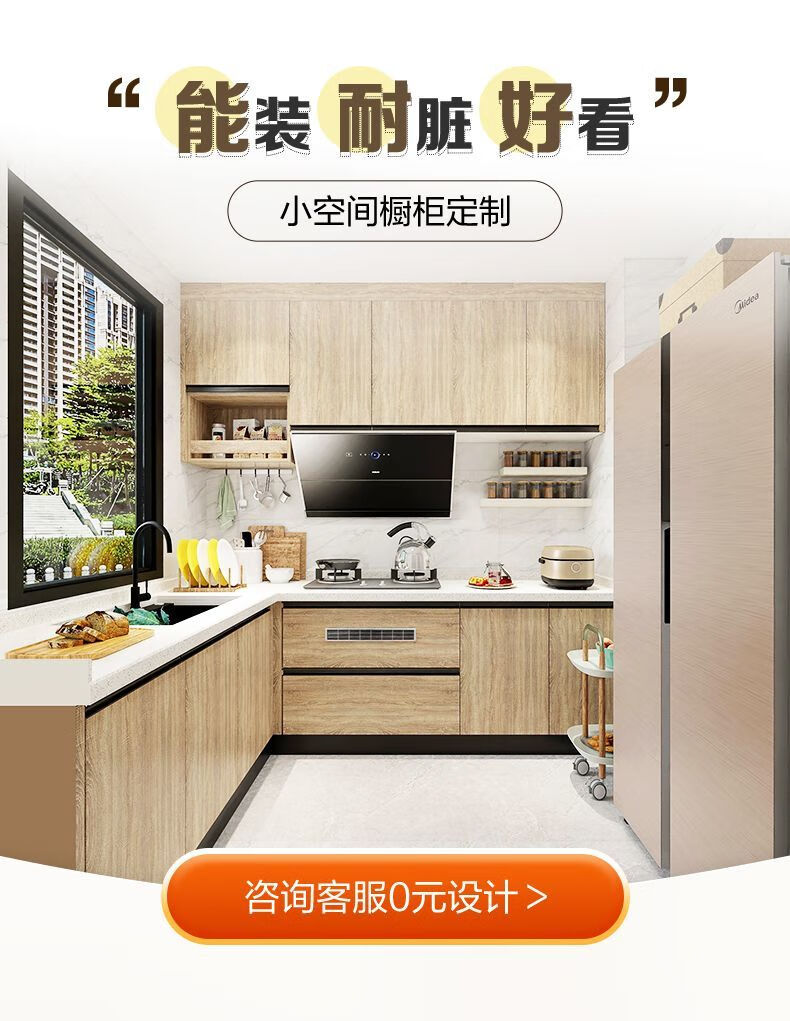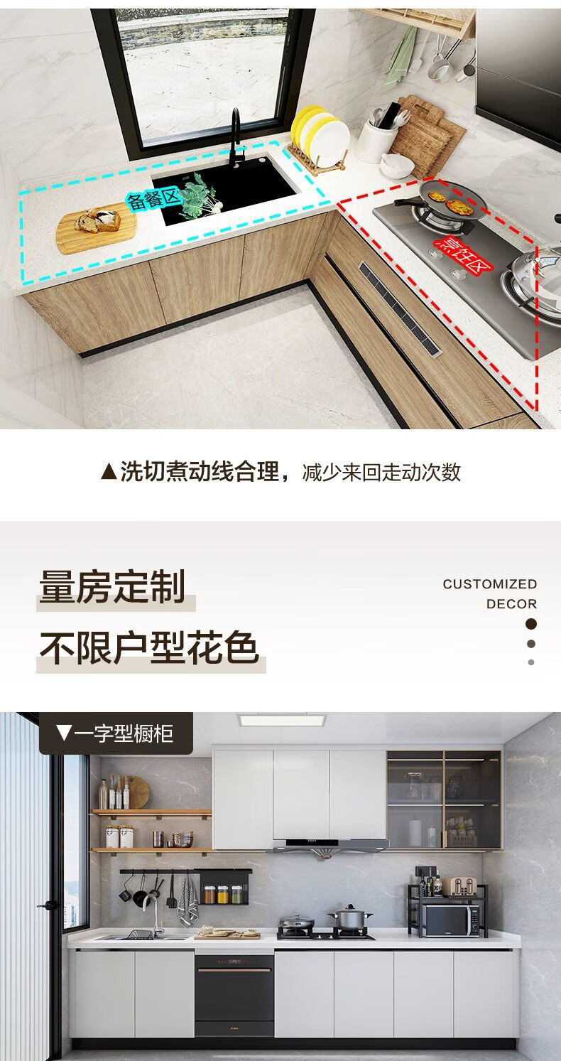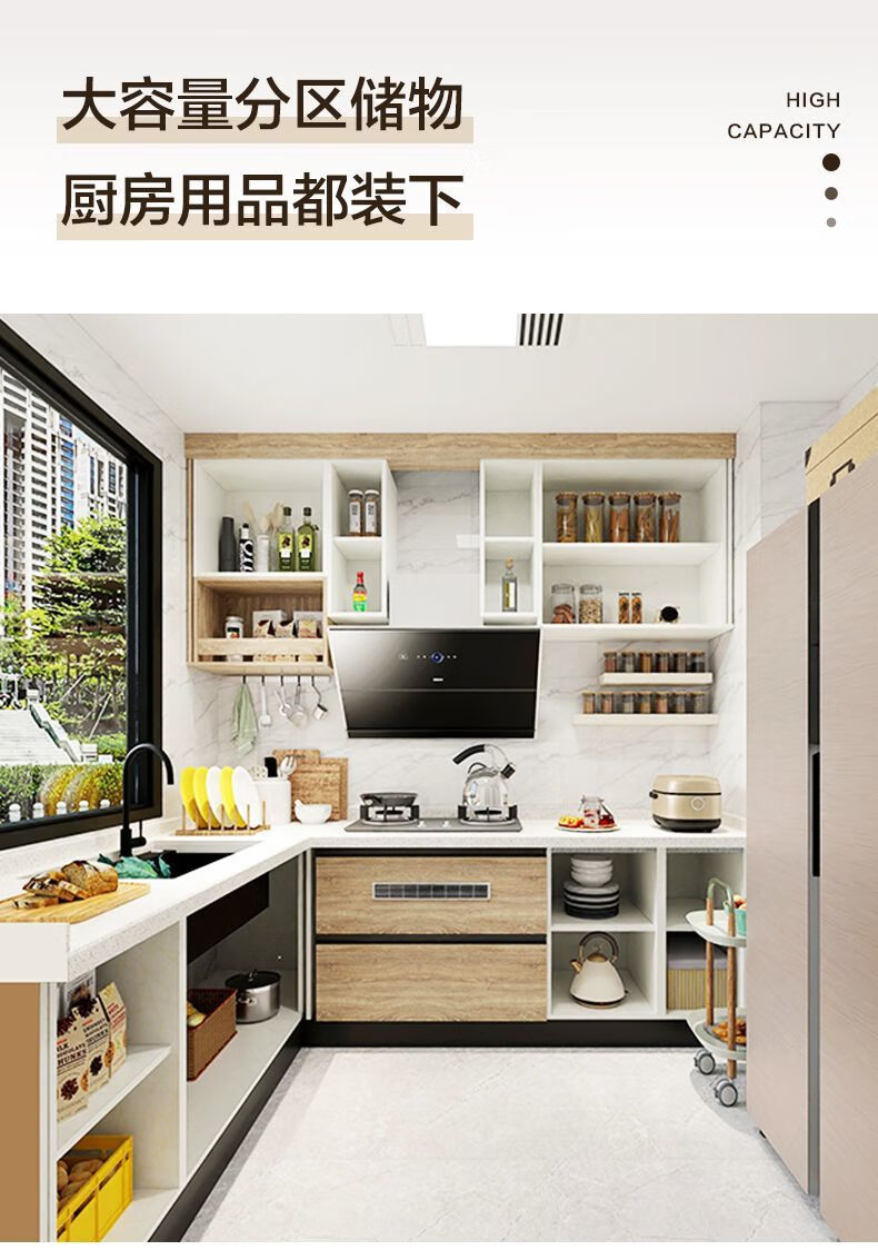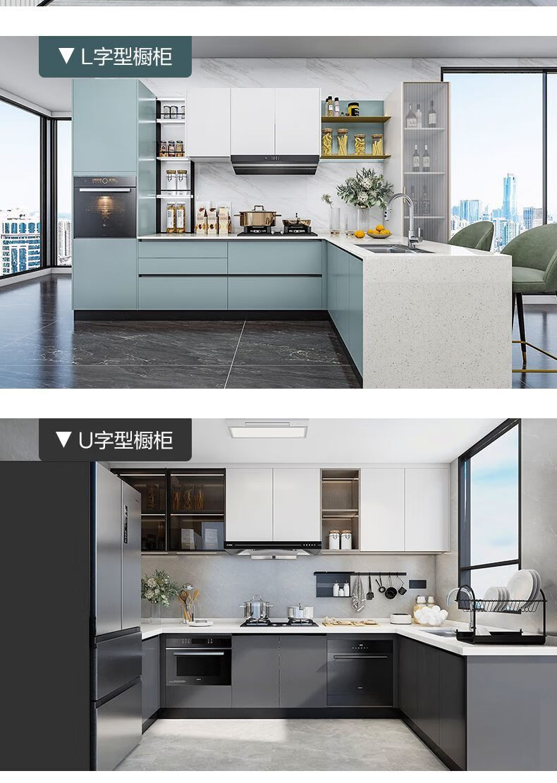Qinkai cabinets customized integrated kitchen quartz stone countertops L-shaped home decoration stove cabinet integrated kitchen cabinets prepaid