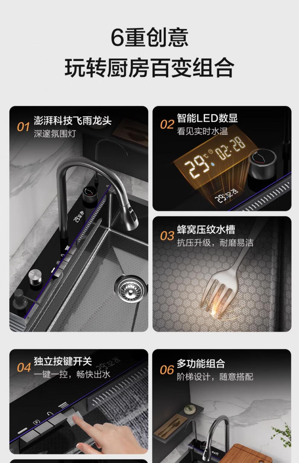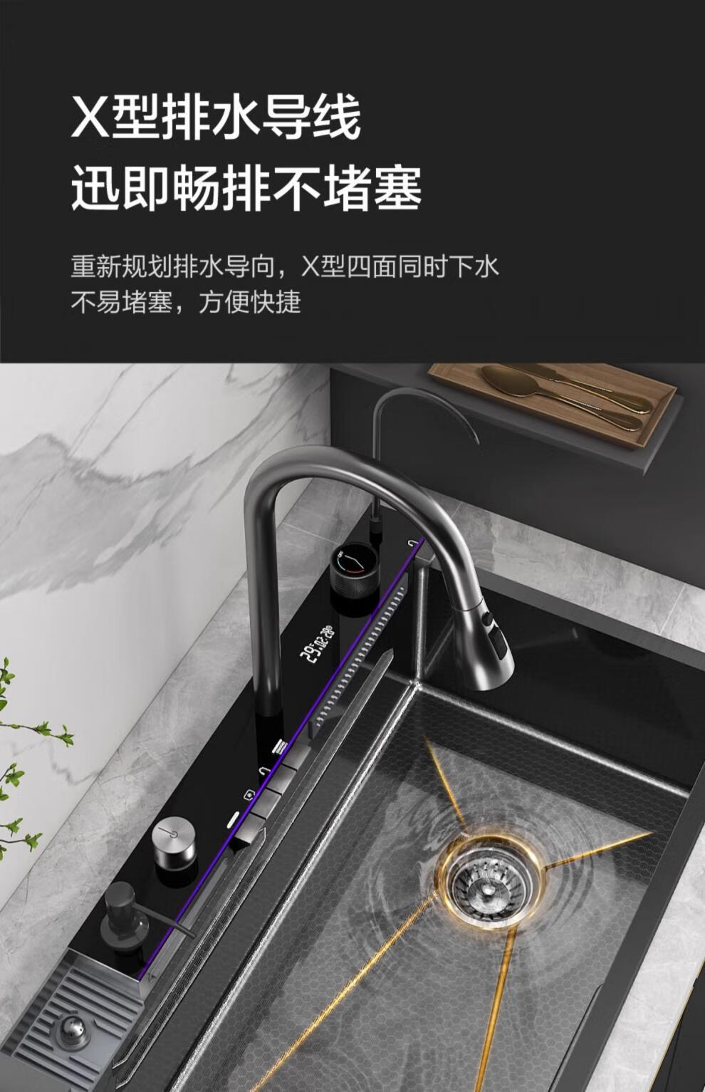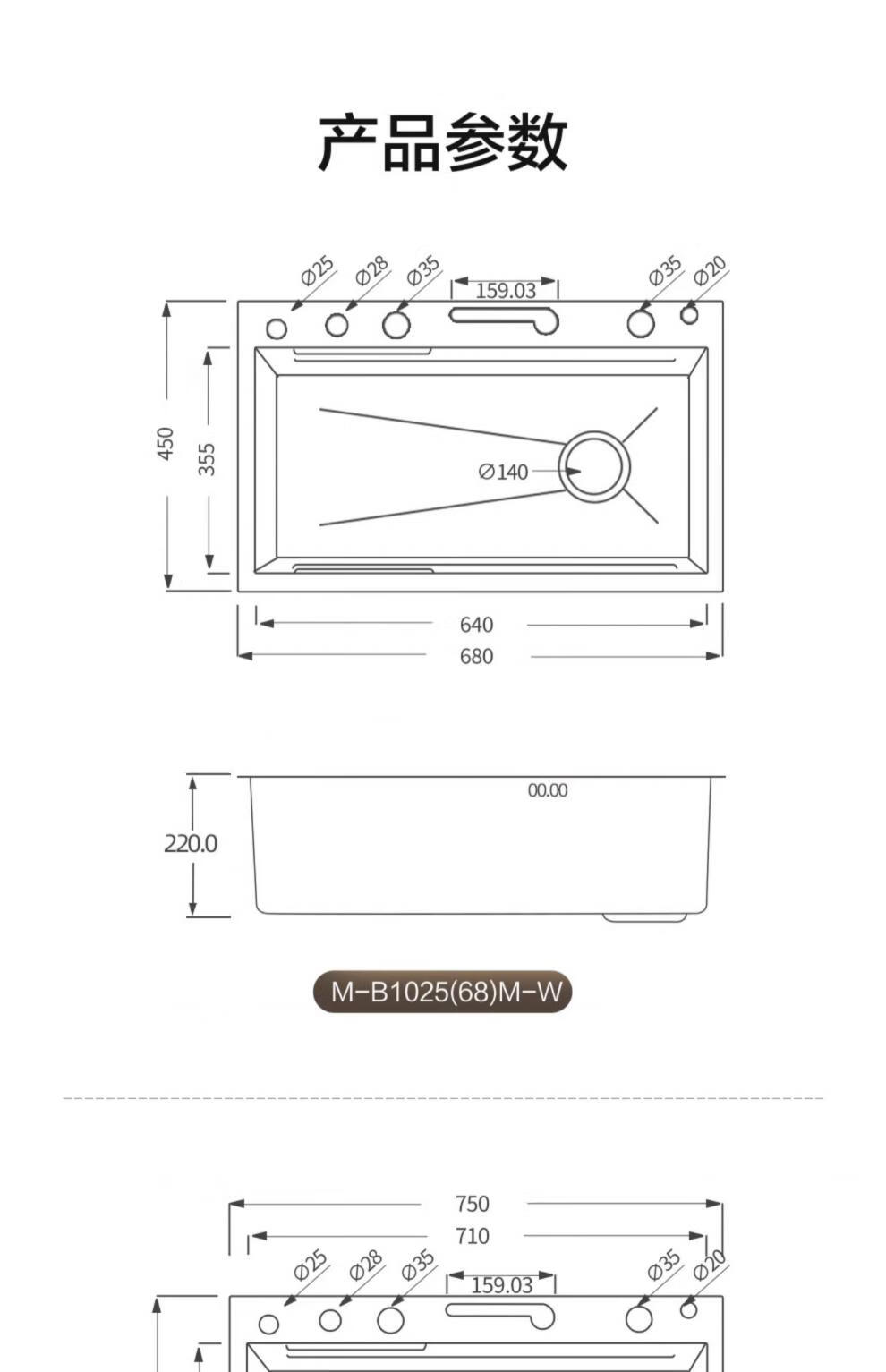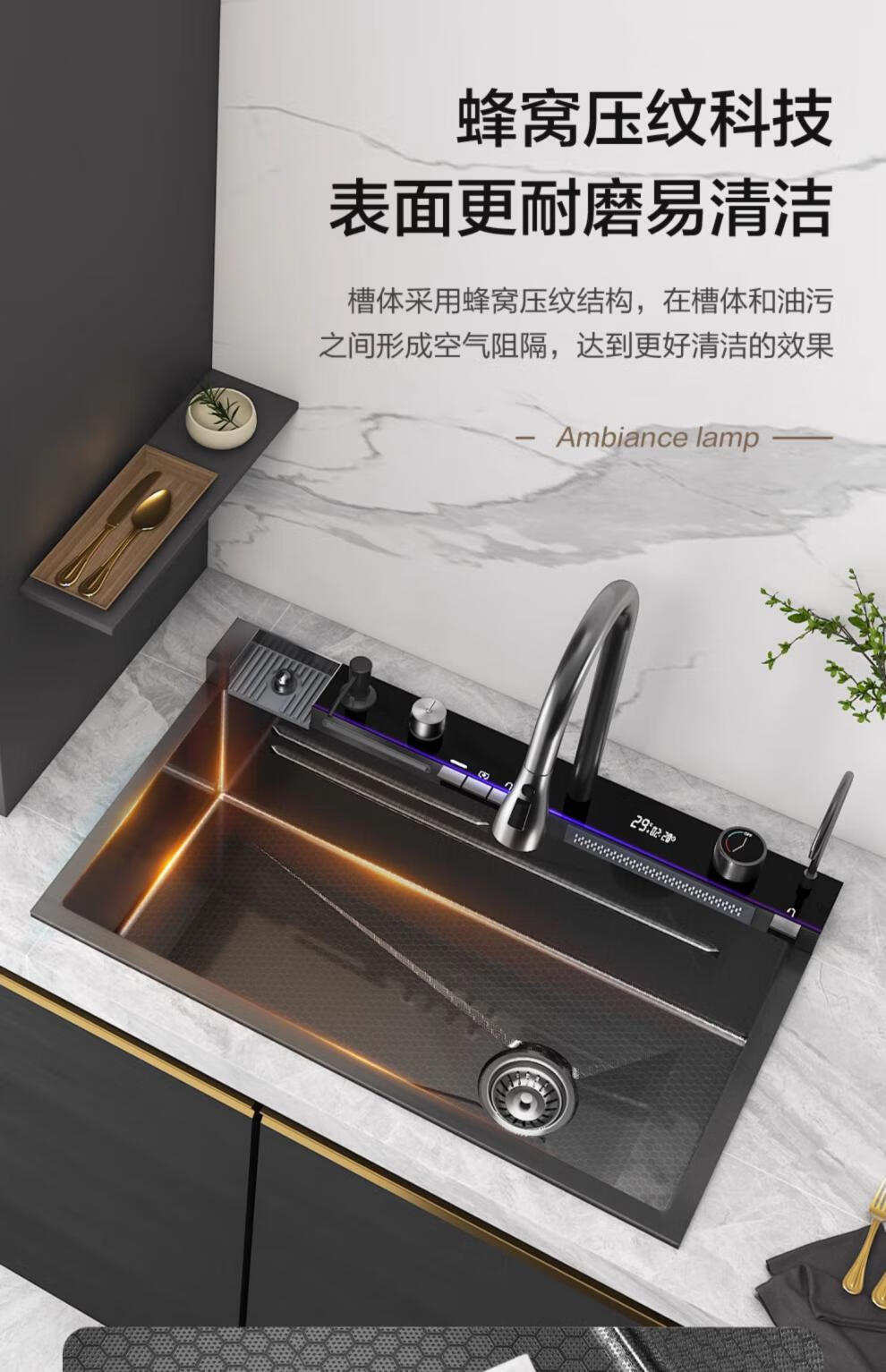 Four Seasons Muge (MICOE) sink black diamond handmade single-slot kitchen large single-slot dishwashing sink and vegetable basin 304 stainless steel popular model 75M honeycomb embossed +304