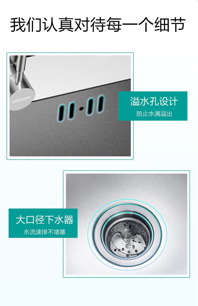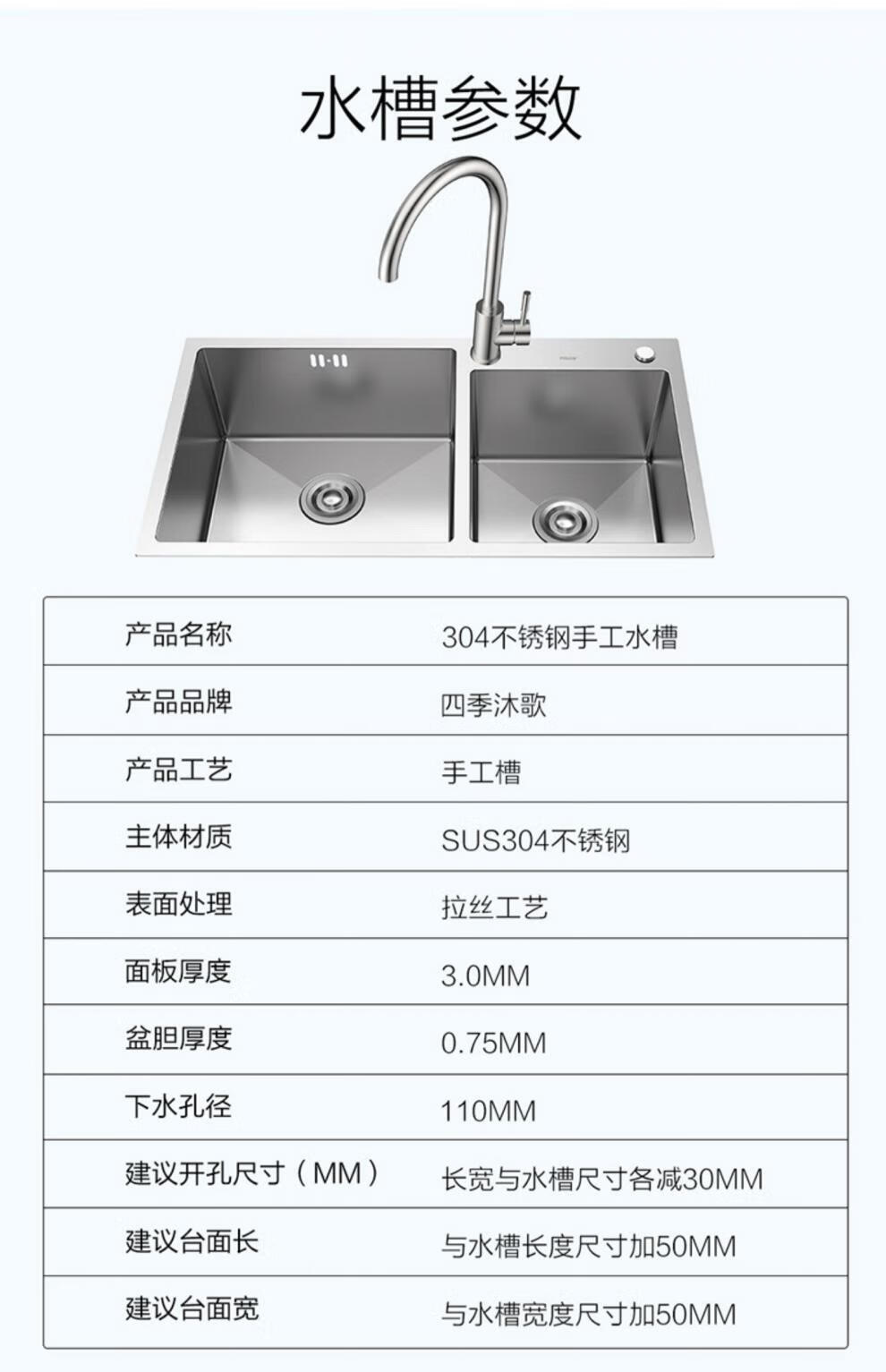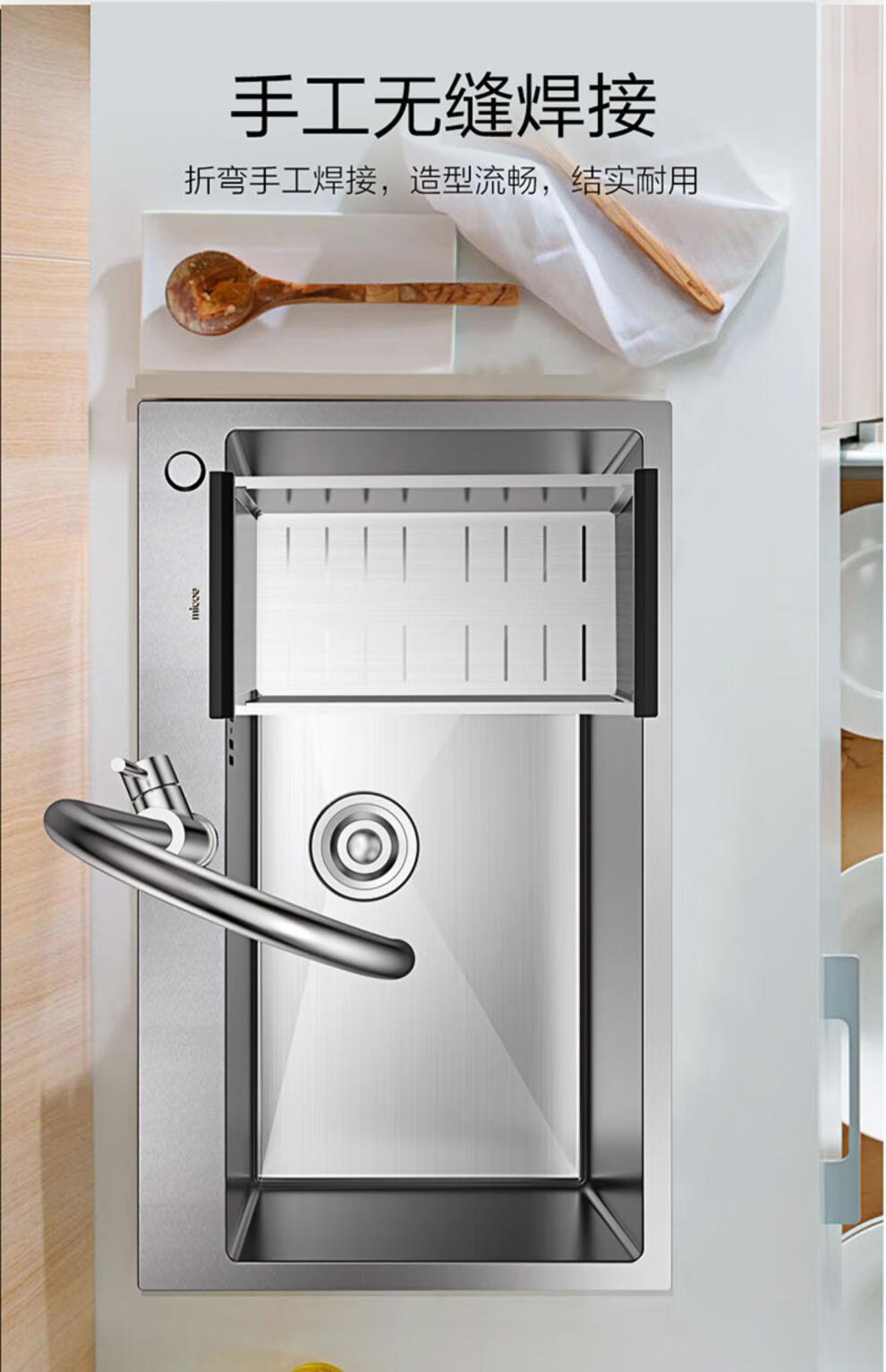 Four Seasons Muge (MICOE) 304 stainless steel sink double sink home kitchen vegetable basin handmade sink thickened handmade basin sink space silver single sink 680*450 pull-out faucet