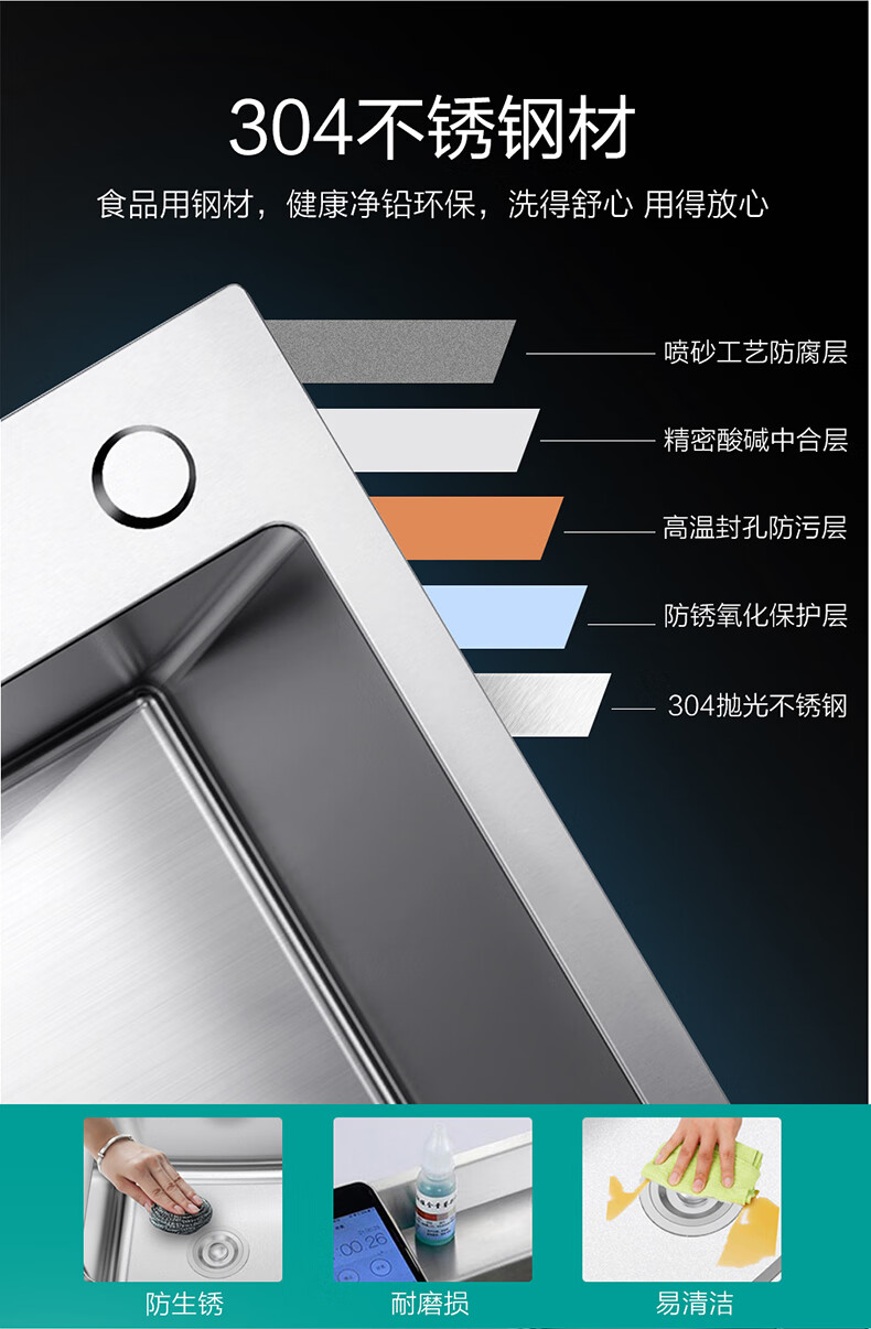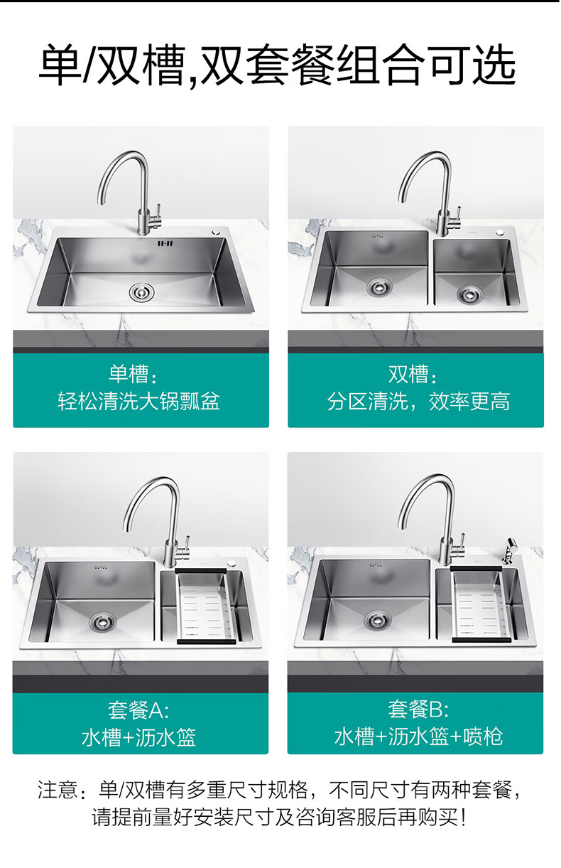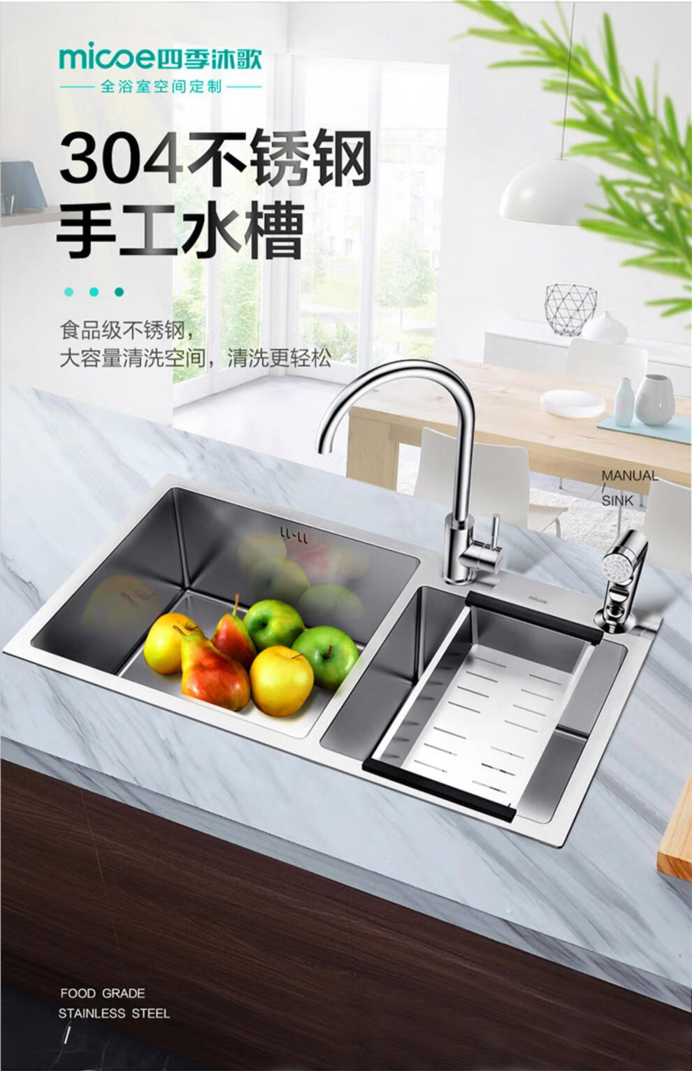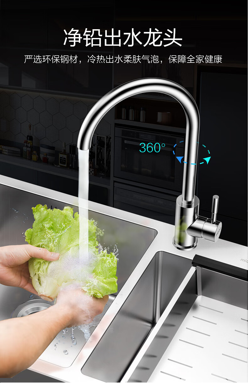 Four Seasons Muge (MICOE) 304 stainless steel sink double sink home kitchen vegetable basin handmade sink thickened handmade basin sink space silver single sink 680*450 pull-out faucet