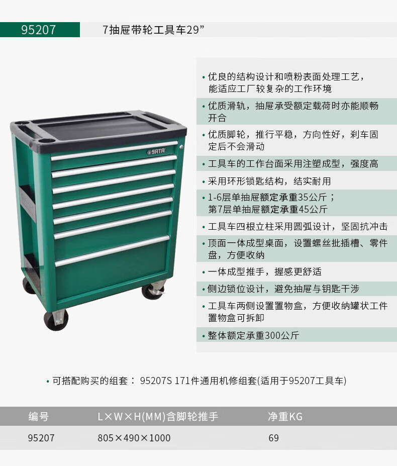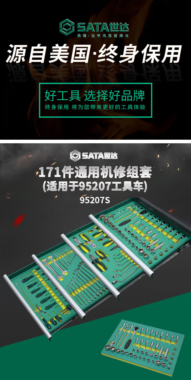 Shida 171-piece universal machine repair set 95207S auto repair set 95208S universal sheet metal set 103-piece 9 95208/five-drawer tool cart (adapted to 95208S) 30 days