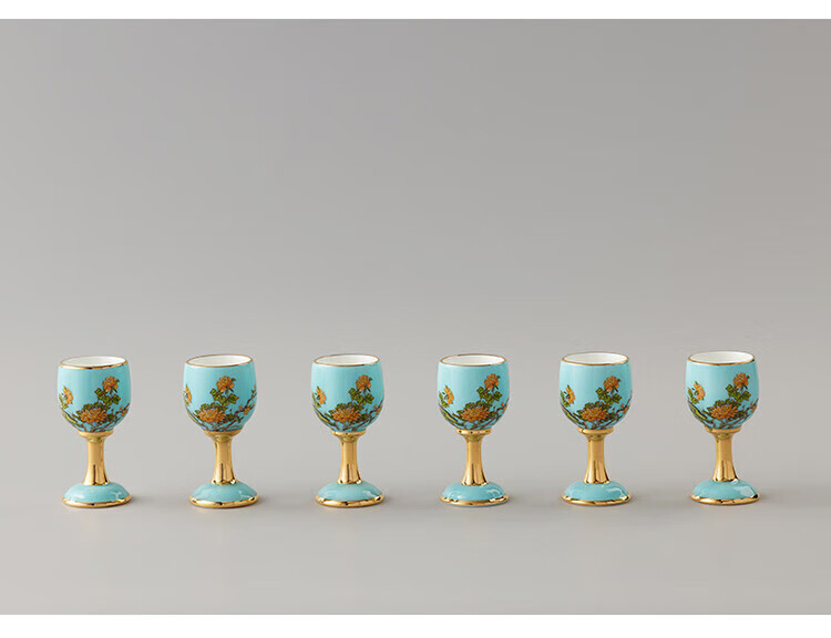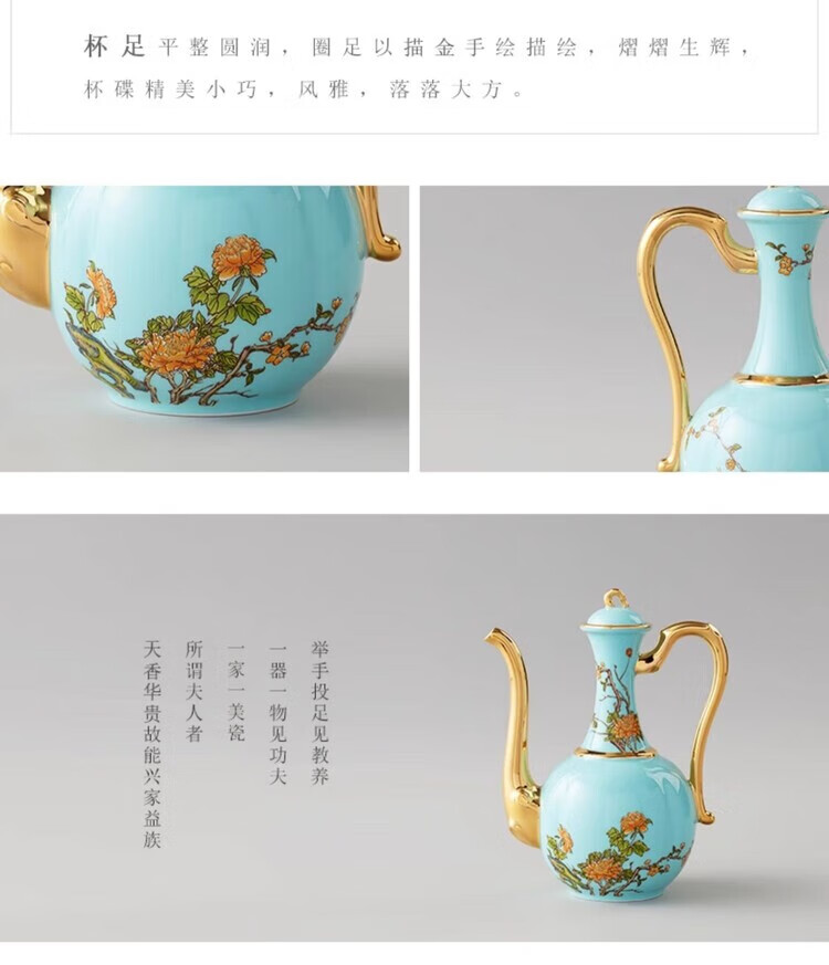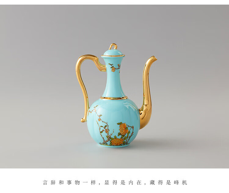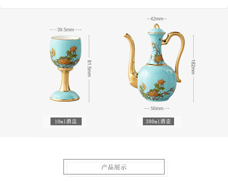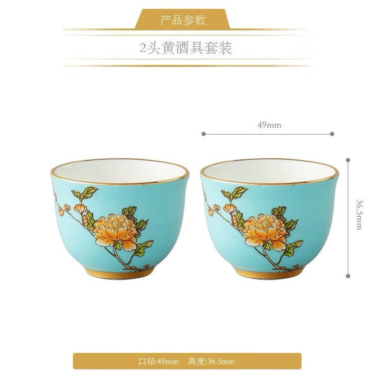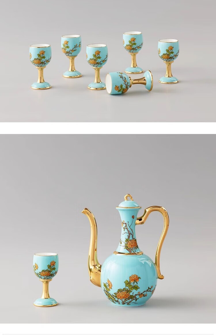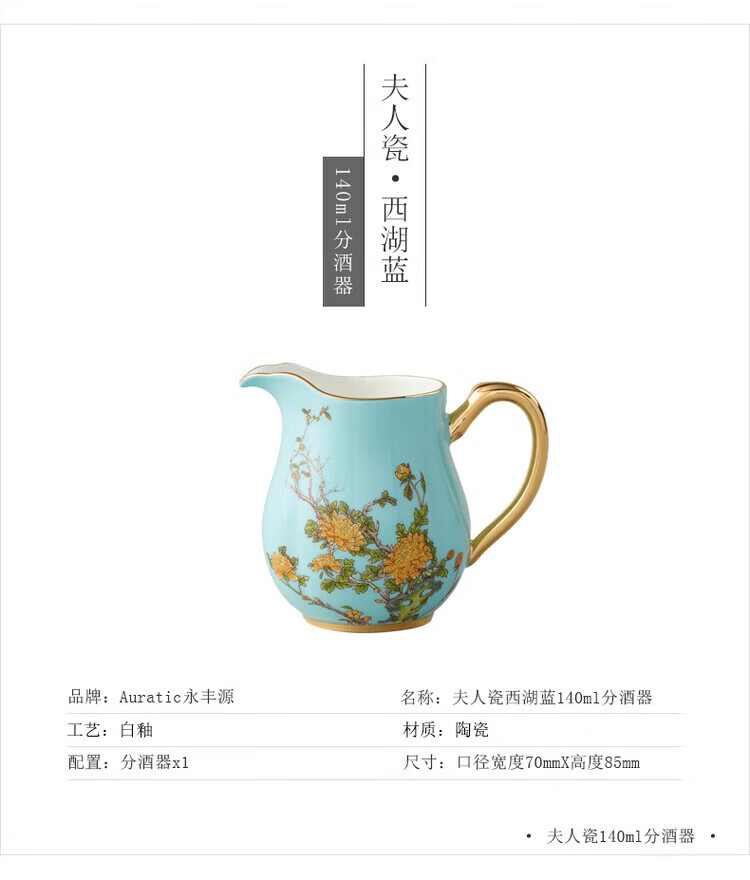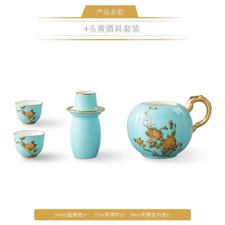Yongfengyuan (auratic) West Lake blue wine set, 2-head wine pot/wine dispenser/10ml wine cup/5-head wine set/yellow wine set, wine pot + 2 cups + wine dispenser 140ml