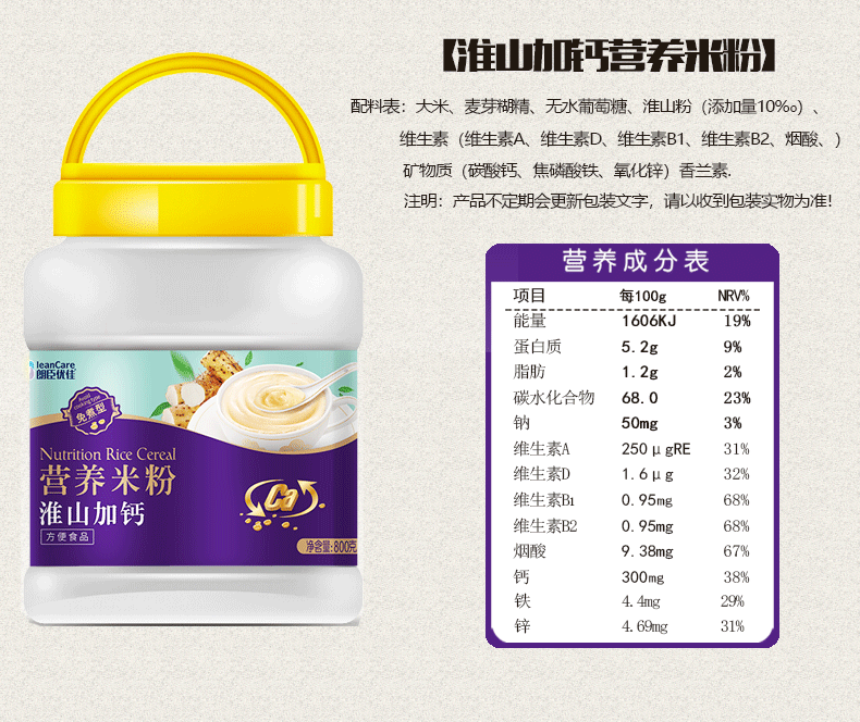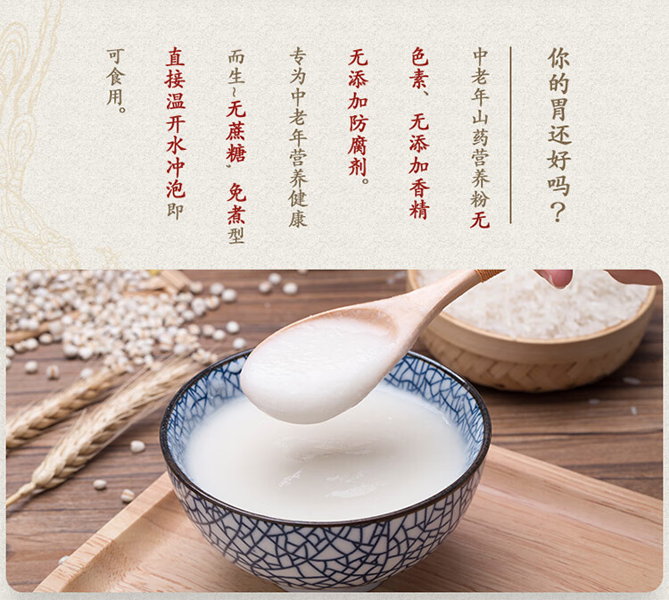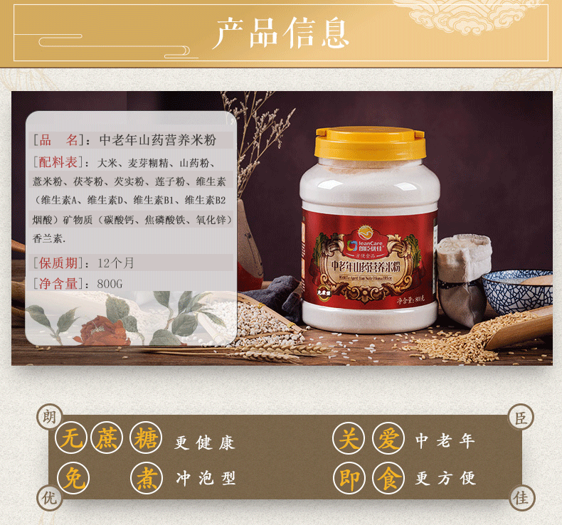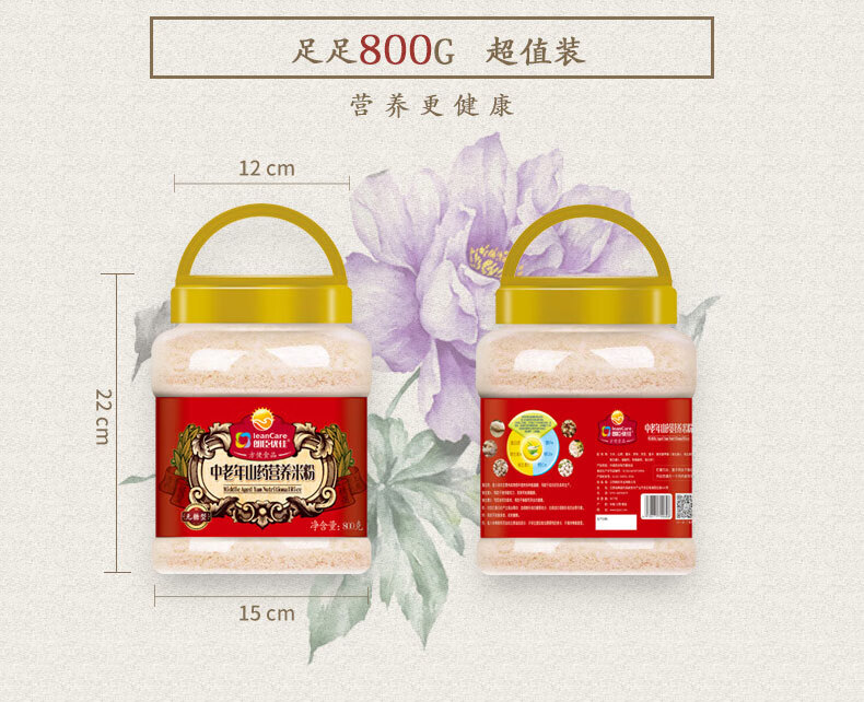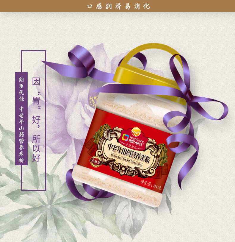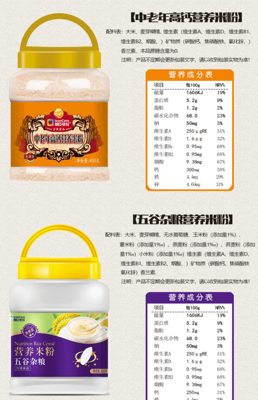Langchen Youjia Nutritional Yam Rice Powder for the Elderly, Middle-aged and Elderly Rice Powder without Sucrose Liquid Food Adult Meal Replacement Powder No Cooking High Calcium Type (No Sucrose) 800g*1 Can