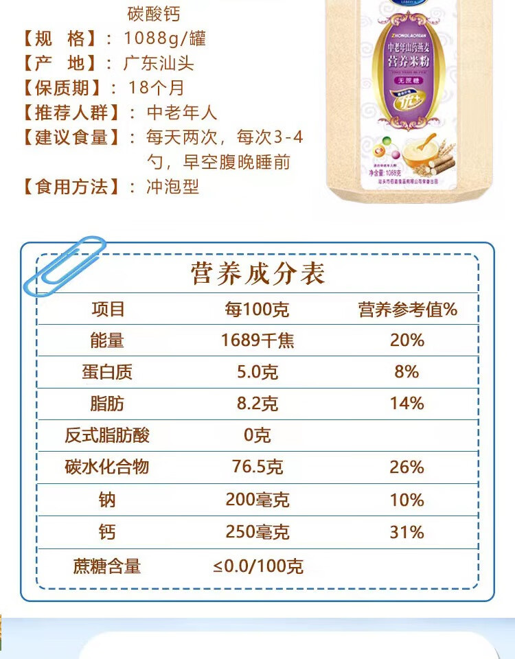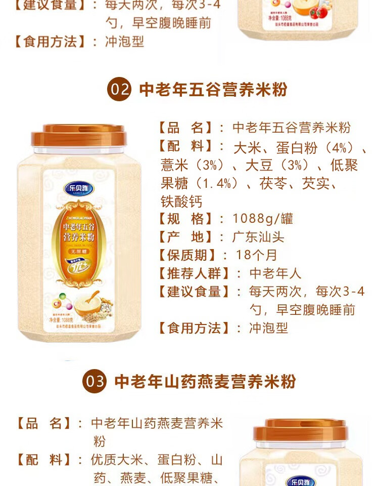 Other sucrose-free food supplements for middle-aged and elderly people, nutritious rice flour and rice paste, breakfast liquid food, gift giving, meal replacement food for the elderly, 1088g sucrose-free, yam oatmeal rice flour