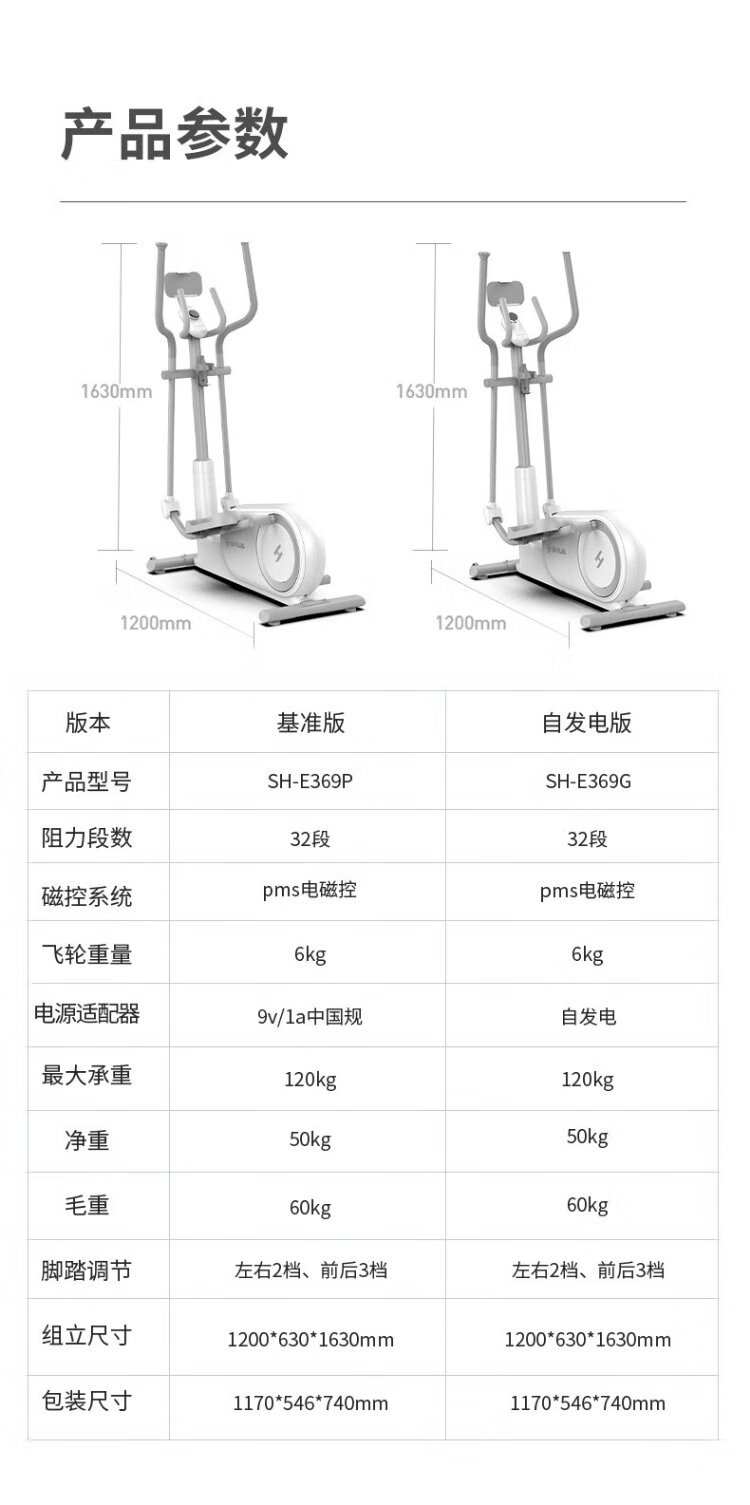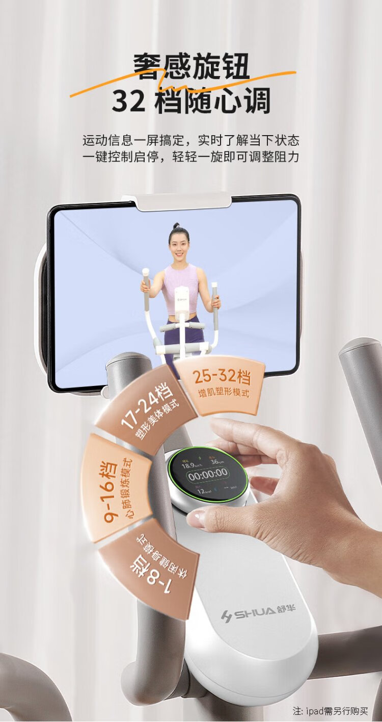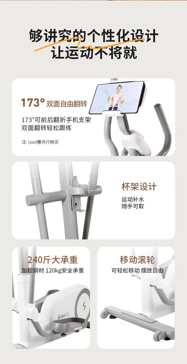Shuhua (SHUA) mini elliptical machine home living room type elliptical machine small apartment stepper fitness equipment space walker E369 self-generated version - 32 levels of electromagnetic resistance adjustment / 5 levels of noise reduction