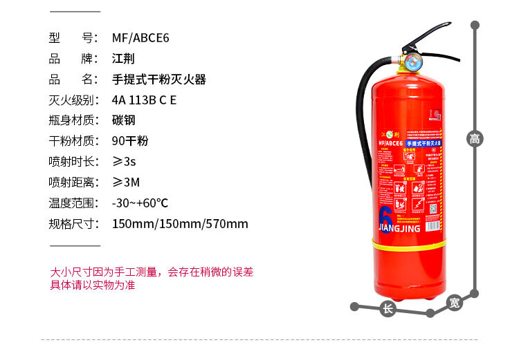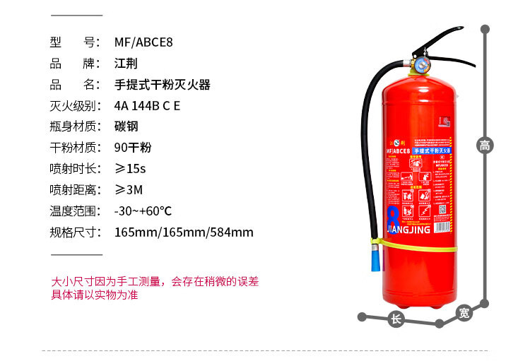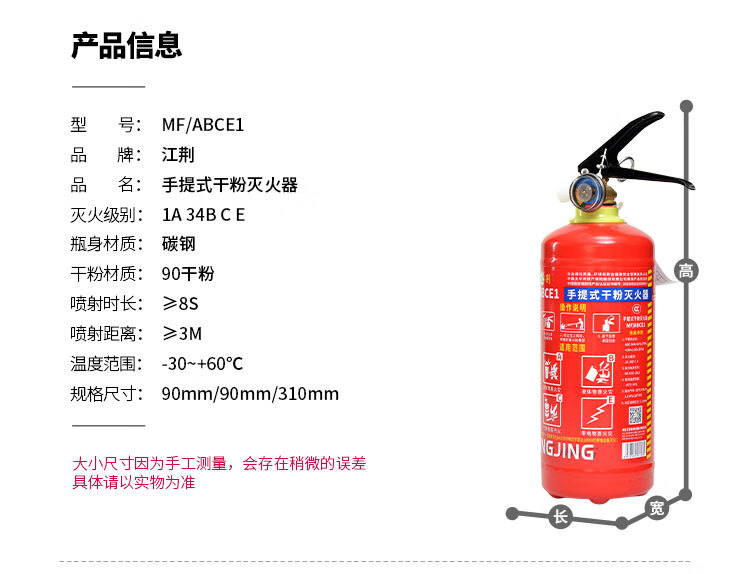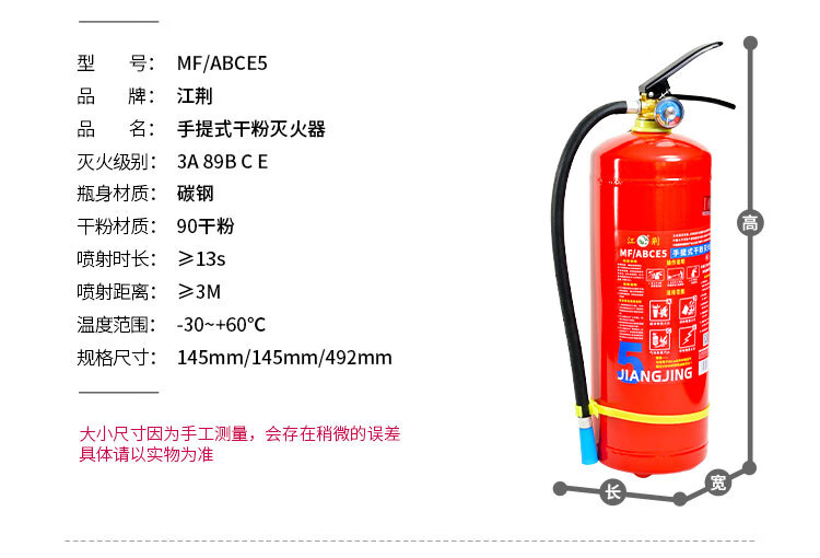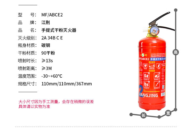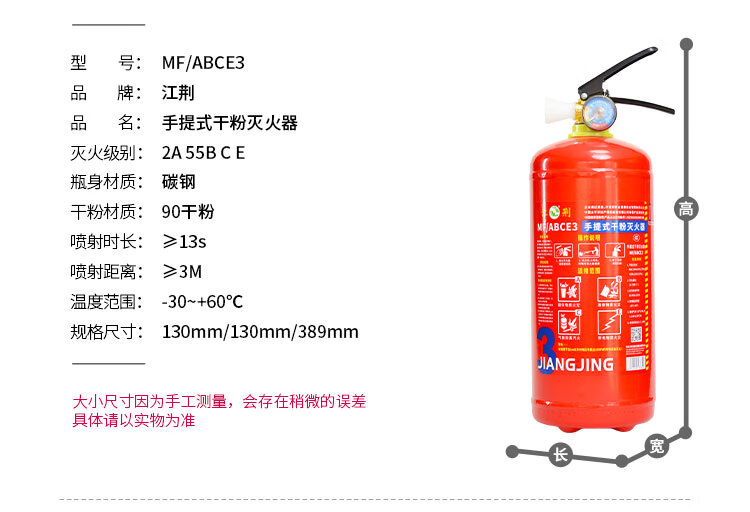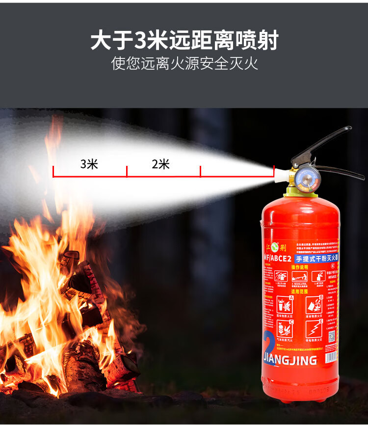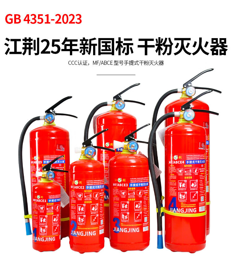 Jiangjing's 25-year new national standard portable 3kg dry powder fire extinguisher, vehicle-mounted household commercial fire-fighting equipment MF/ABCE3 3kg dry powder commercial dry powder 3kg