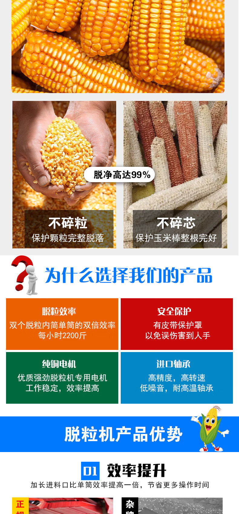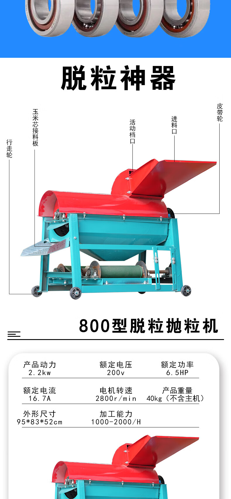 Huili's threshing machine is a household small, fully automatic, new and efficient artifact, wet and dry electric corn peeling separator, 700-type hammer threshing machine (excluding motor)