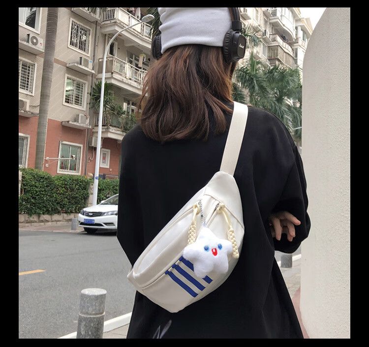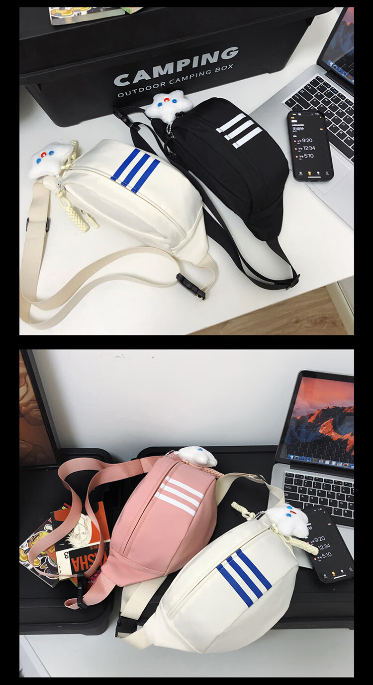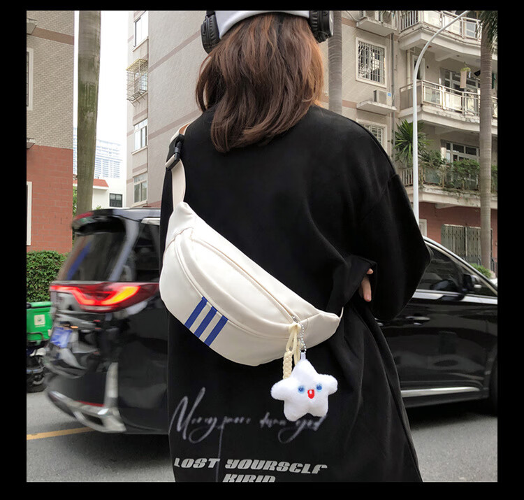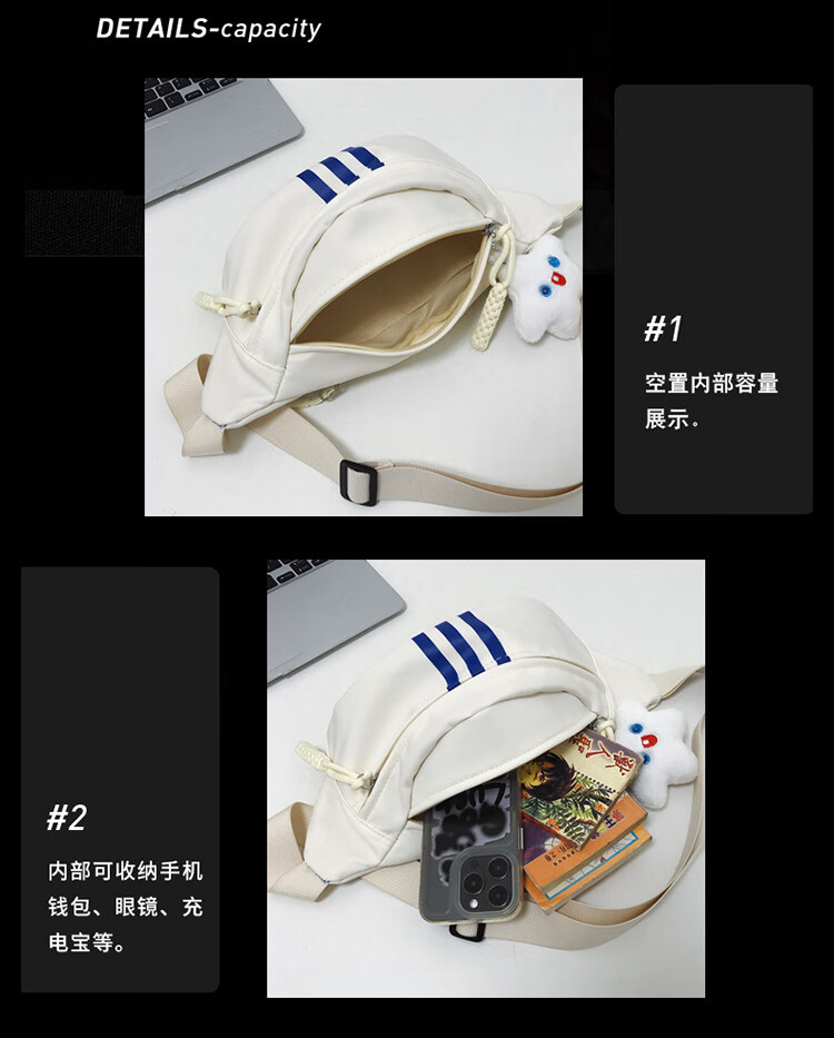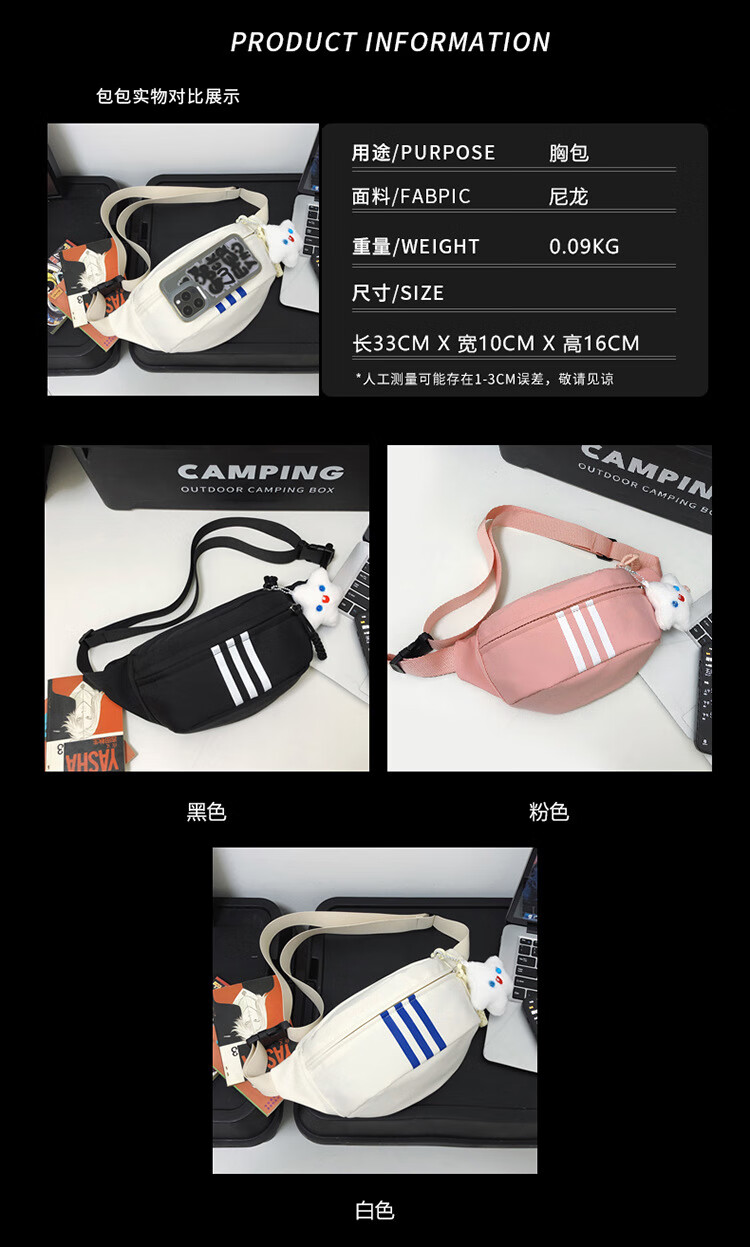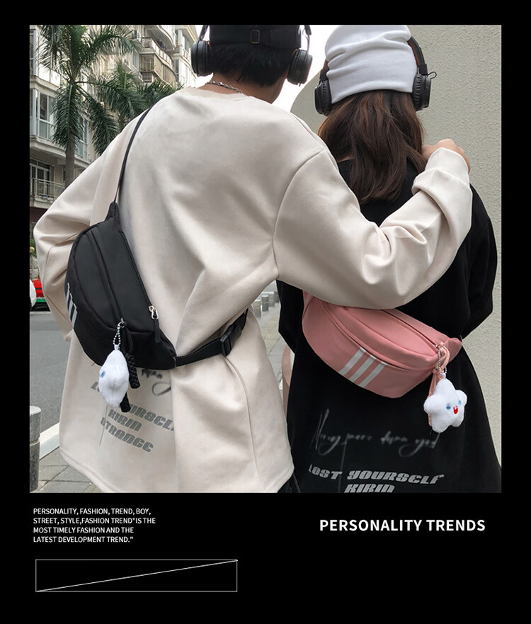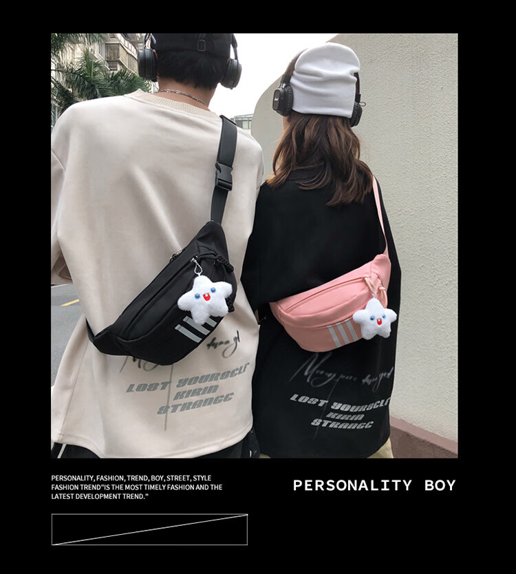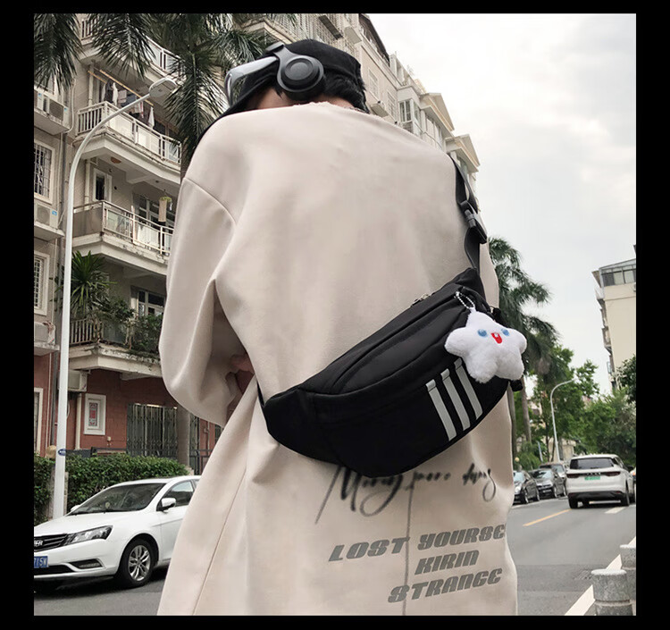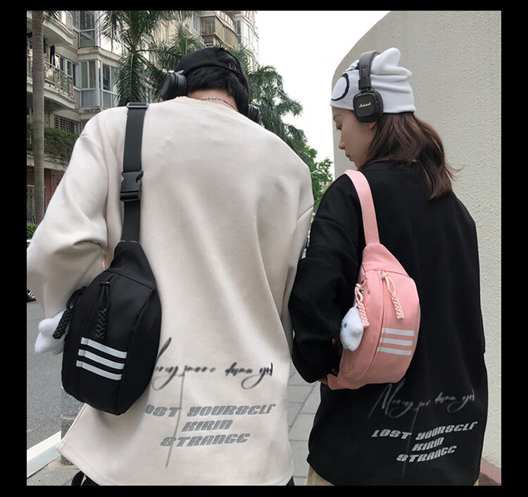 QUEENJOY trendy brand crossbody bag for men, casual Japanese style small backpack, chest bag, crossbody women's shoulder bag, men's trendy student sports waist bag, black, no accessories